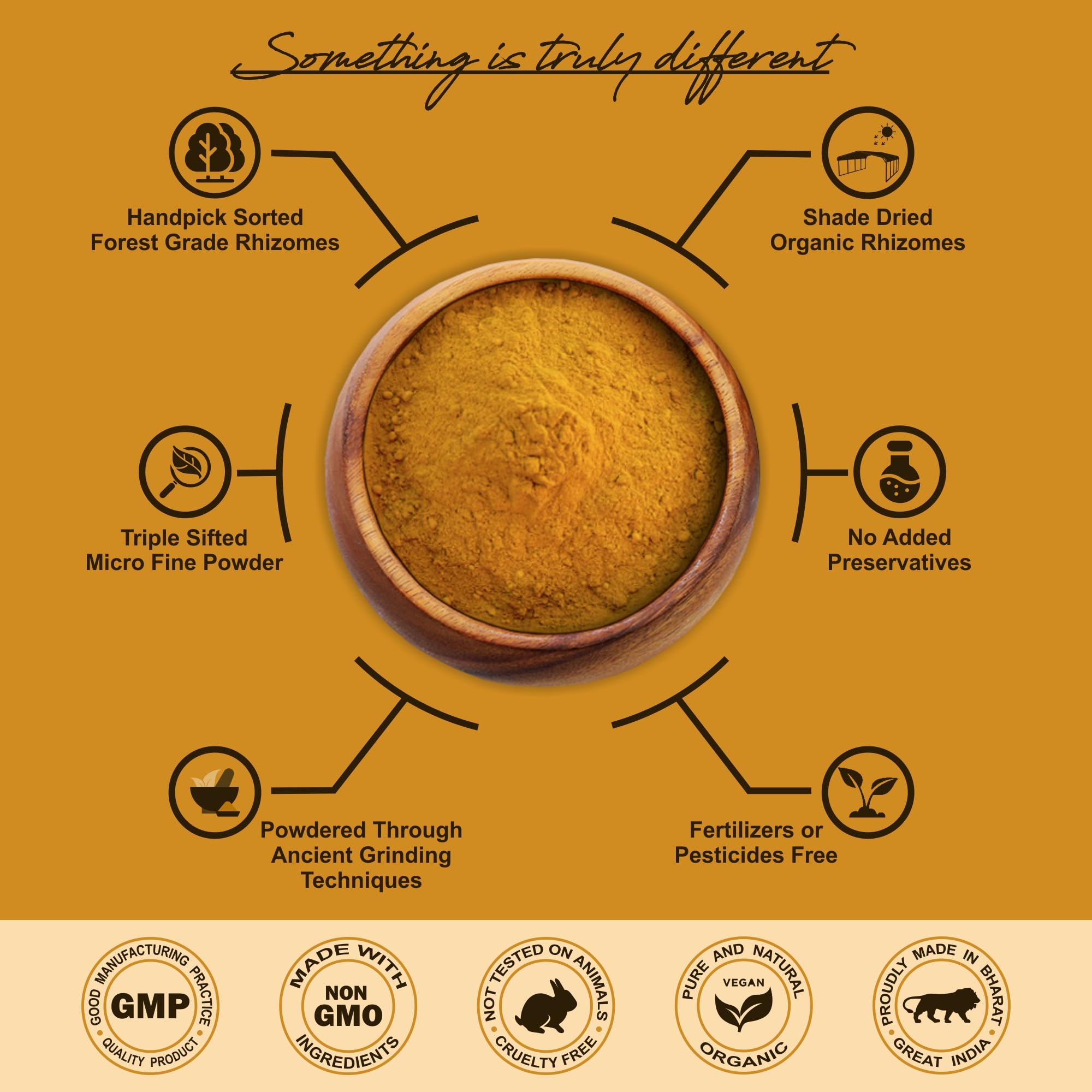 • Made From Shade-Dried Wild Turmeric: Wild Turmeric powder is an organic natural powder made from shade-dried wild forest grade Wild Turmeric rhizomes which contain the highest active nutrients grown naturally without any harmful chemicals or pesticides or