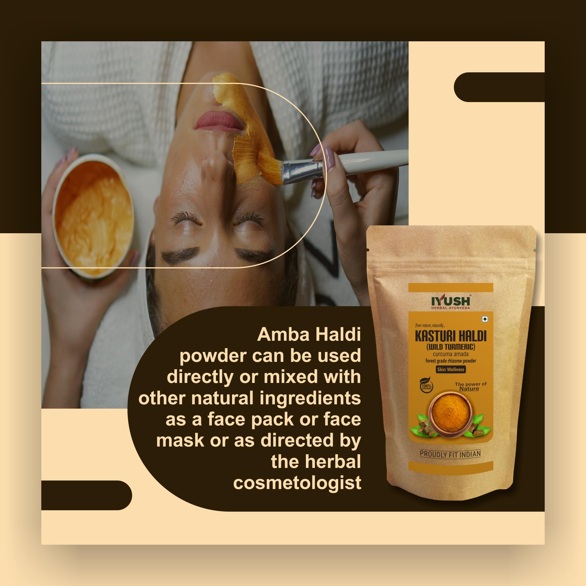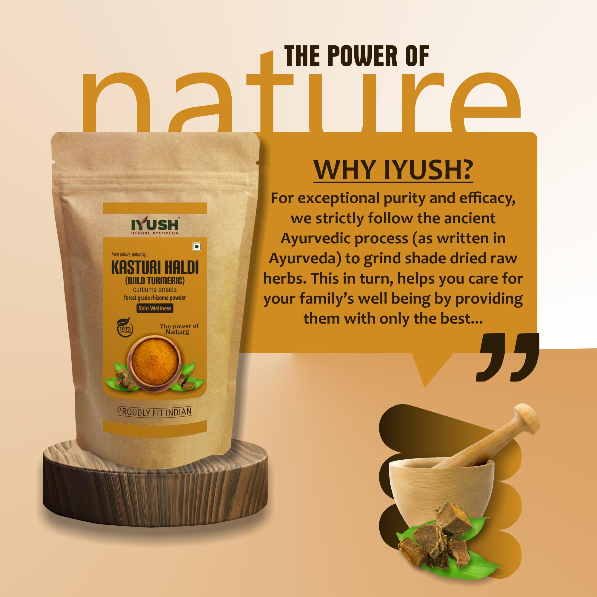 IYUSH Herbal Ayurveda Kasturi Haldi Powder for Face Beauty 400gm | Wild Turmeric Powder | Amba Haldi Powder | Kasturi Manjal | Kasthuri Manjal Powder for Face | Kasturi Turmeric Powder |