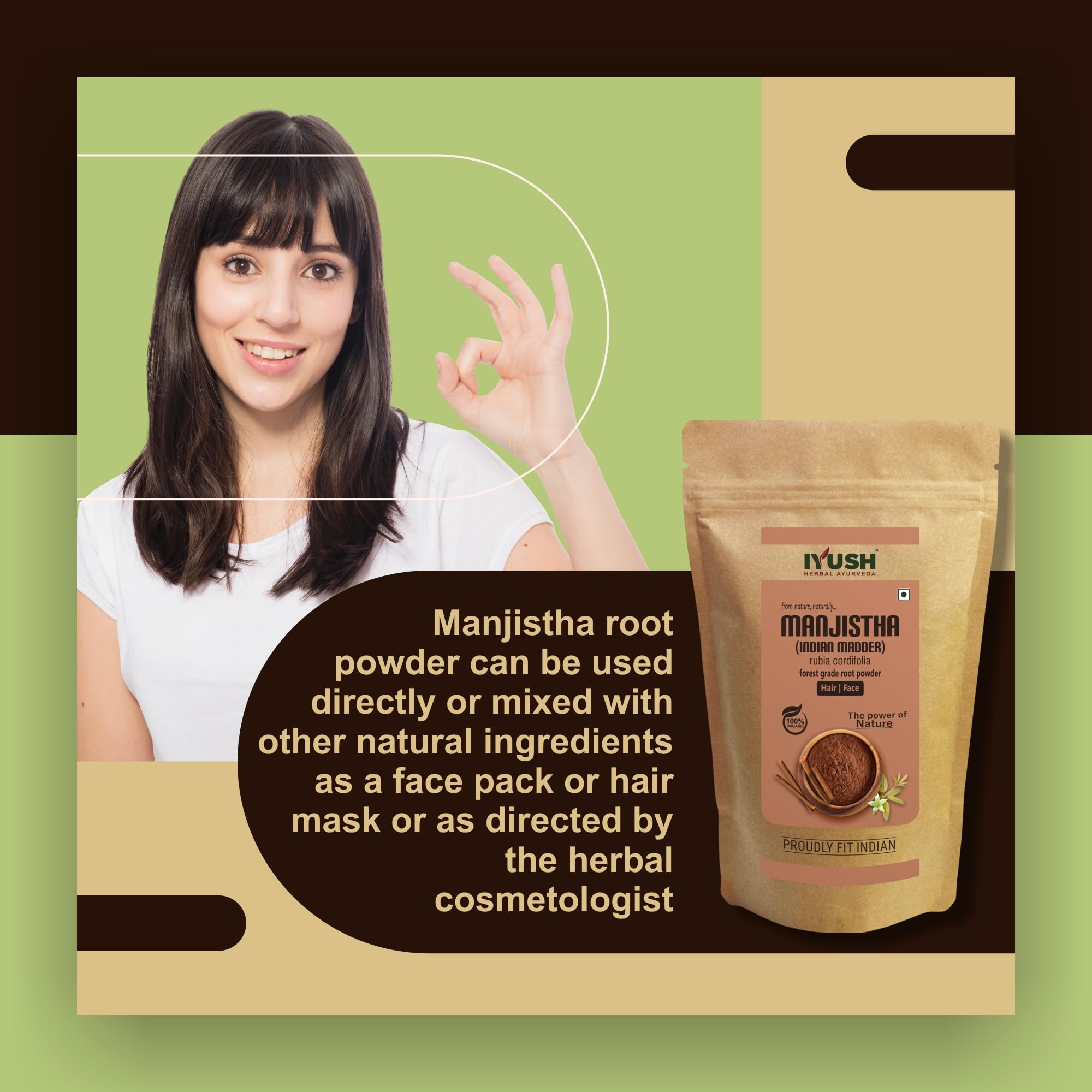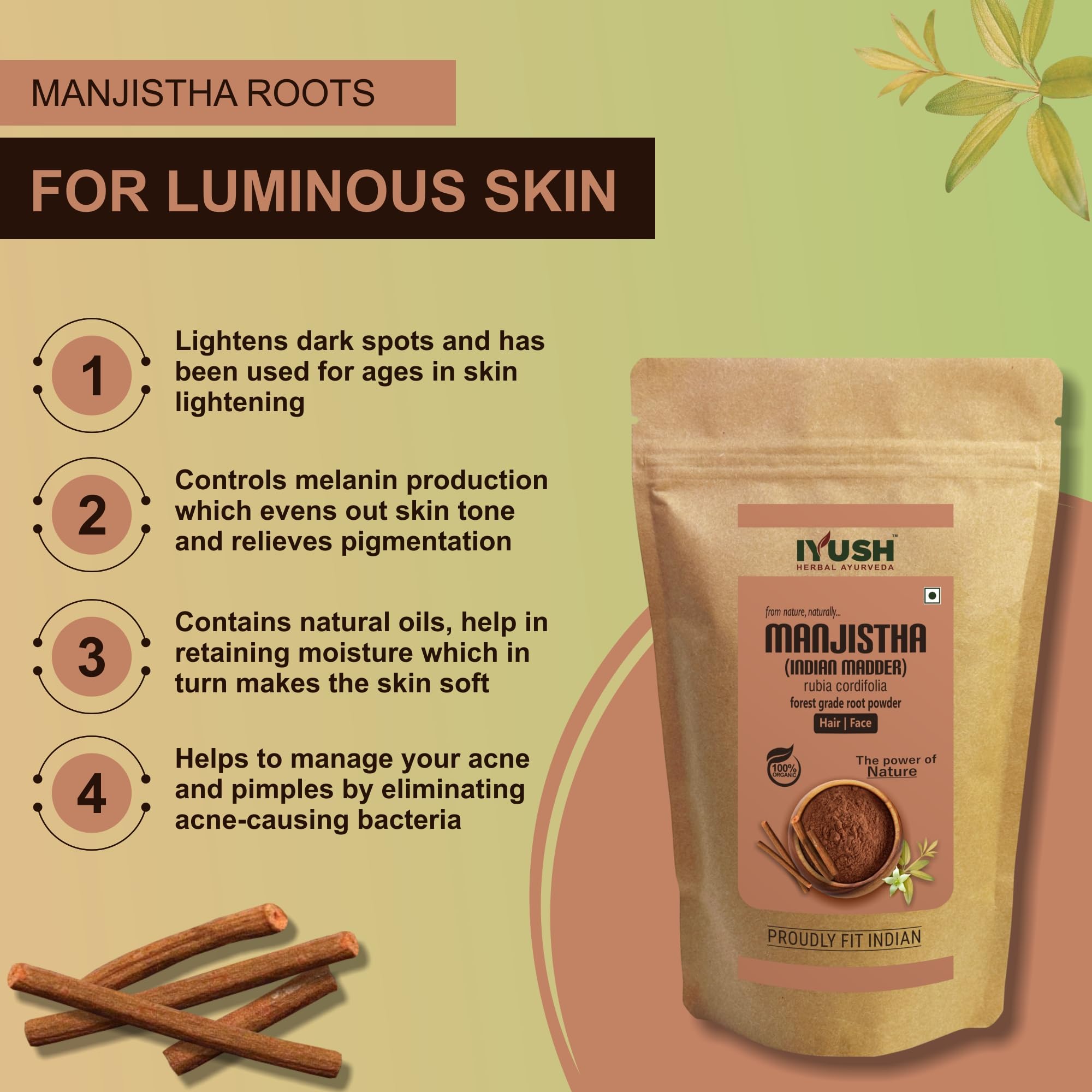 IYUSH Herbal Ayurveda Manjistha Powder 400gm | Manjistha Powder for Skin Whitening | Manjistha Root Powder | Manjista Powder Organic | Manjistha Churnam | Skin Care & Hair Care |