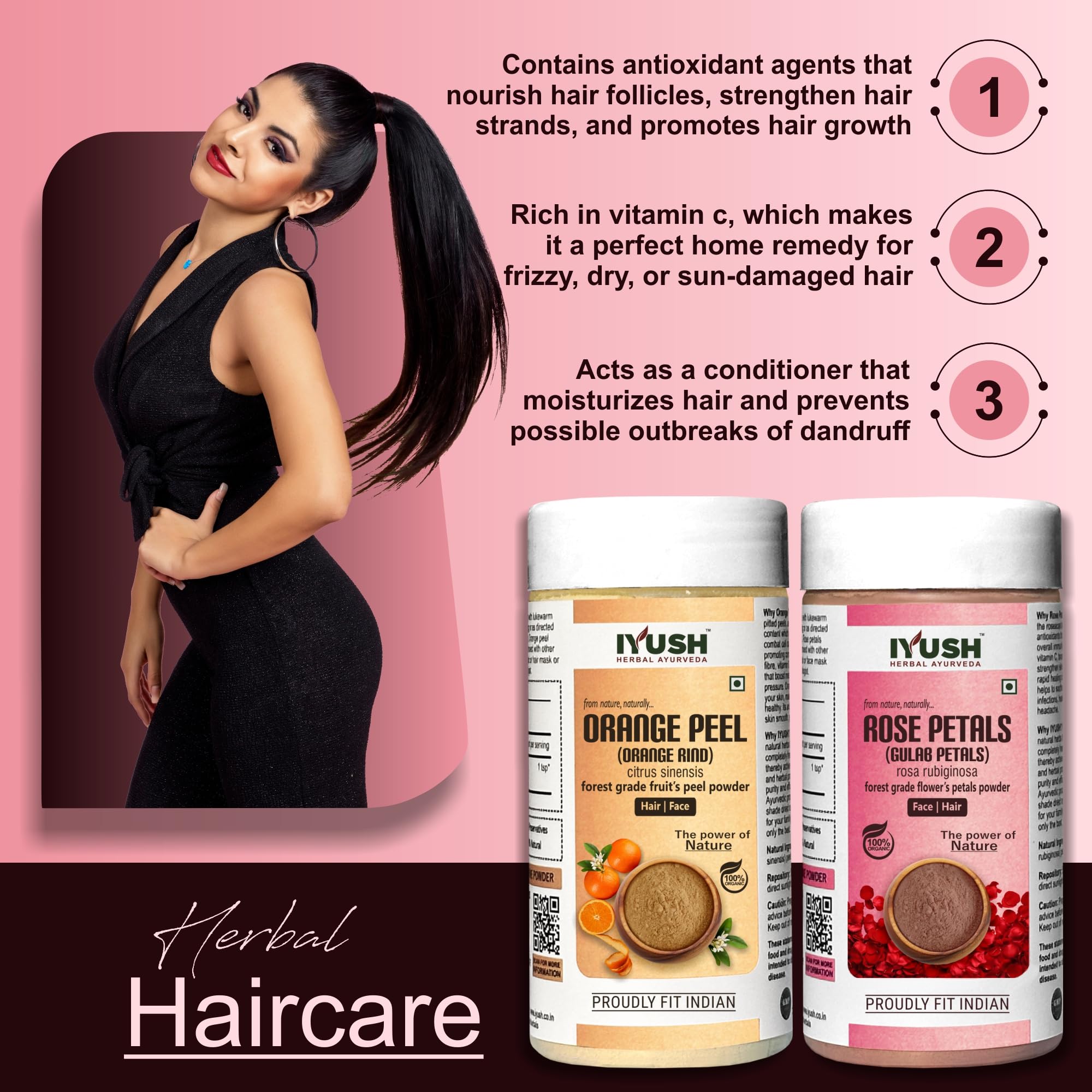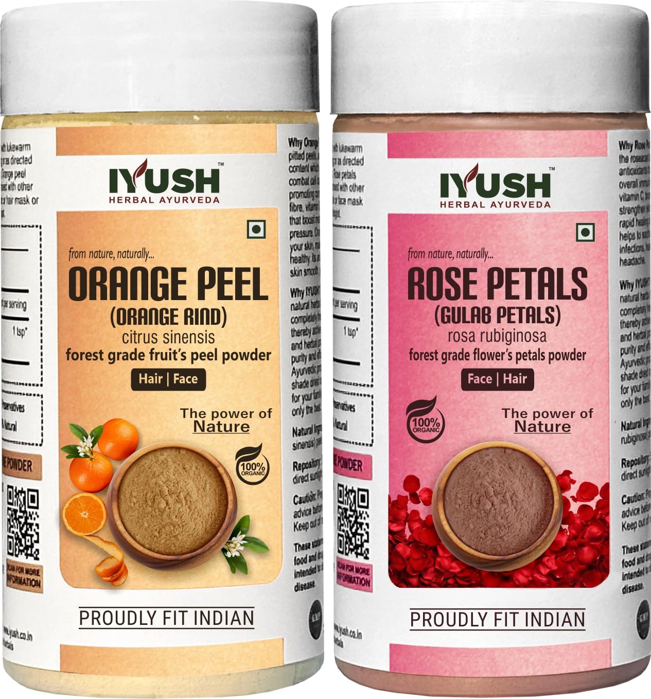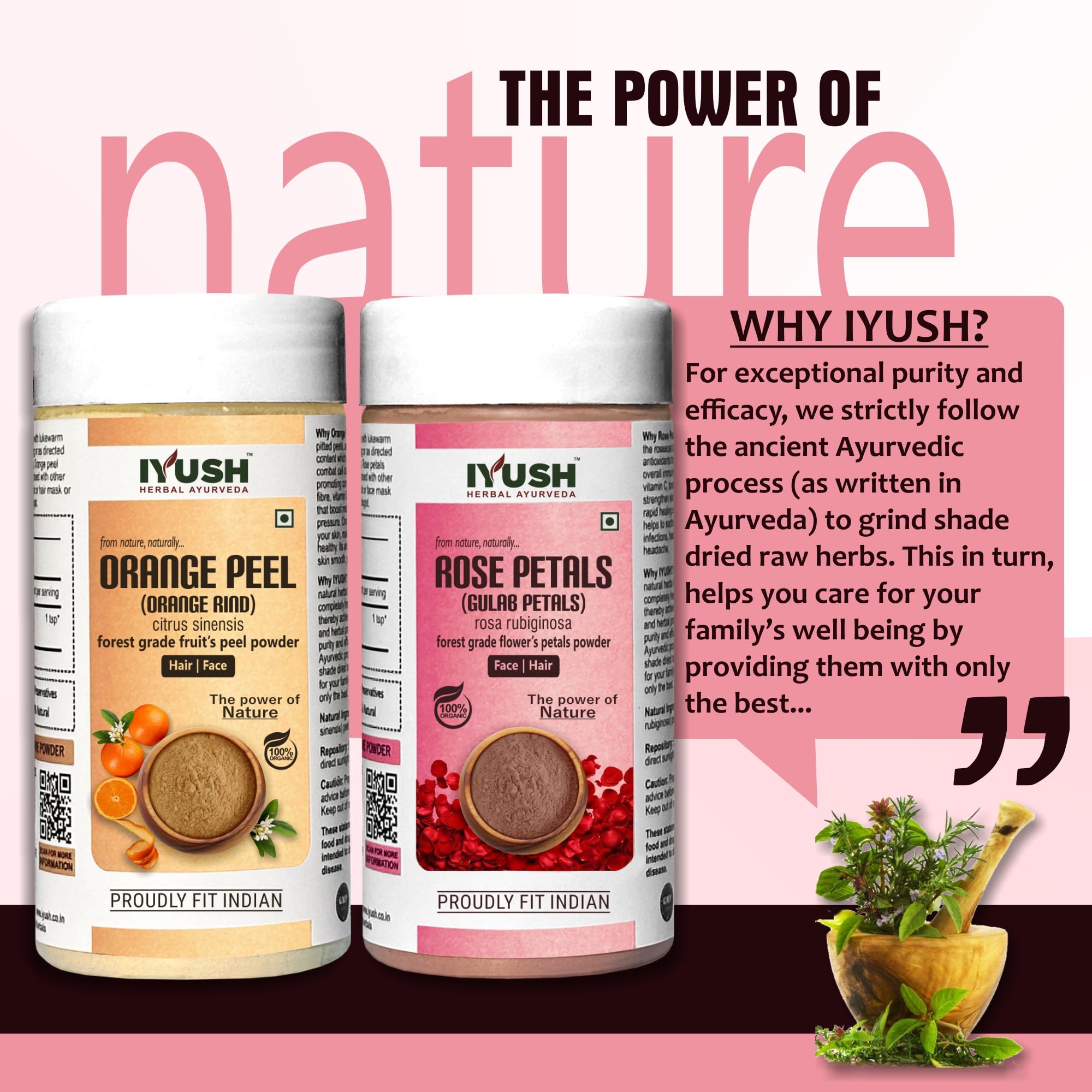 IYUSH Herbal Ayurveda Orange Peel Powder and Rose Petal Powder - 100gm each