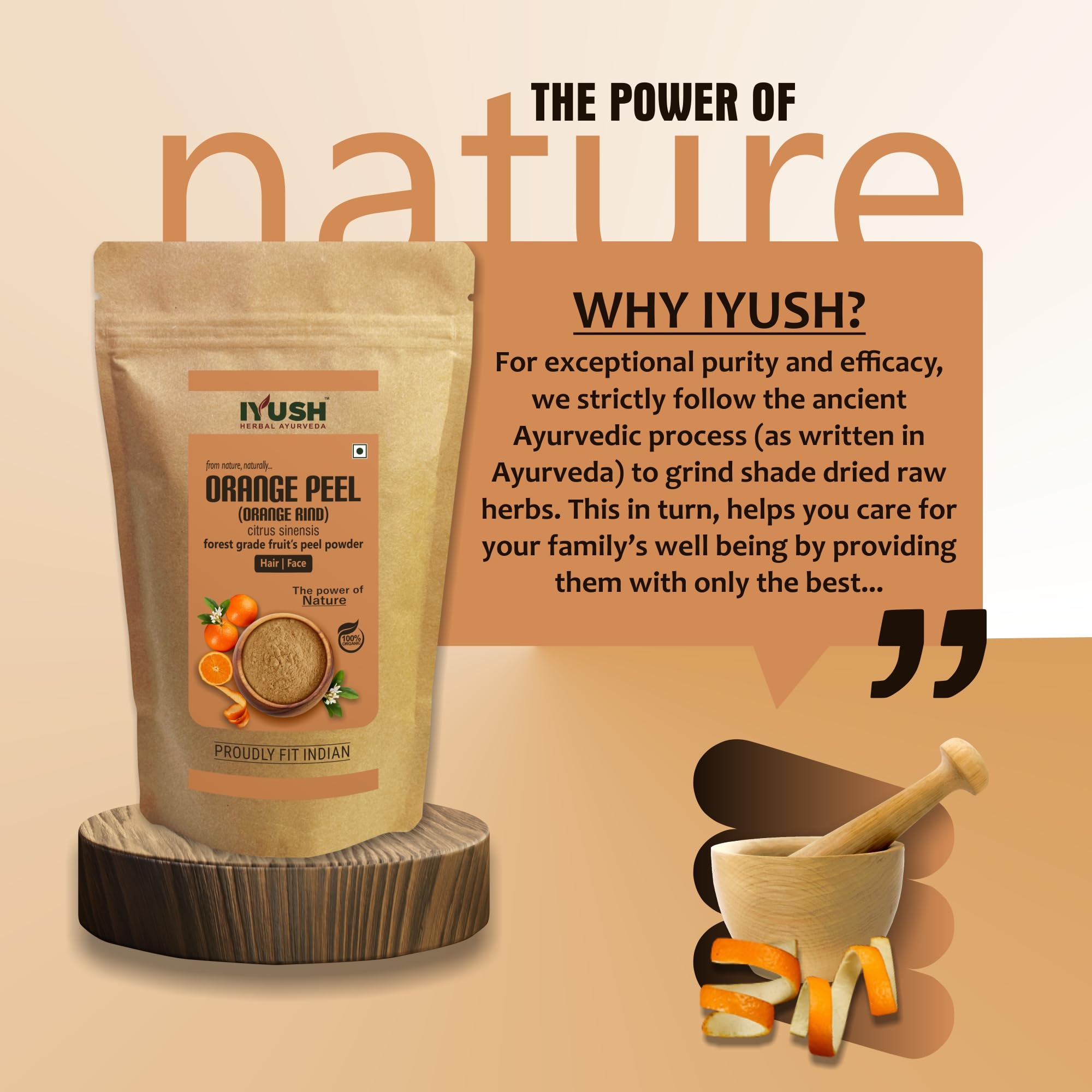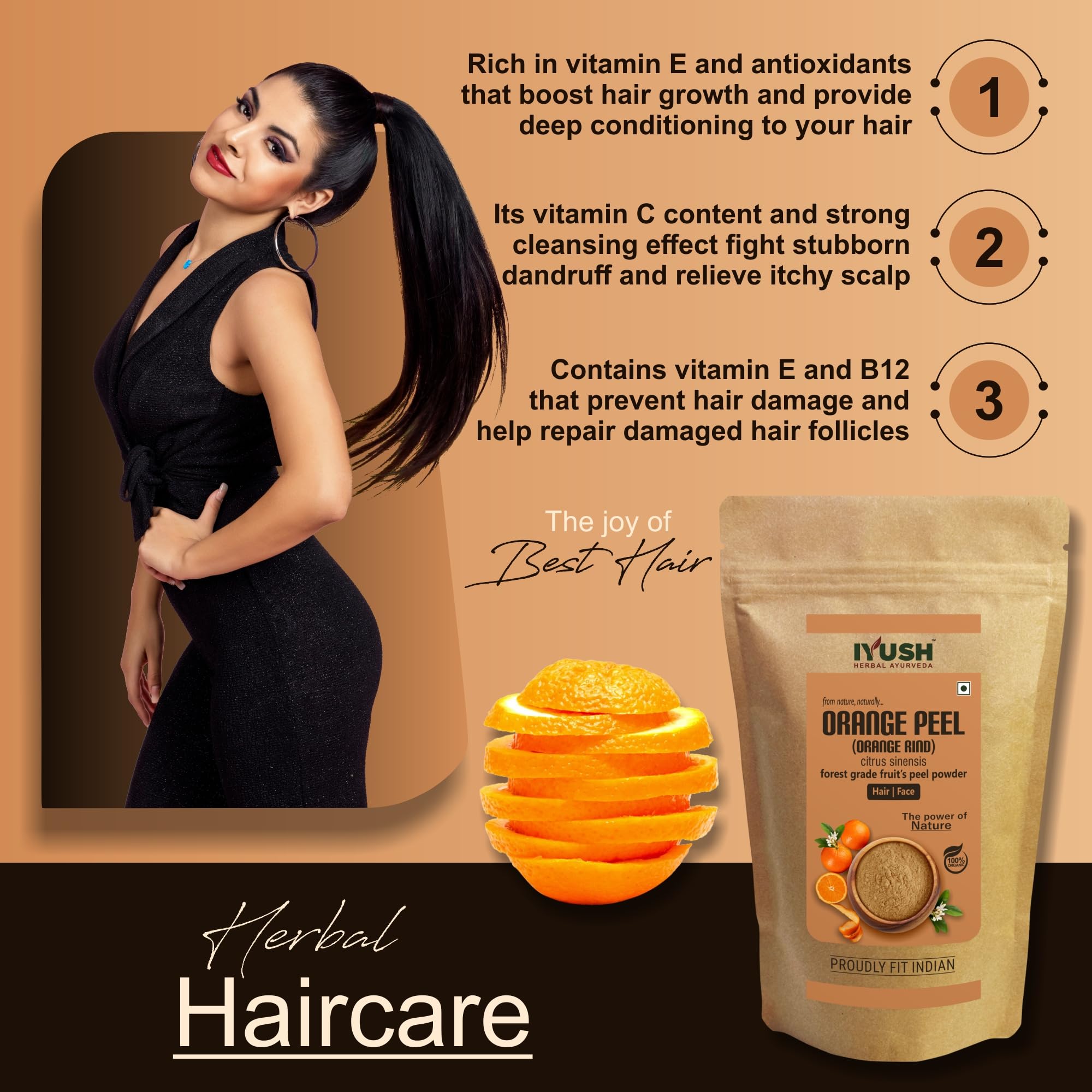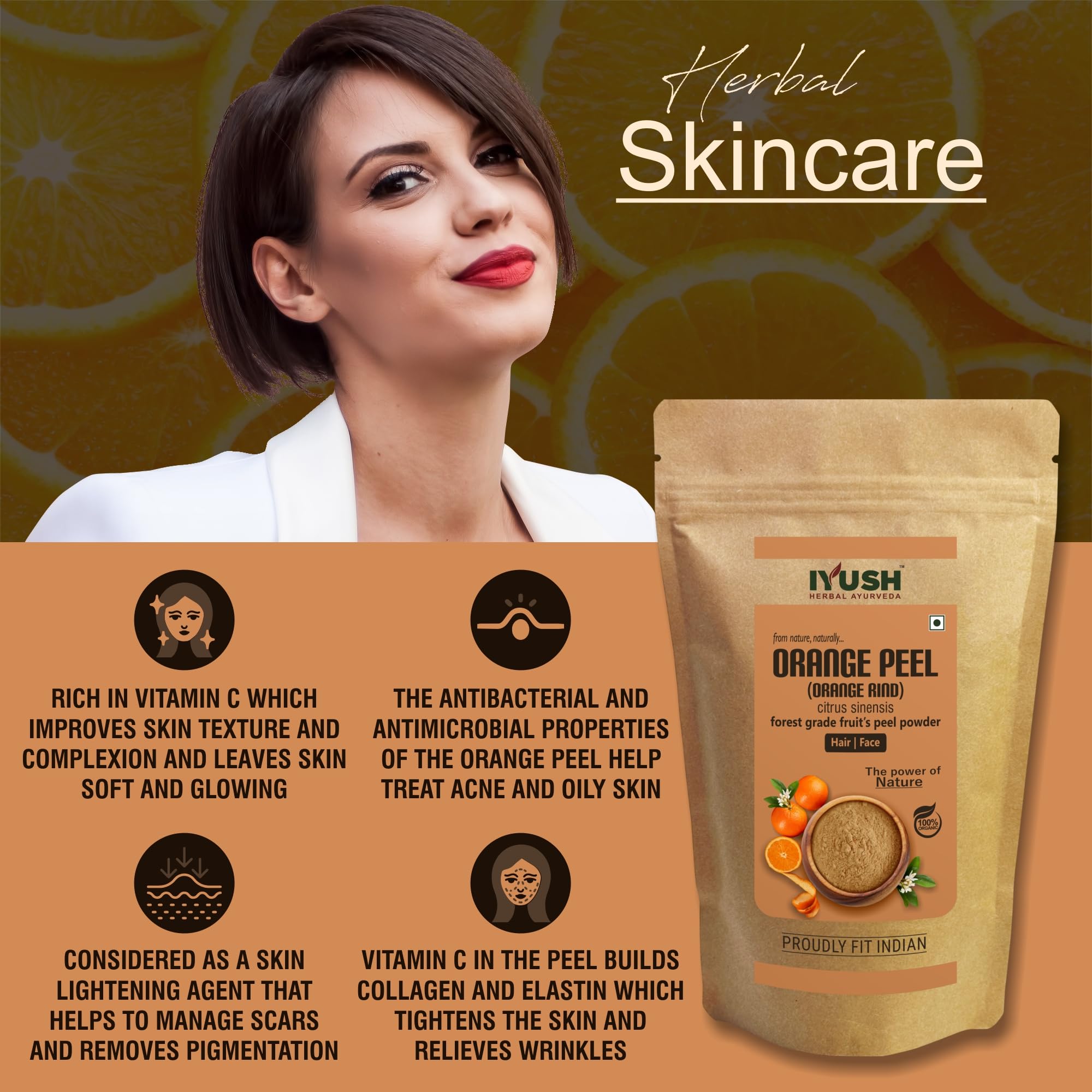 Orange also known as Citrus sinensis is a natural herb that has been used for centuries for numerous health skin and hair benefits. It is an organic natural powder made from shade-dried wild Oranges peels (from Nagpur) that contain the highest active nutrients grown naturally without any harmful chemicals or pesticides or fertilizers.