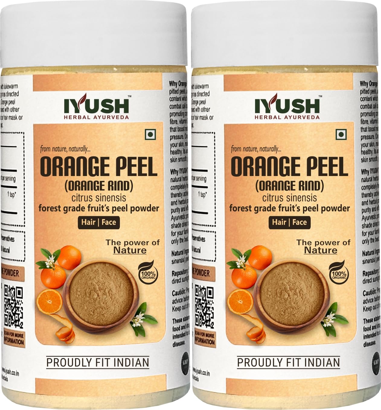 IYUSH Herbal Ayurveda Organic Orange Peel Powder For Skin And Hair Care | (pack of 2) 100 gm each