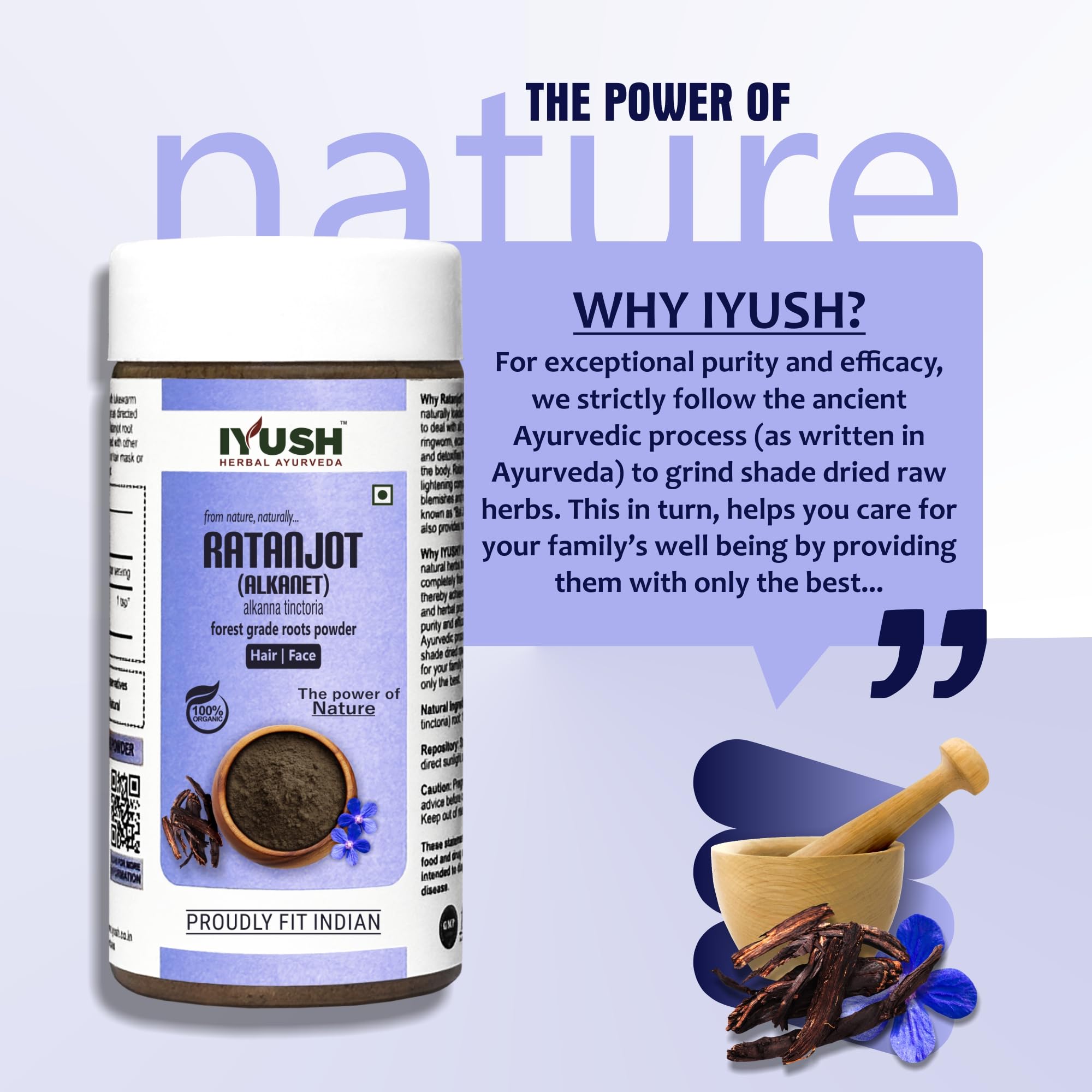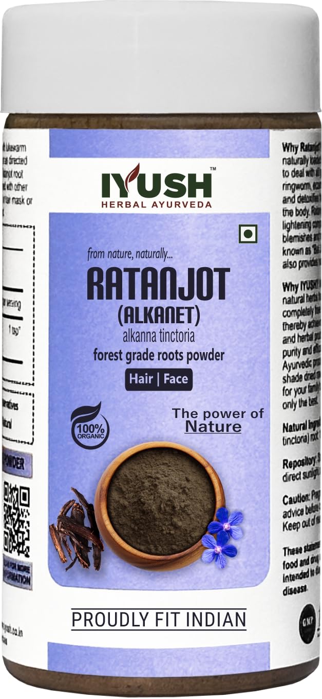 IYUSH Herbal Ayurveda Organic Ratanjot Root (Alkanet Root/Arnebia Nobilis) Powder For Skin & Scalp Acts As Natural Coloring Agent - 100gm
