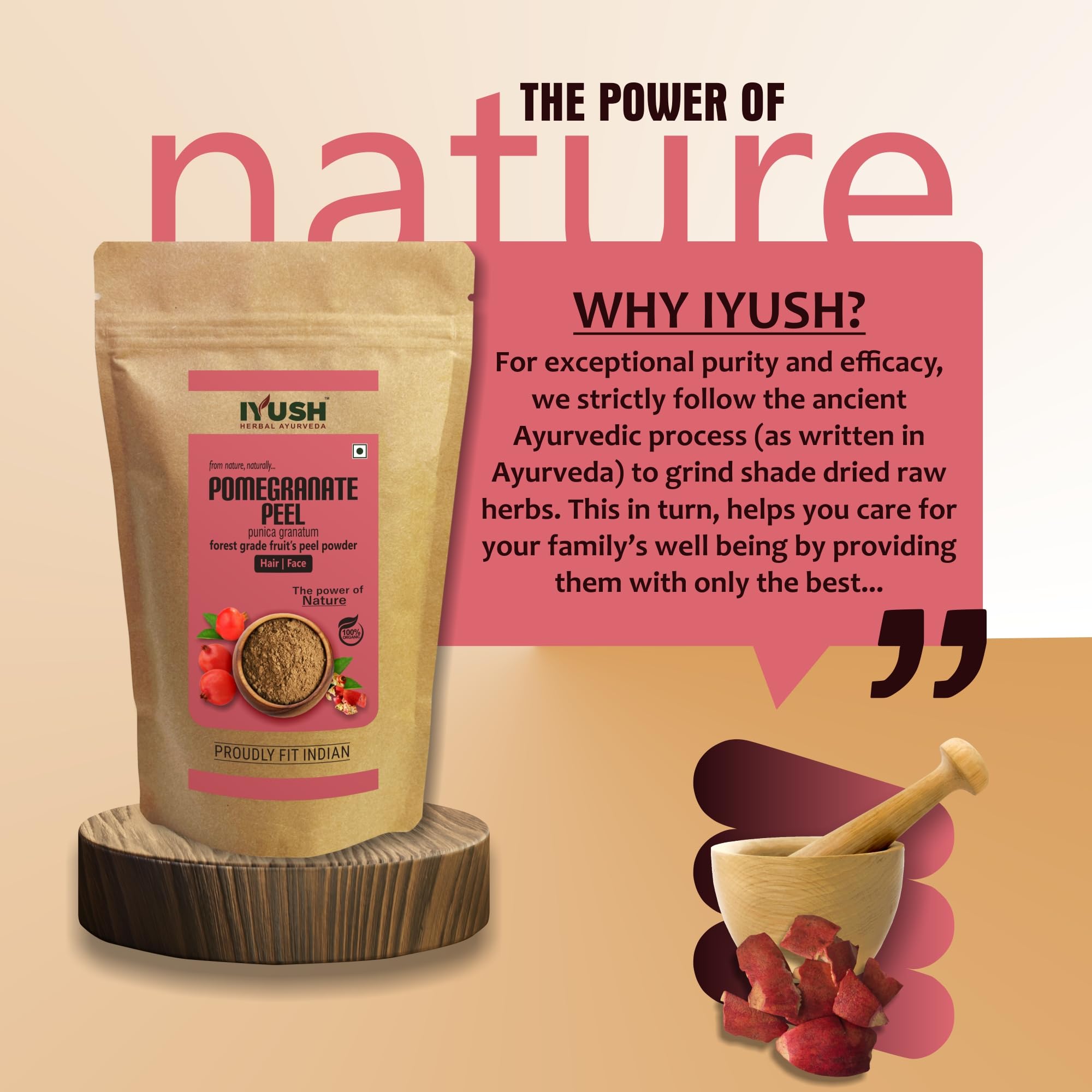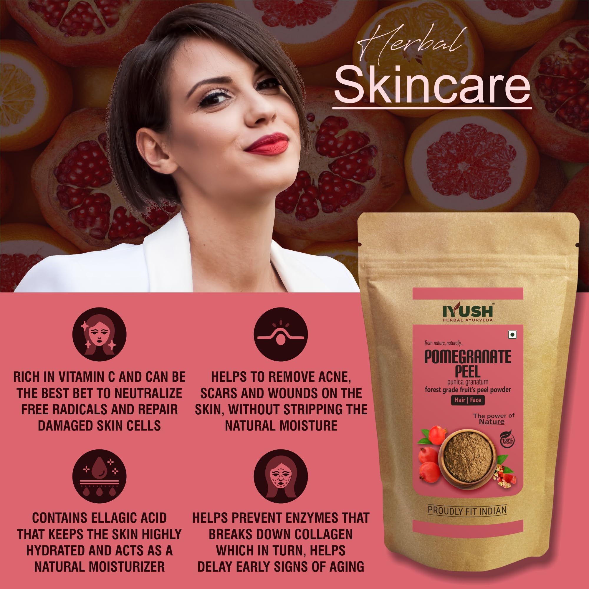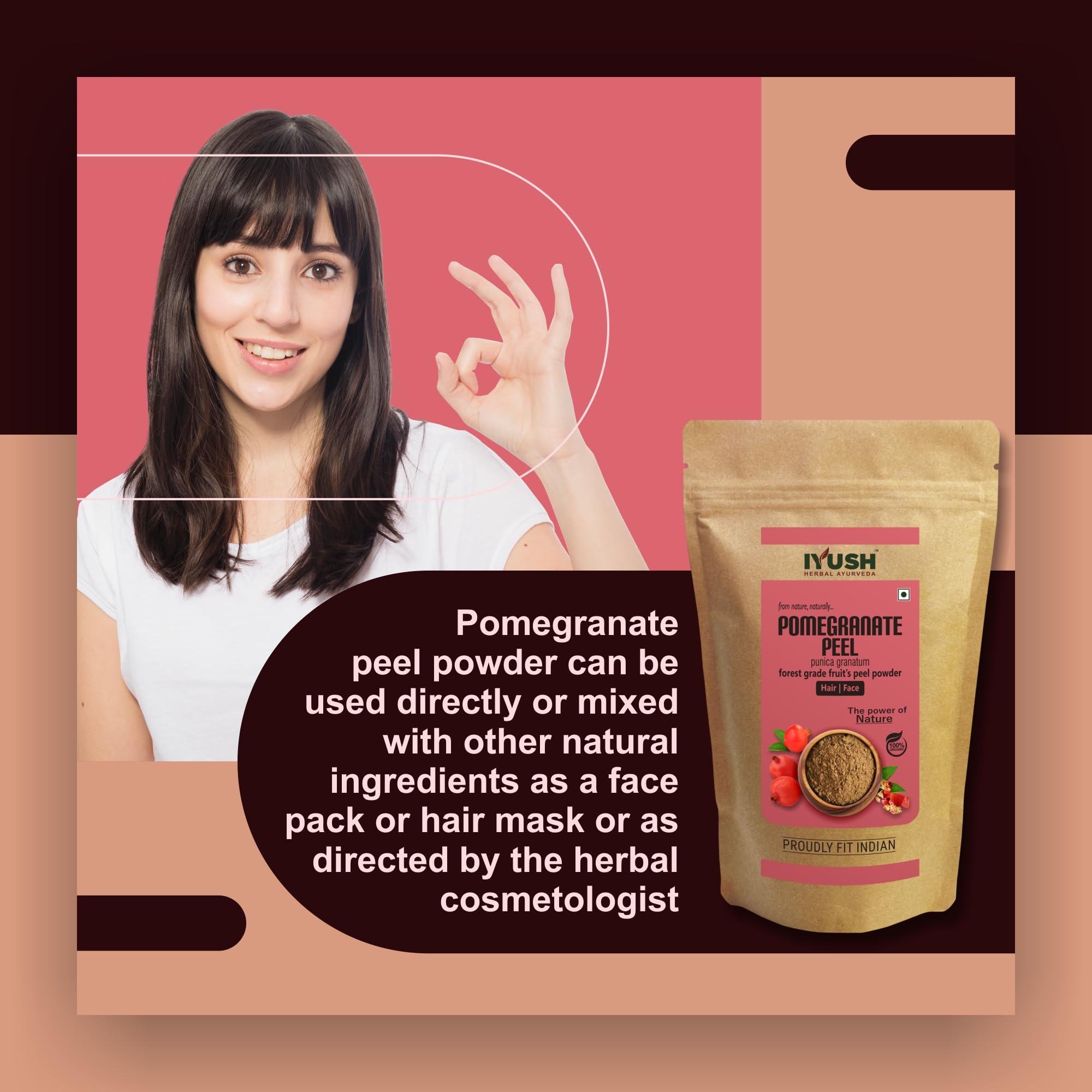 Made From Shade-Dried Pomegranate Peels: It is an organic natural powder made from shade-dried wild forest grade Pomegranate peels which contain the highest active nutrients grown naturally without any harmful chemicals or pesticides or fertilizers. The u