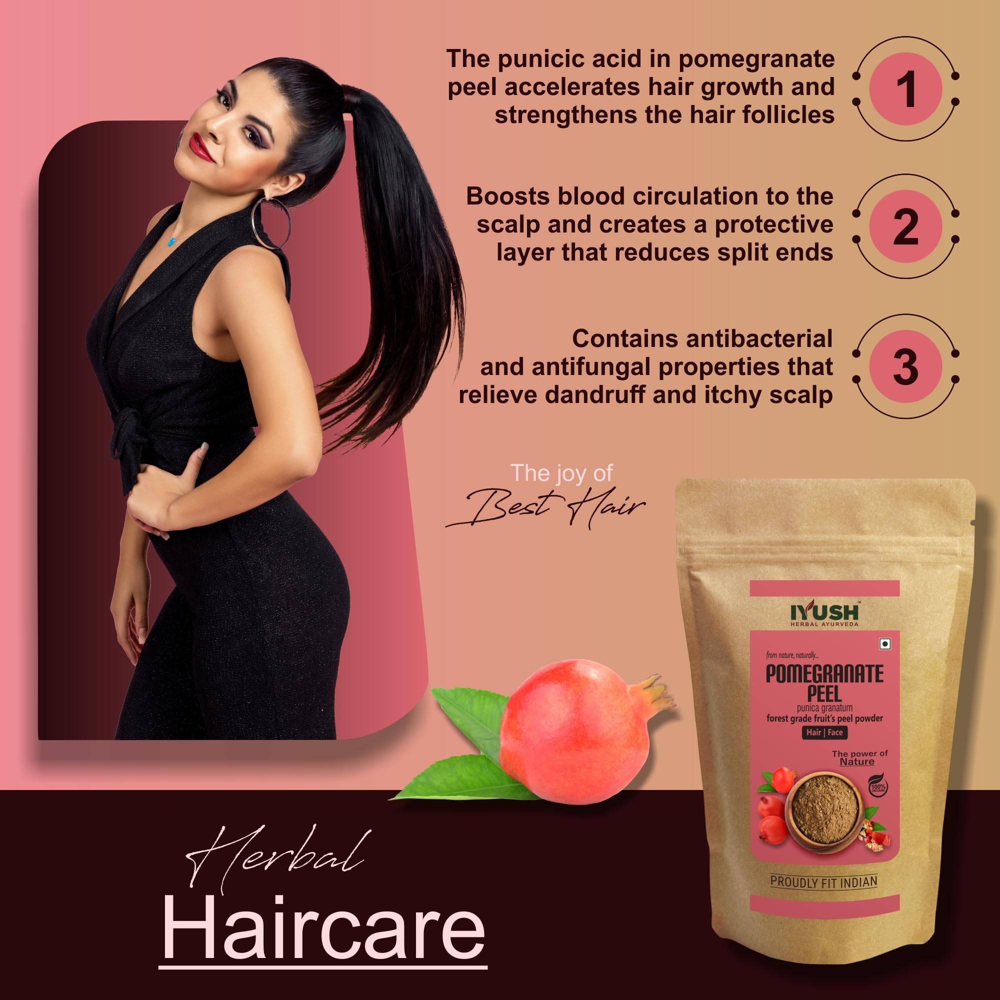 IYUSH Herbal Ayurveda Pomegranate Peel Powder 900gm | Pomegranate Powder | Anar Powder | pomegranate powder for drink | D Tan/Detan Face Pack Powder | Dtan Pack | Skin Care & Hair Care |