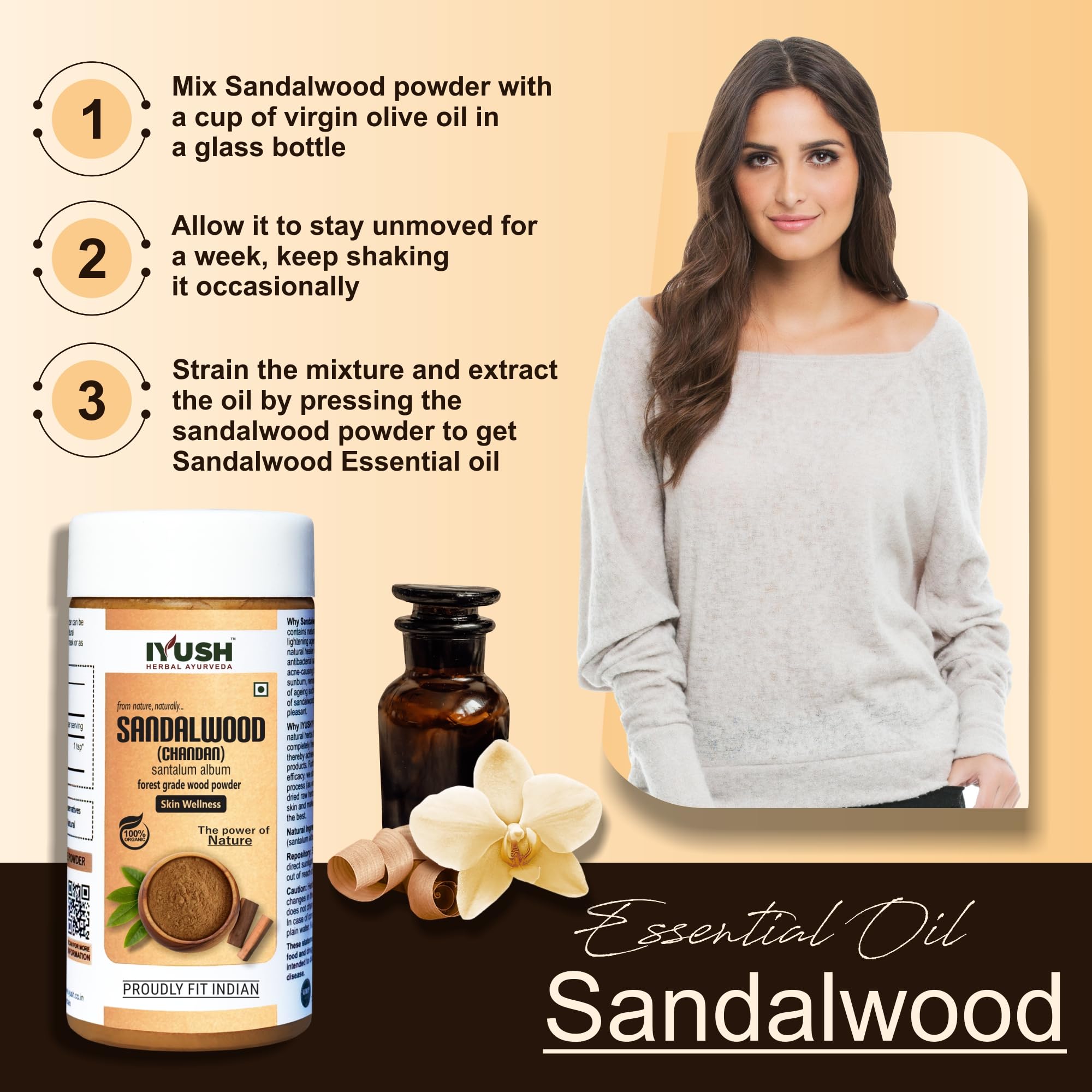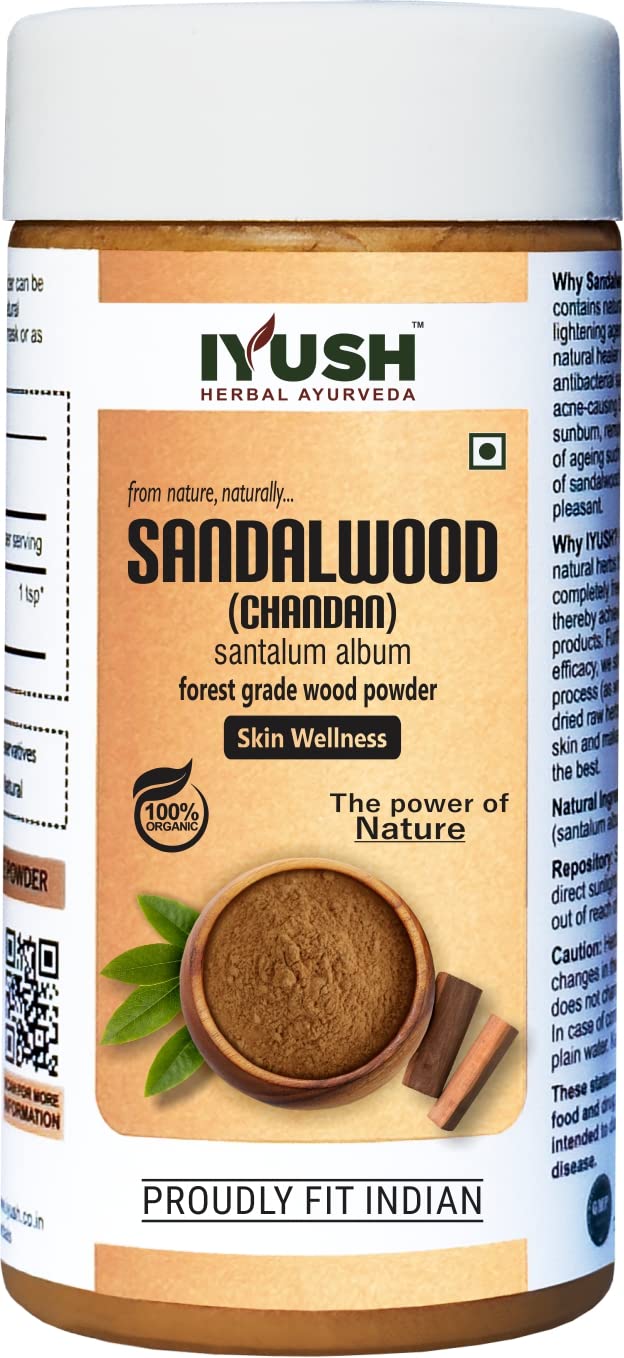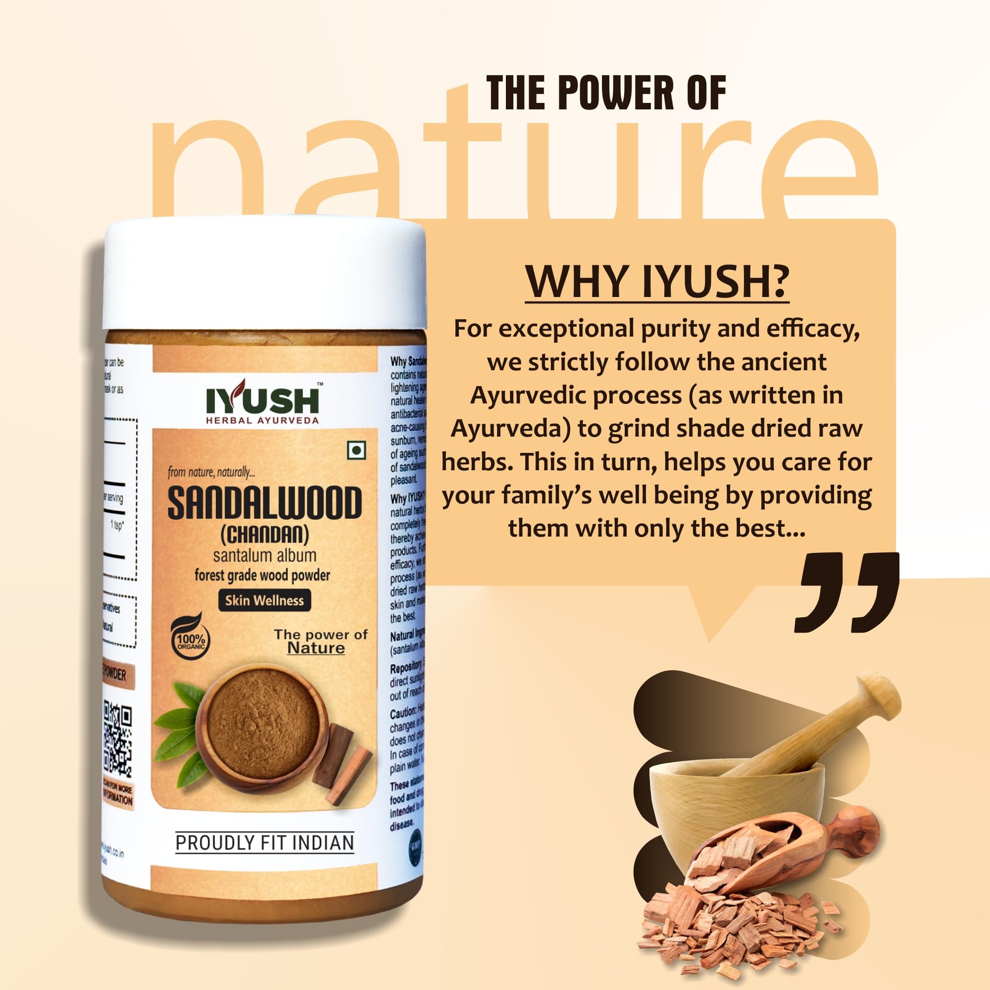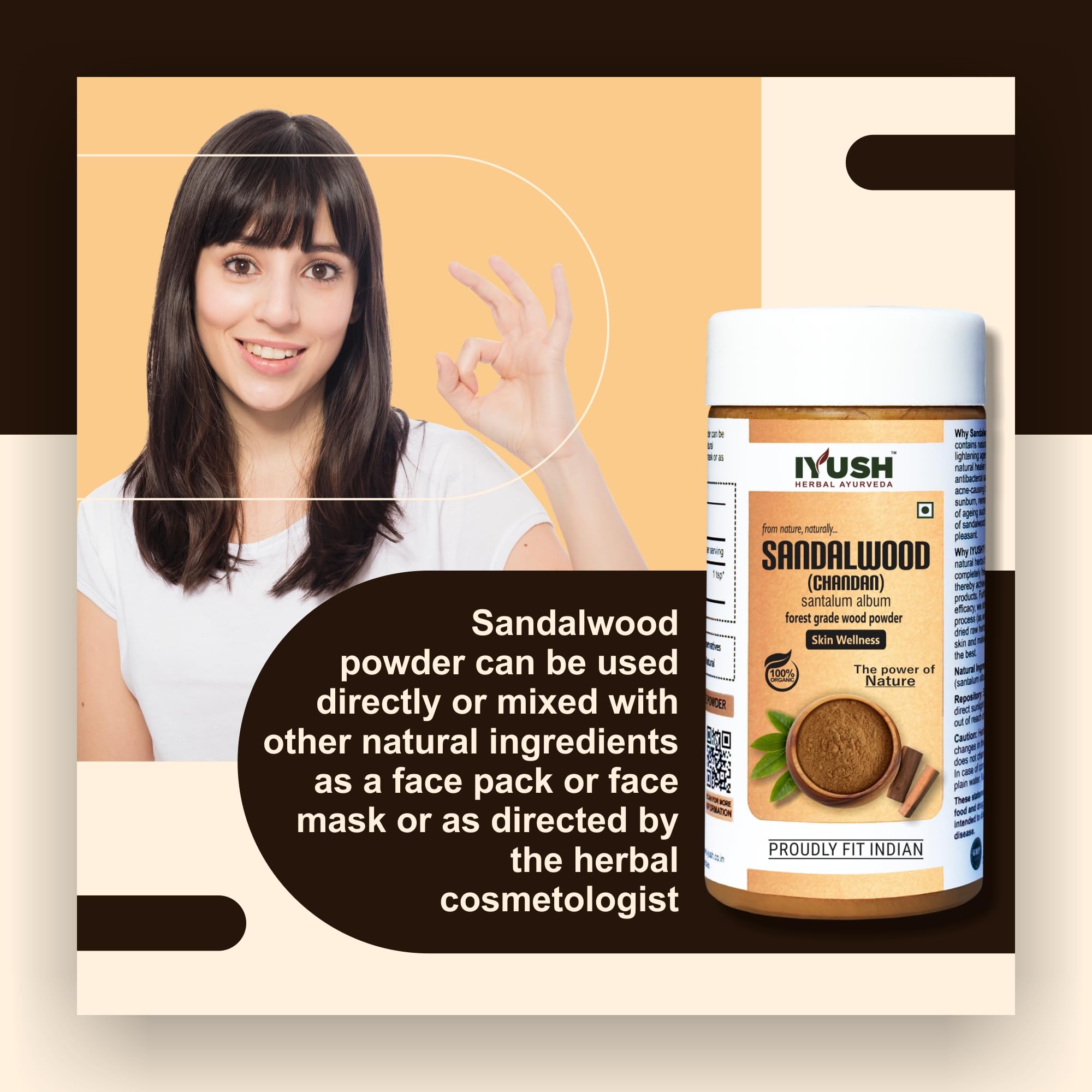 IYUSH Herbal Ayurveda Pure Sandalwood Powder for Face Pack 100gm | Chandan Powder Original | Sandal Wood Powder | Sandal Powder for Face Organic | Chandan Powder for Face Pack | De Tan Pack powder |