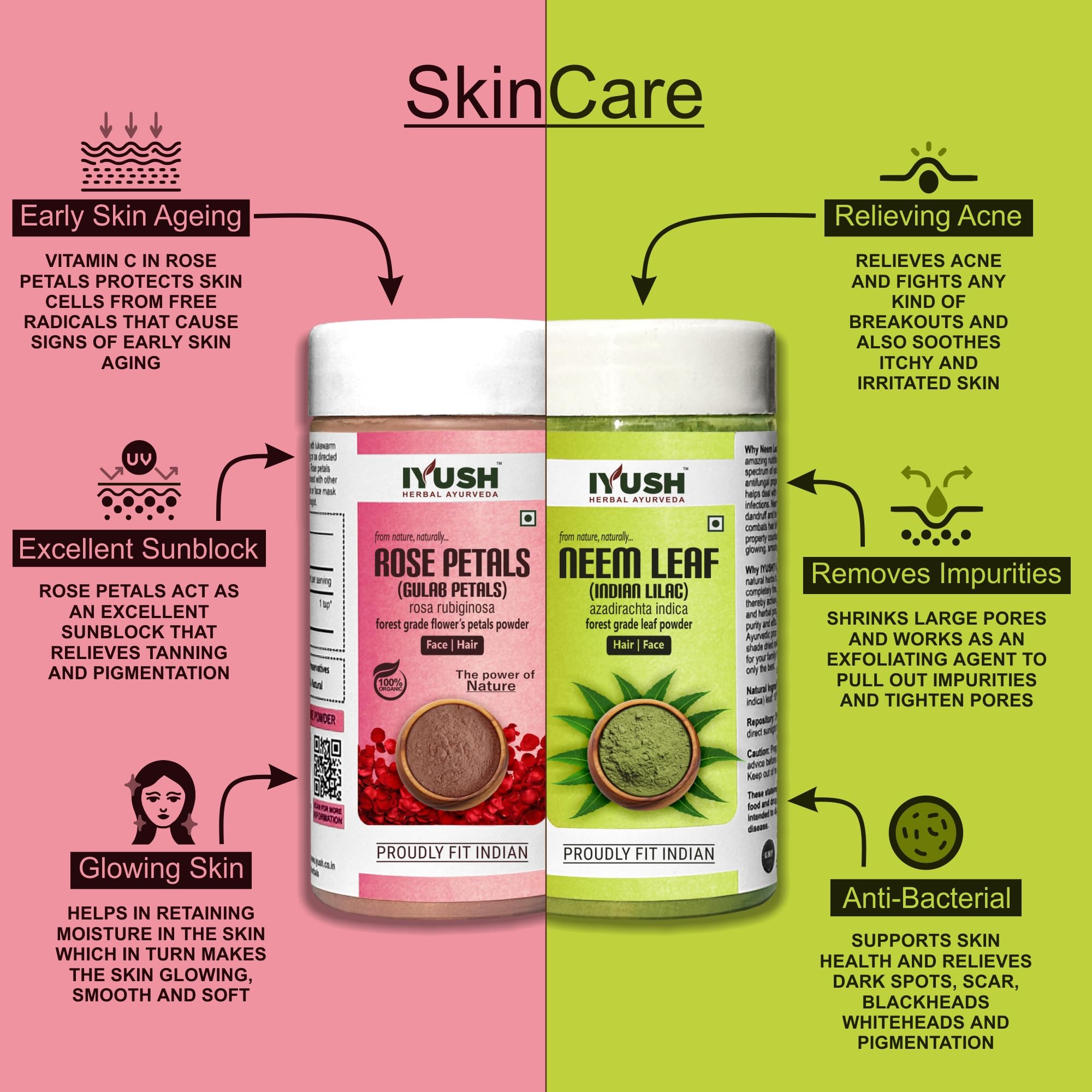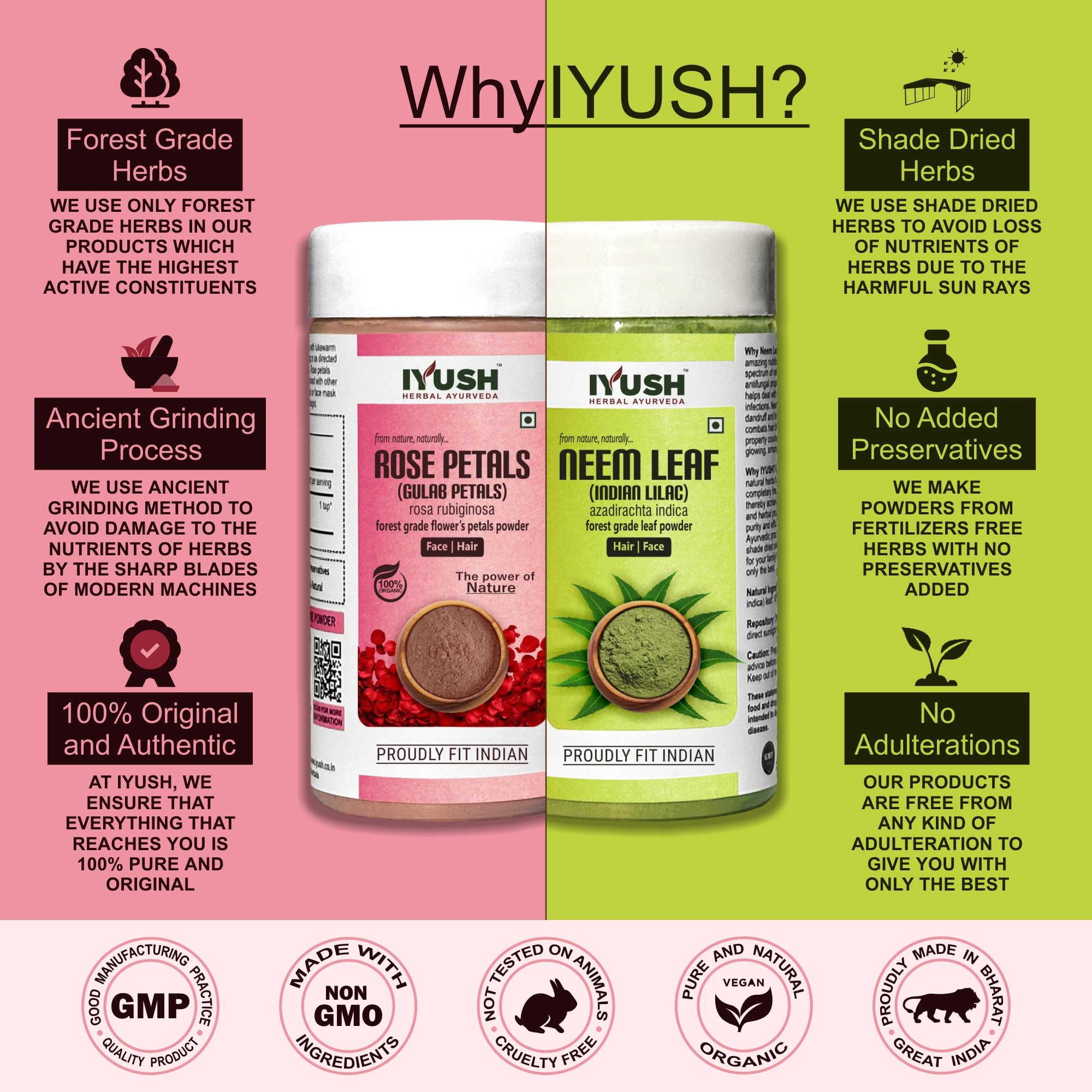 IYUSH Herbal Ayurveda Rose Petal Powder and Neem Powder - 100gm each For Skin Nourishment