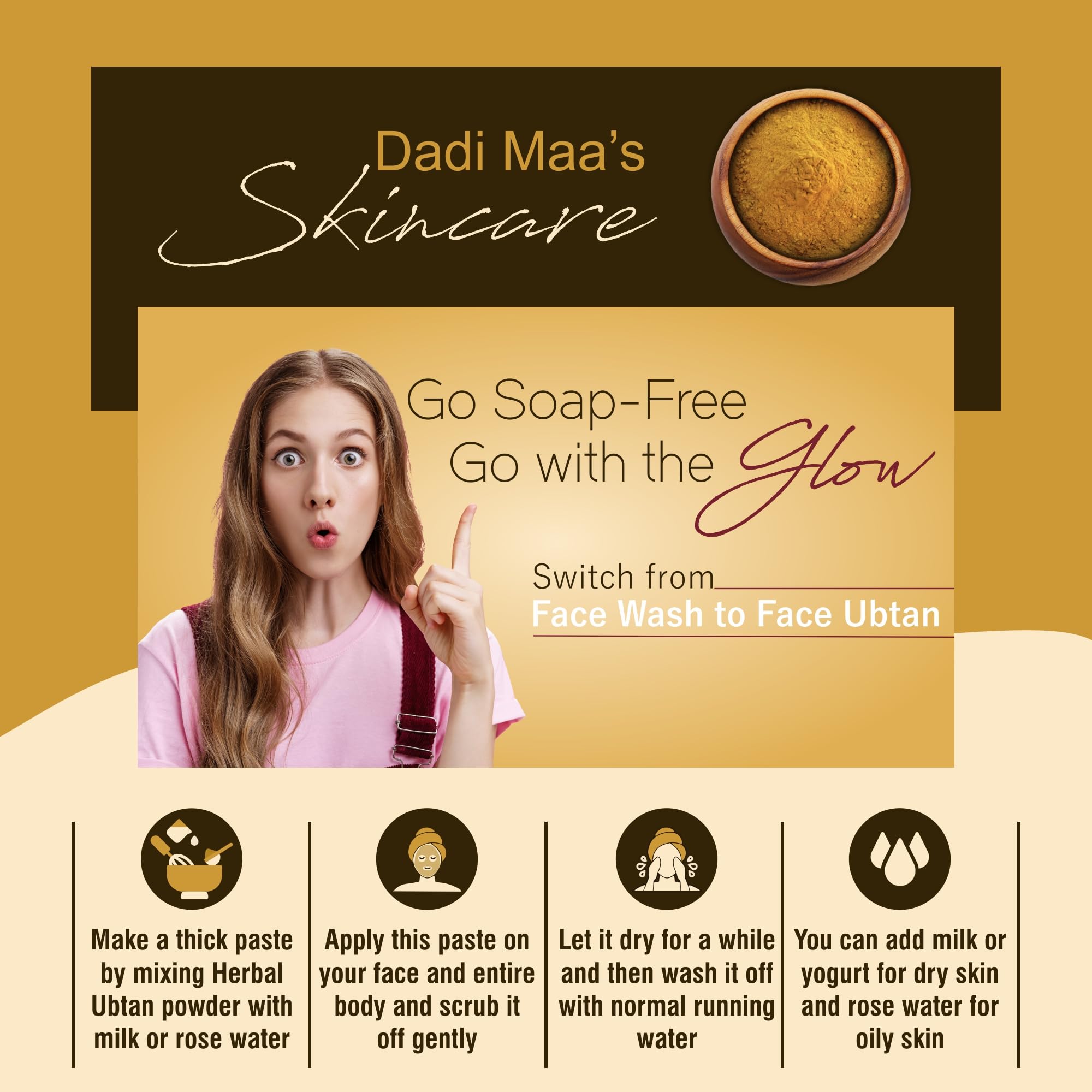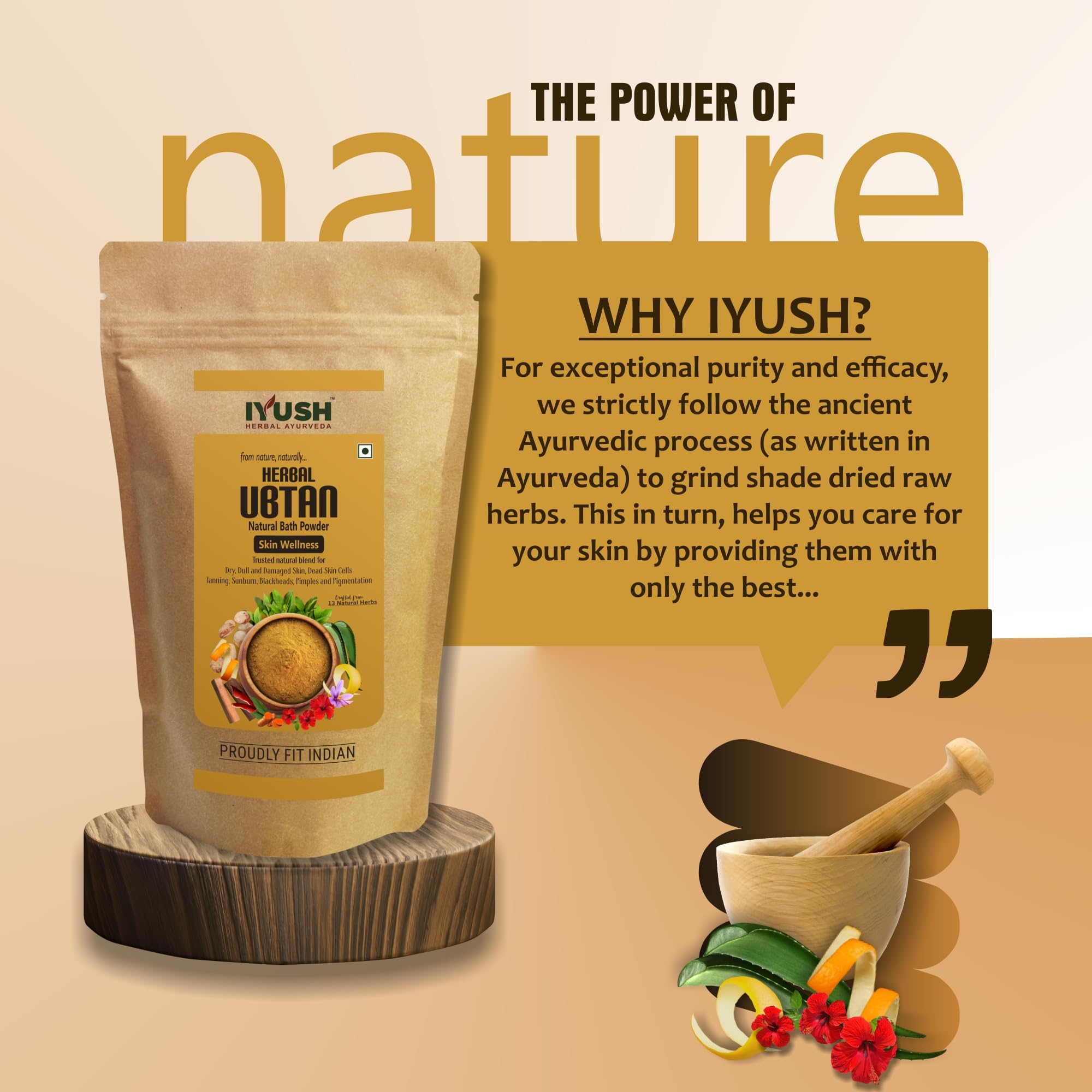 • Traditional Blend of 13 Potent Herbs for Complete Skin Nourishment: Ubtan powder is an ancient and traditional blend of 13 potent natural herbs like Sandalwood Kasturi haldi Hibiscus Orange Pomegranate and Lemon peel pure Saffron Tulsi Aloevera Neem etc.