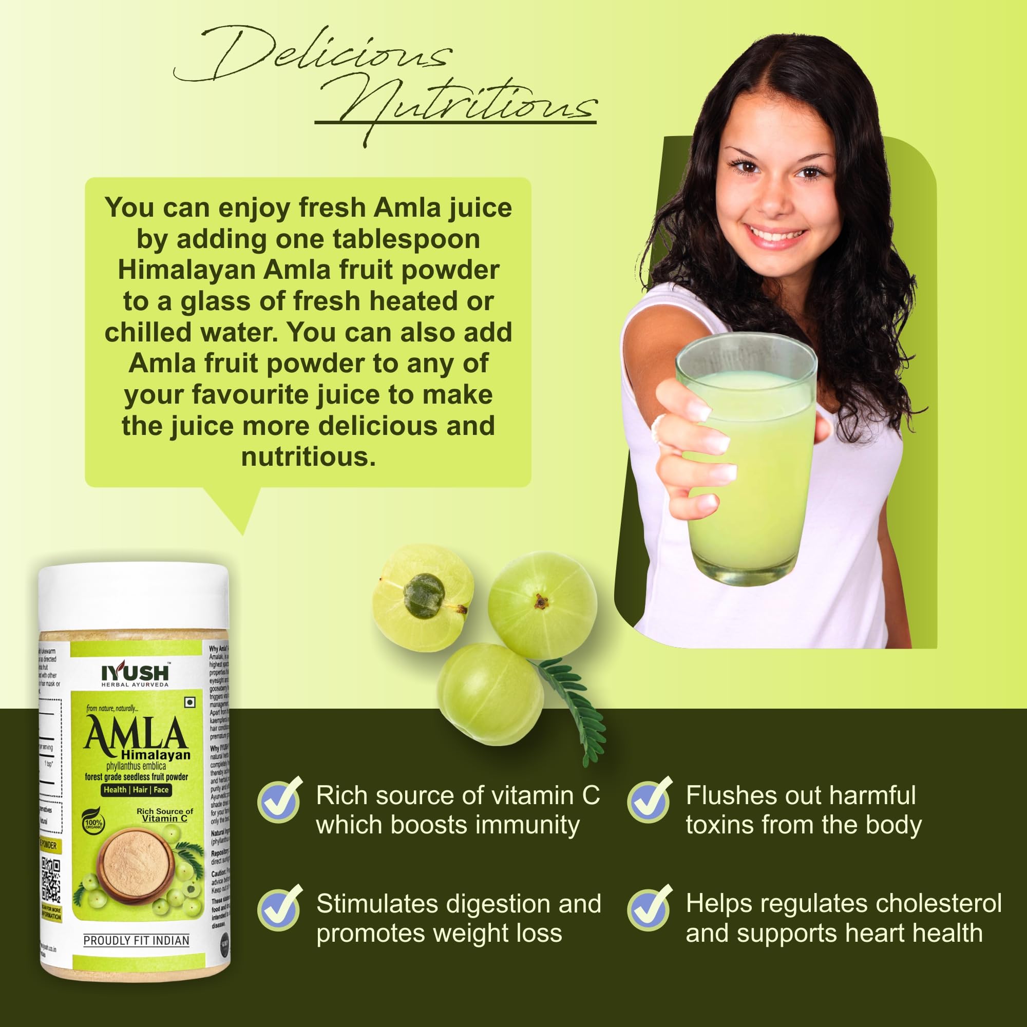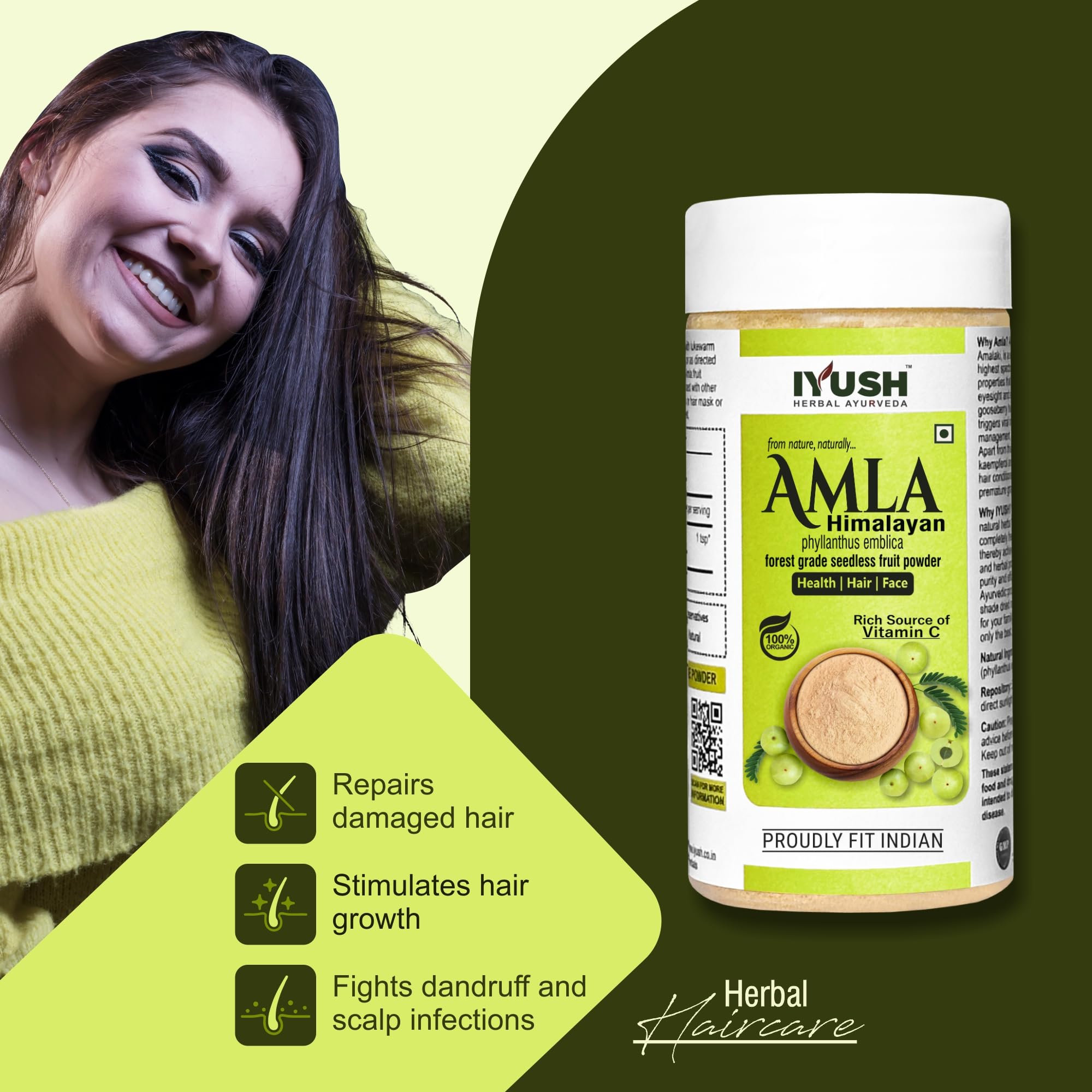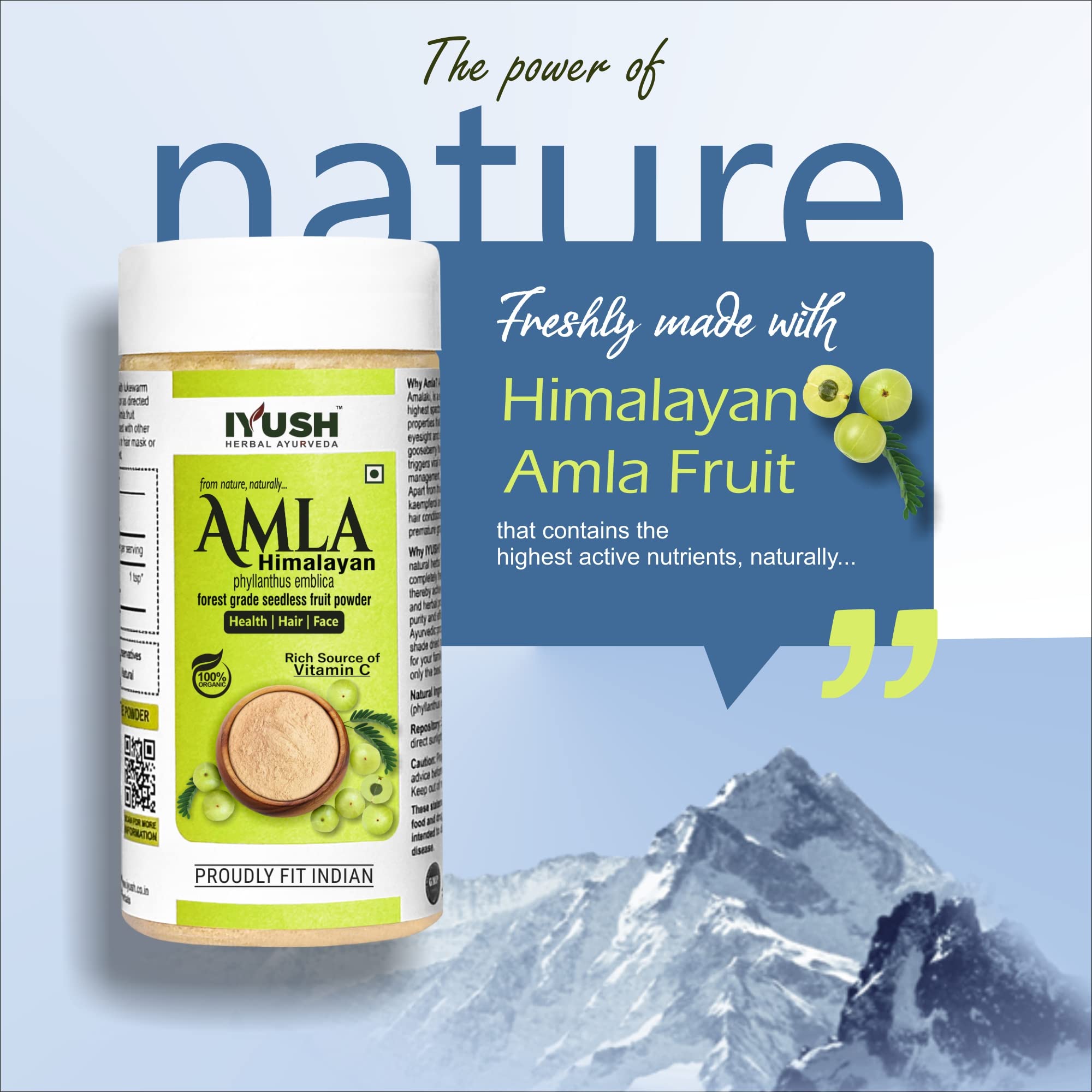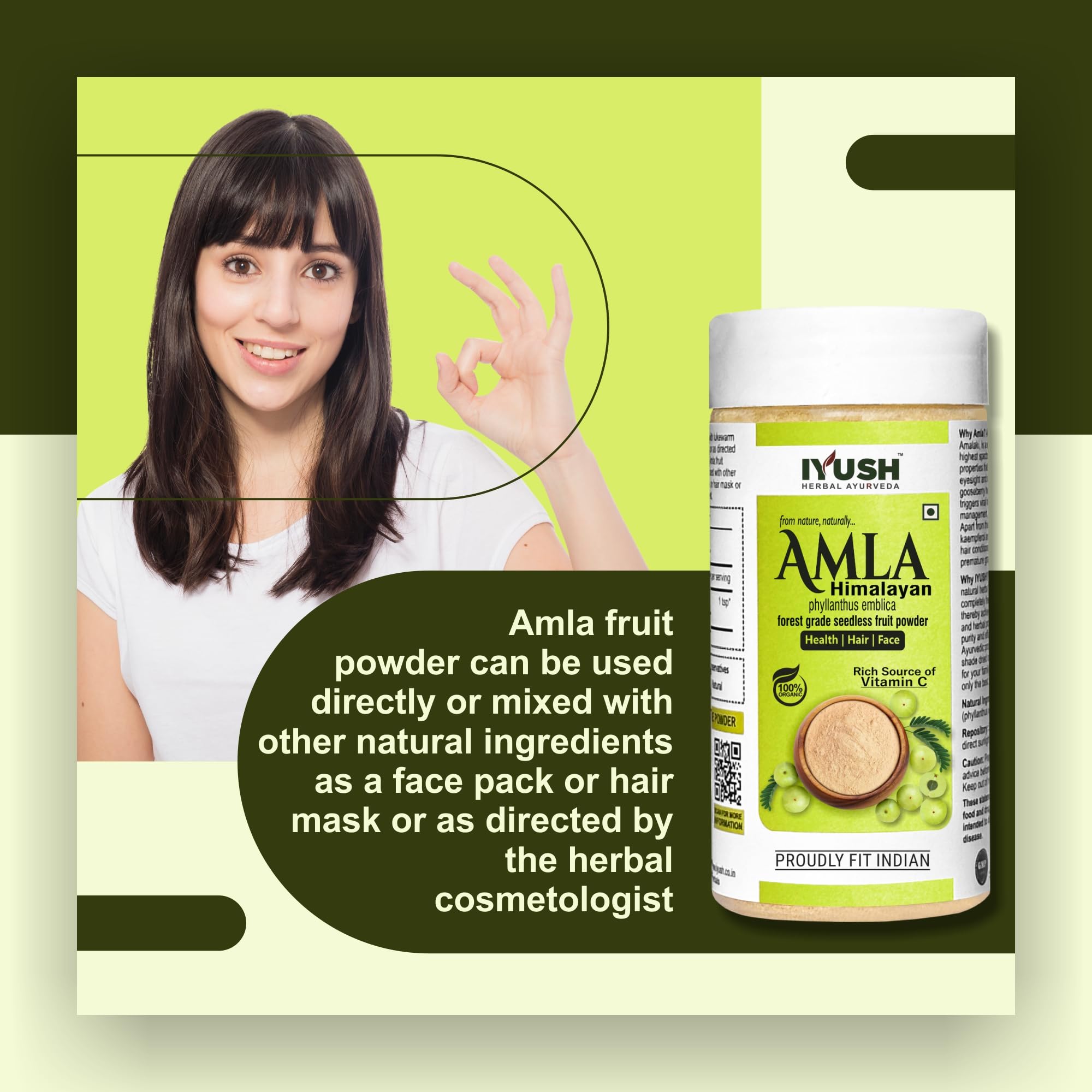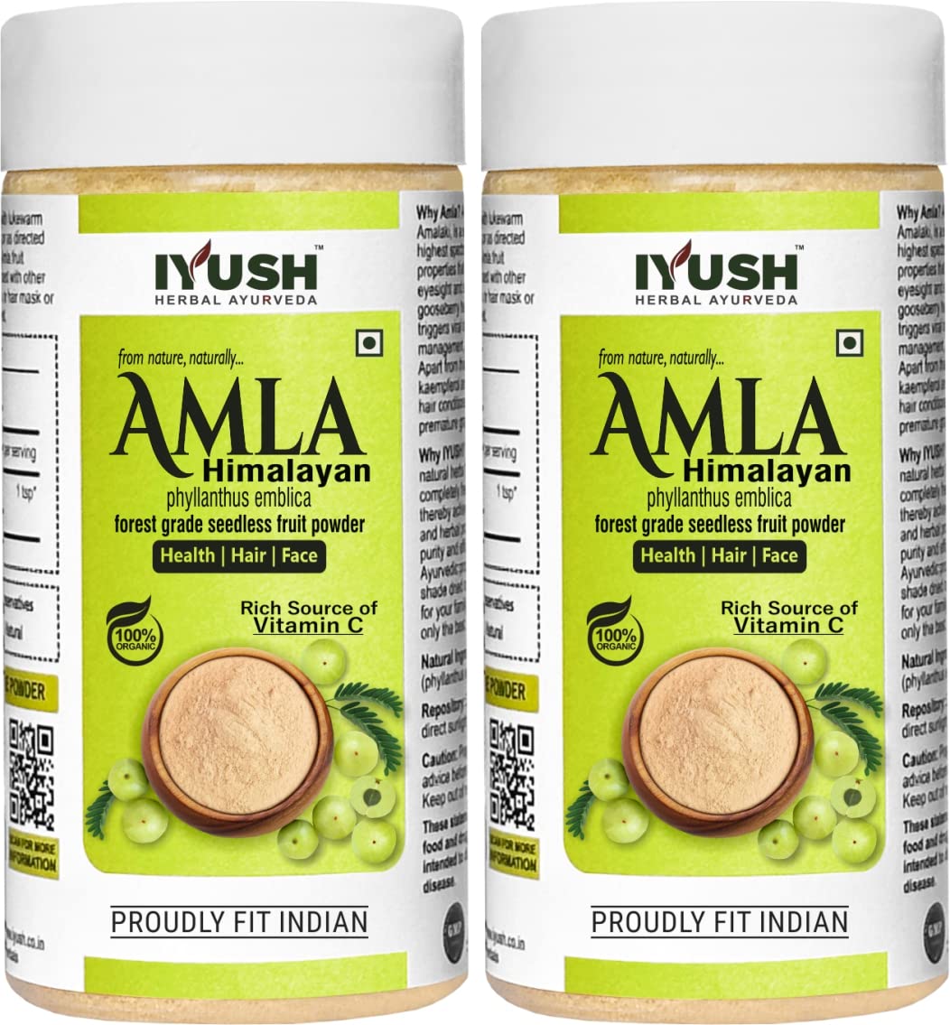 IYUSH Herbal Ayurveda Wild Organic Fresh Amla Powder For Eating|Fresh Amla Powder For Drinking|Fresh Amla Powder For Hair Growth Organic|Fresh Amla Powder For Skin|(Pack Of 2 100Gm Each)