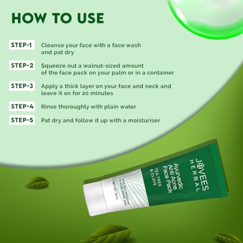 Jovees ayurvedic anti septic anti acne face pack deep cleanses the skin and its therapeutic properties help clear acne and pimples by reducing the size of the pores to prevent excessive oil formation without rupturing the skin.
