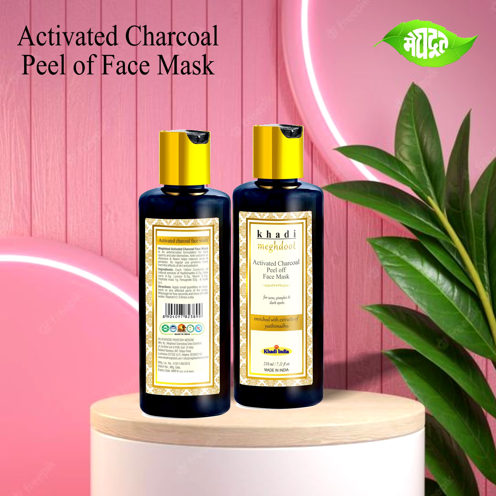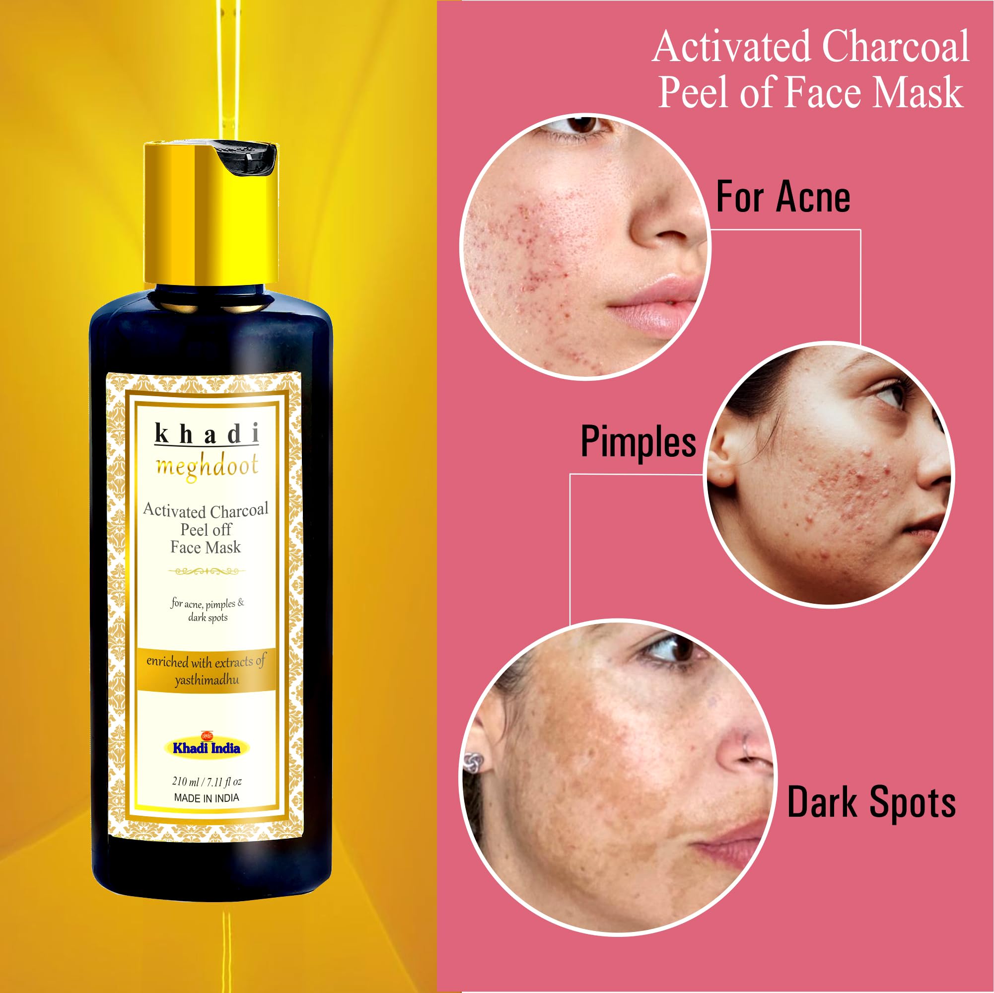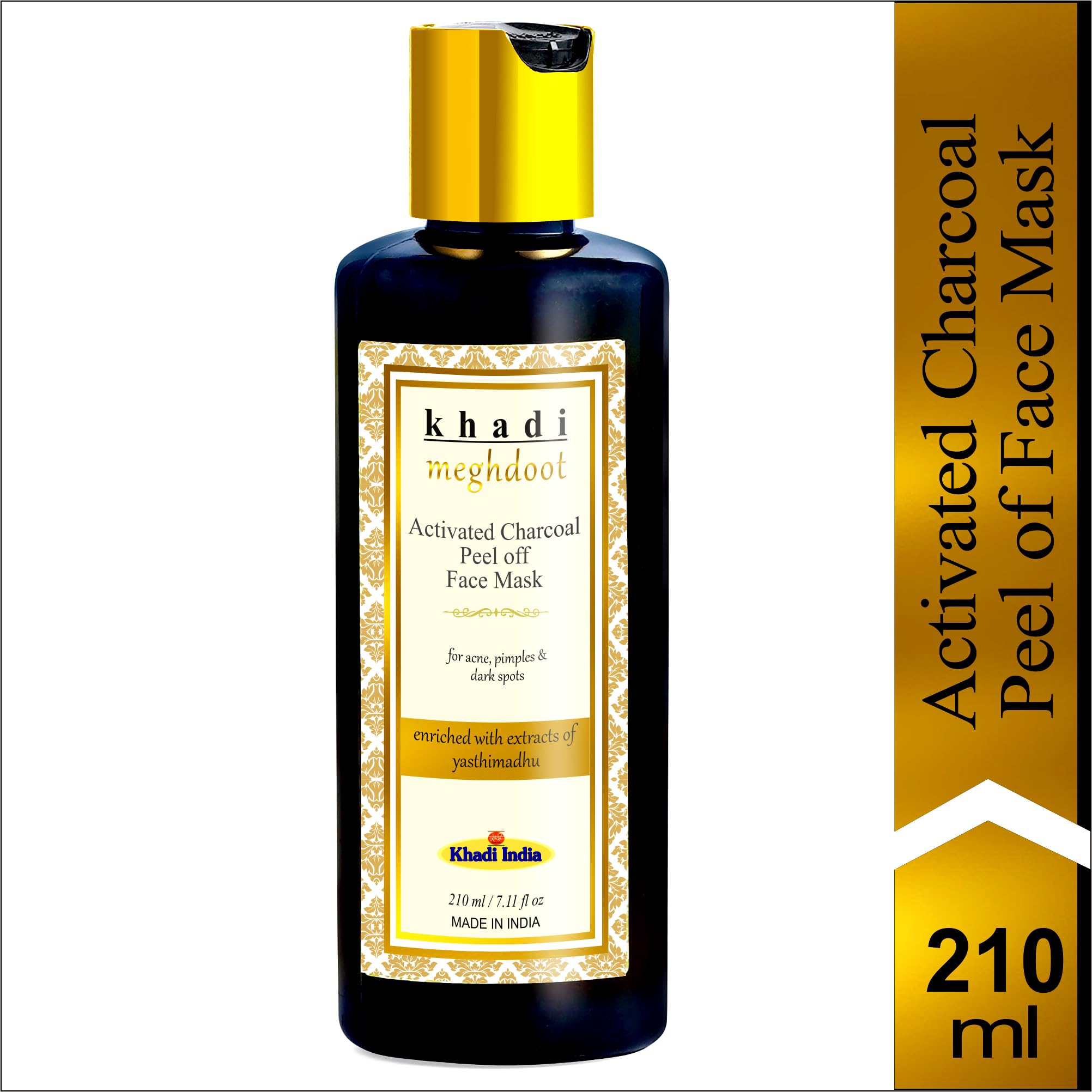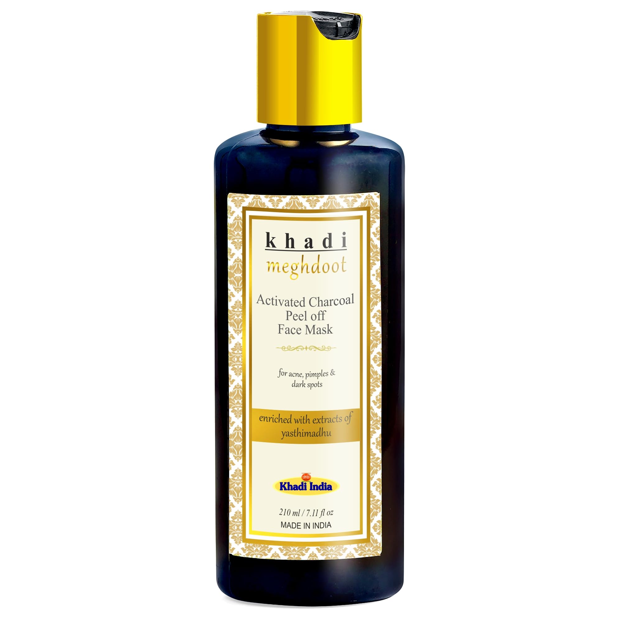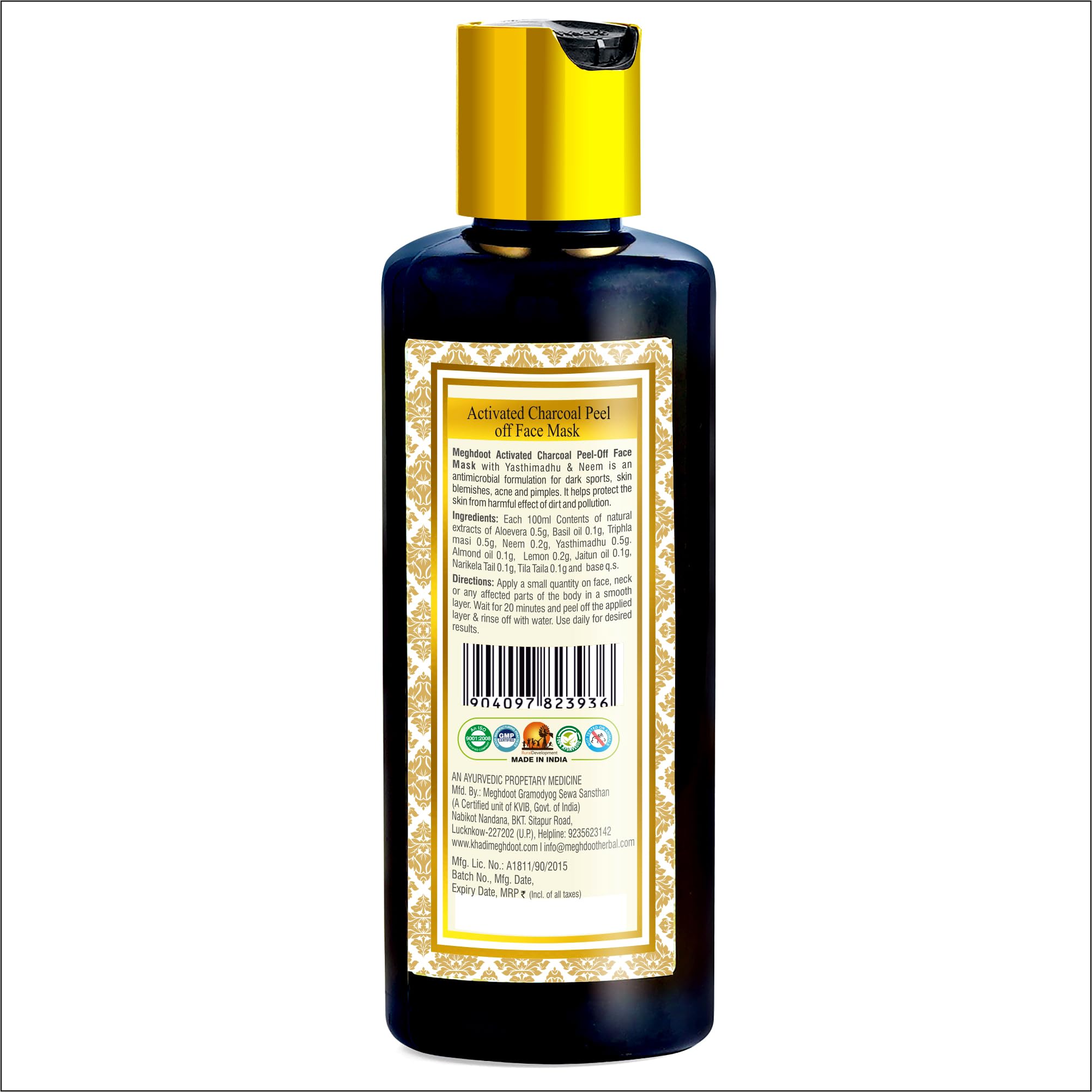 Khadi Meghdoot Activated Charcoal Peel-Off Face Mask Deep Cleansing Detoxifying Blackhead Removal Skin Purifying and Brightening 100% Natural and Ayurvedic 210ml (Pack of 1)
