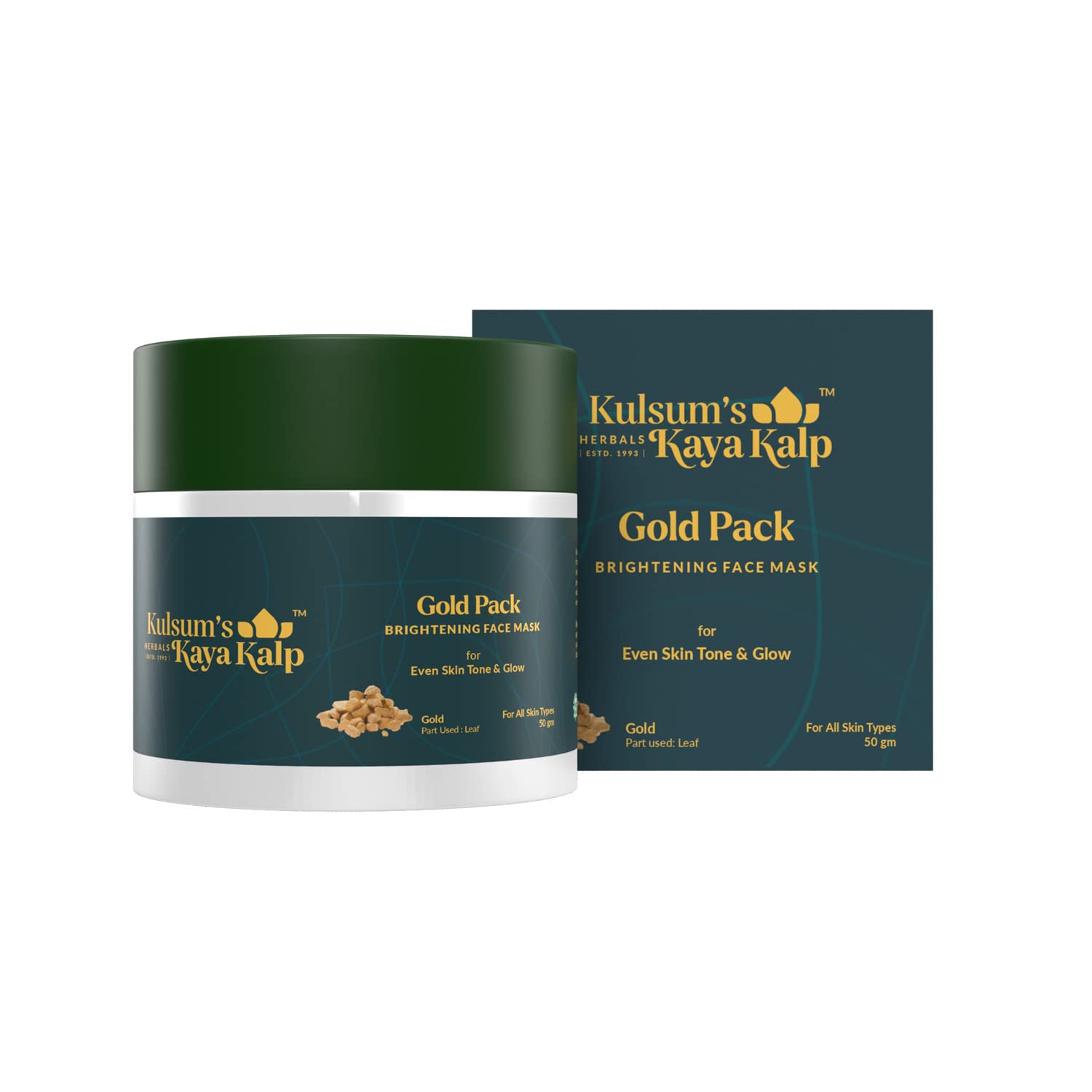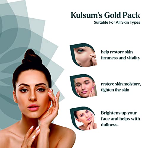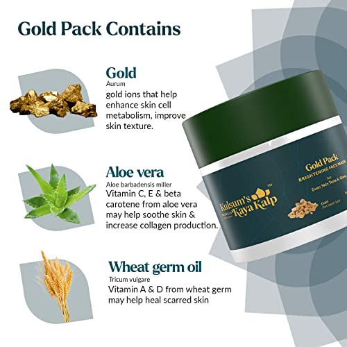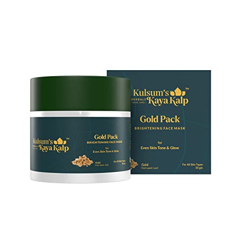 Take care of your skin and clear build-up dust dirt pollutants and makeup with Kulsum's Kaya Kalp Herbals Gold Pack. It is infused with vitamin E & helps restore skin's moisture texture and elasticity. Indulge yourself in a spa-like treatment at home with this face pack enriched with gold leaf aloe vera and wheat germ oil. Gold ions help restore skin firmness and enhance its health. Aloe vera is a popular skincare ingredient because of its numerous skin-nourishing effects. It moisturises the skin without causing it to get oily or greasy. Wheat germ oil has anti-inflammatory properties that help to soothe and reduce inflammation and redness on the skin. These antioxidant-rich ingredients help protect the skin against free radical damage. They are blended to form a perfect face pack for glowing skin which is also easy to apply. Kulsum's Kaya Kalp Herbals Gold Pack is natural cruelty-free and paraben-free.