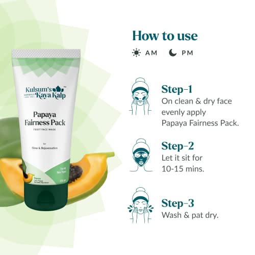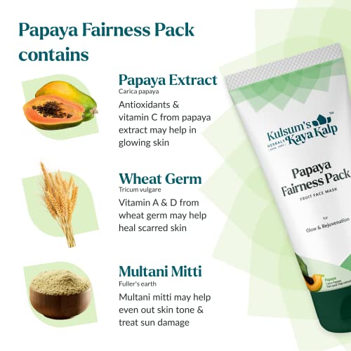 Kulsum's Kaya Kalp Herbals Papaya Fairness Pack For Glow & Rejuvenation | Ideal For Men & Women | With Papaya | For All Skin Types | 100gm