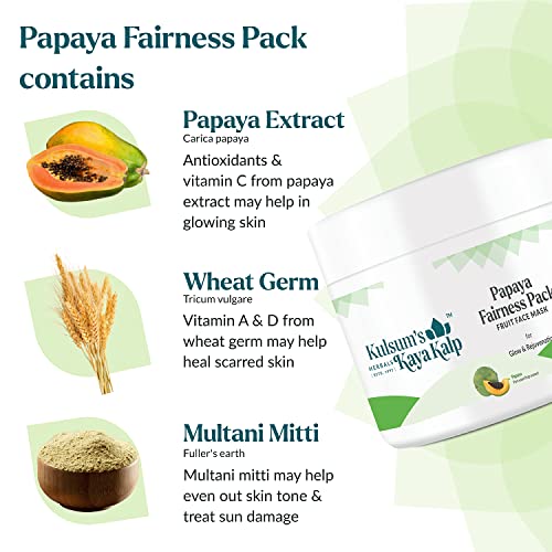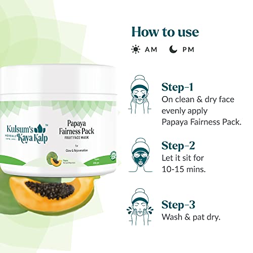 Kulsum's Kaya Kalp Herbals Papaya Fairness Pack For Glow & Rejuvenation | Ideal For Men & Women | With Papaya | For All Skin Types | 250gm