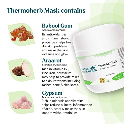 • Kulsum's Kaya Kalp Herbals Thermoherb Mask is a rejuvenating face mask enriched with Babool Gum Araarot and Gypsum.