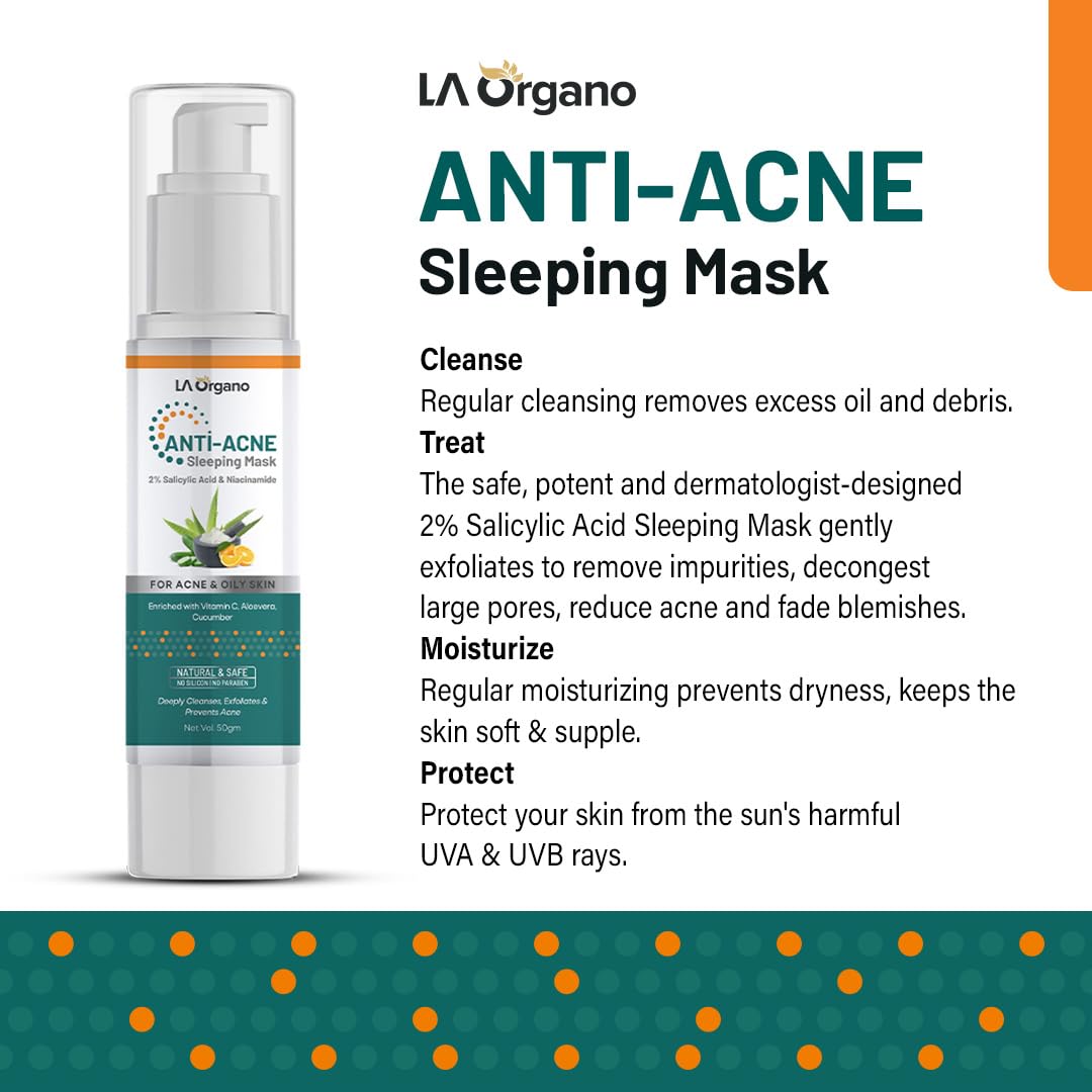 LA Organo Anti Acne Sleeping Mask for Acne & Oily Skin with 2% Salicylic Acid & Niacinamide (Pack of 1) 50g