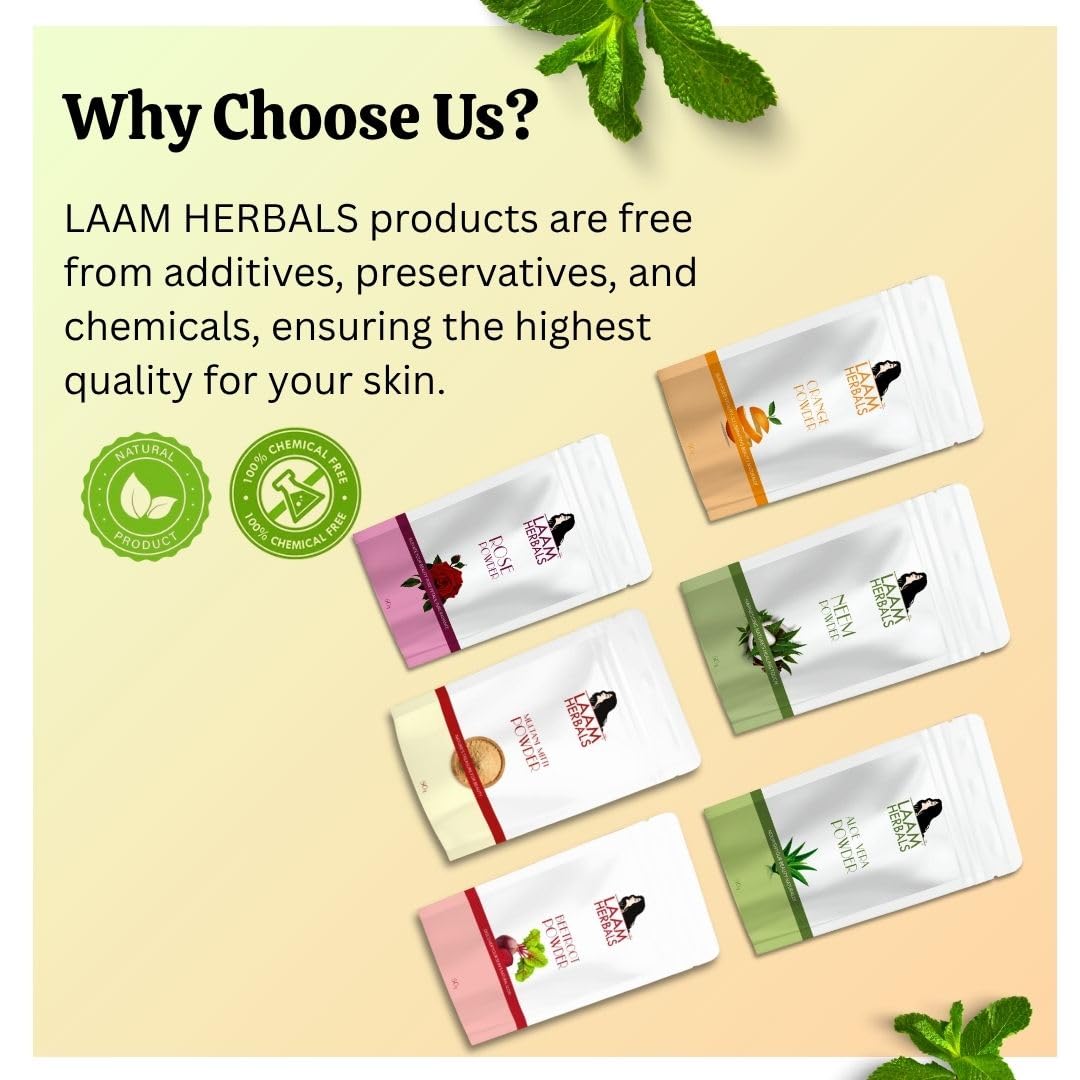 Laam Herals Skin & Hair care powders is made from best quality of fruits Seeds Flowers etc. Our Powders are pure and natural nothing added and taken away from it. Fresh flowers seeds fruits are carefully selected dried & then our triple-shift grinding process makes it a lump-free powder that is easy to apply over face skin and hair. There is no chemical added to this powder that may cause harm to your hair or skin.