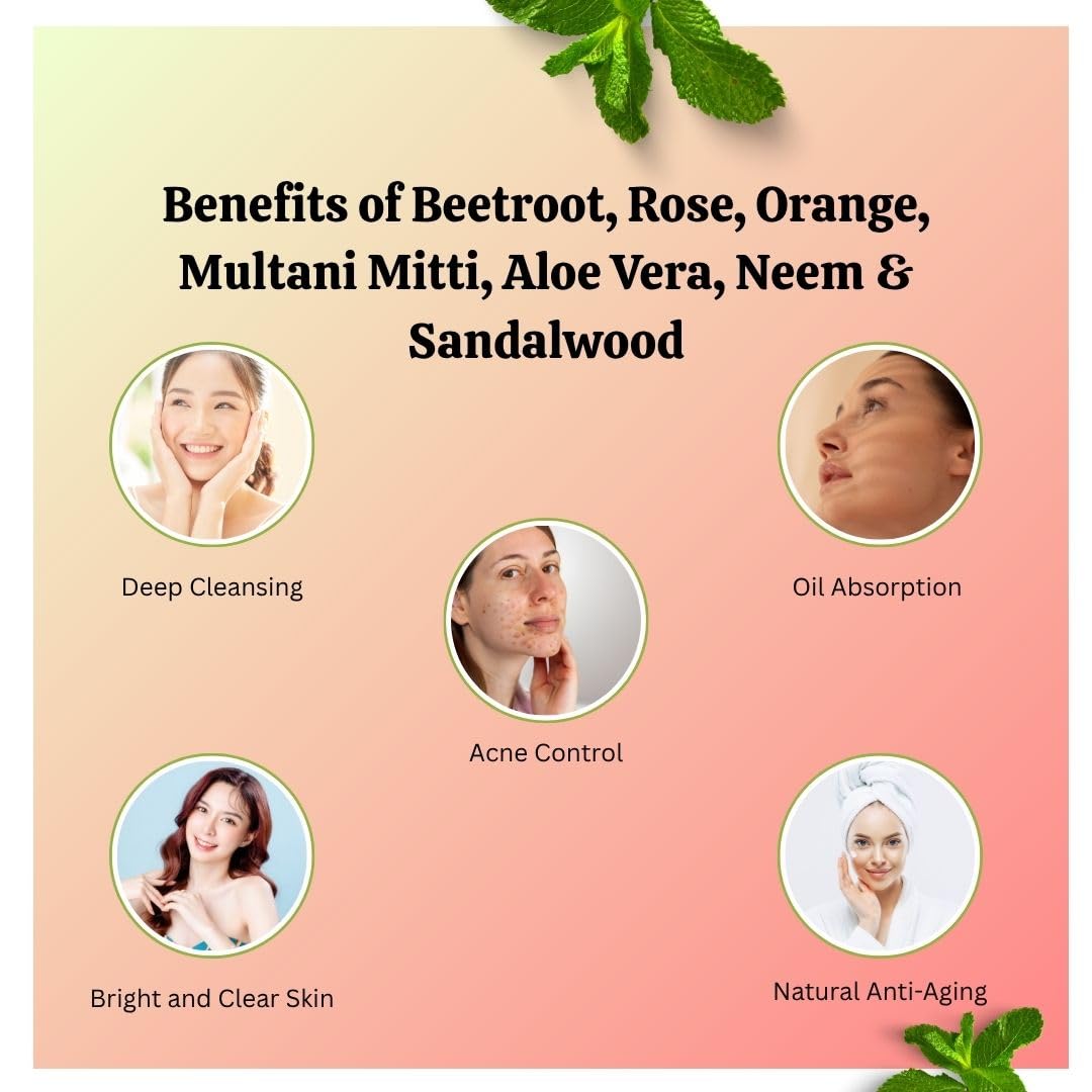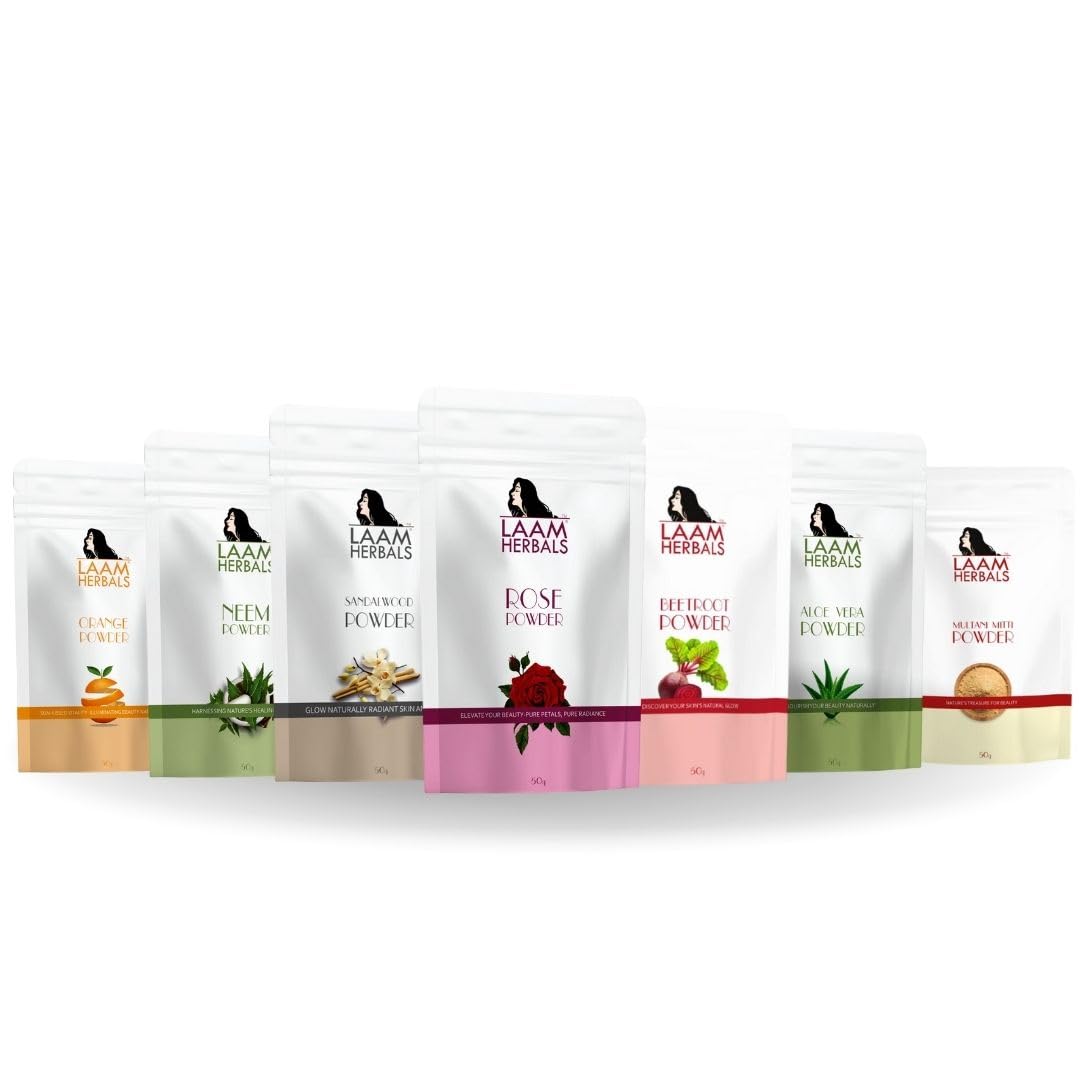 Laam Herbals Organic Beetroot Rose Petal Orange Peel Multani Mitti Aloe Vera Leaf Neem Leaf & Sandalwood Powder For Natural Flawless Spotless & Glowing Skin- 7X50 g