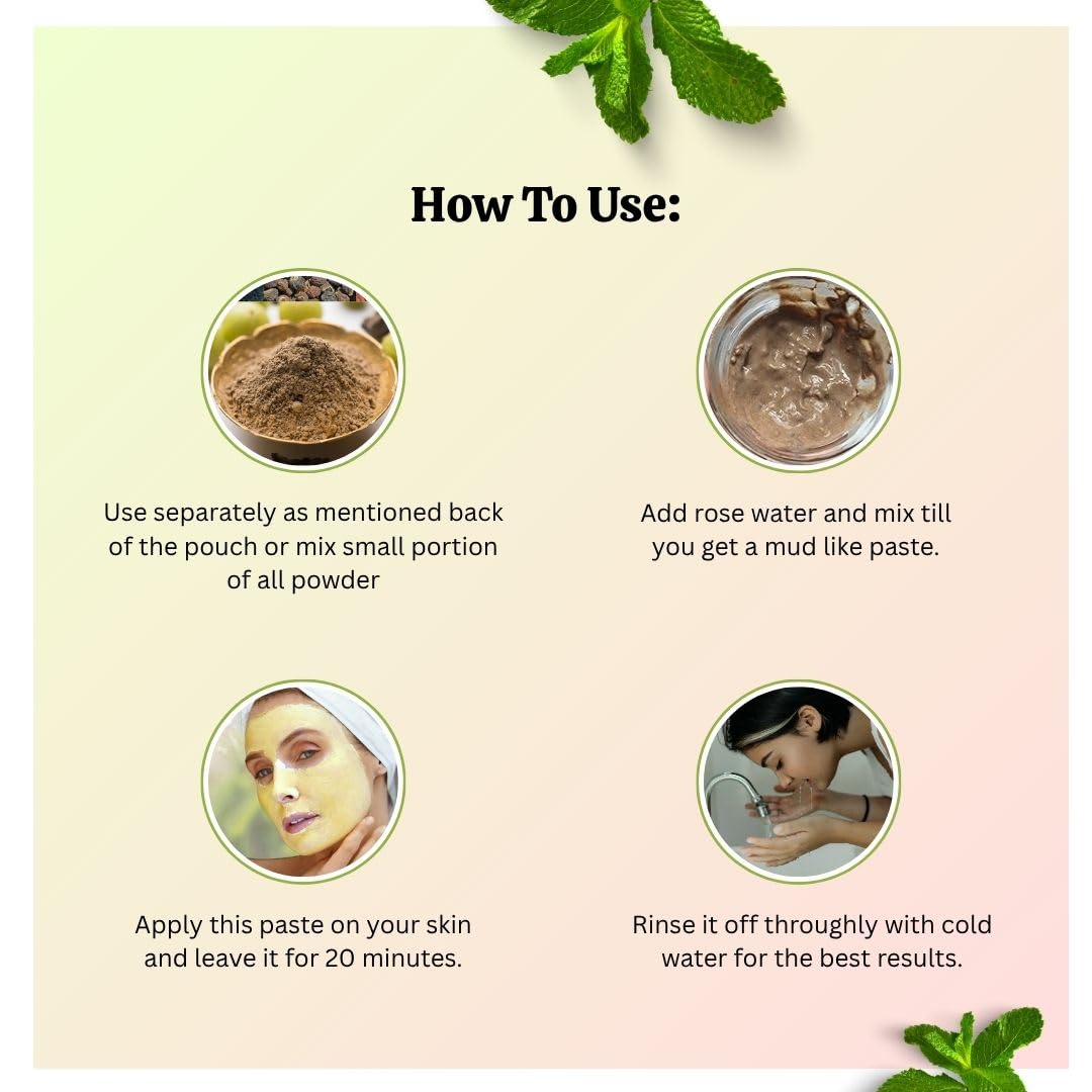 Laam Rose Petal Orange Peel Multani Mitti Aloe Vera Neem Leaf Powder. These powders are prepared by drying the freshly selected petpeels leaves and woods into shade then these dried petpeels leaves and woods is then passed through a heat machine which completely dries them further by sucking the remaining moisture in them. At last it is grounded to powder form through the triple-shift process which makes it a lump-free powder that is easy to apply over face & Hair. After grinding the powder are packed in a clean environment to ensure the proper hygiene of the product. To produce a high qualtiy of product Nothing is added or taken away from these powders.