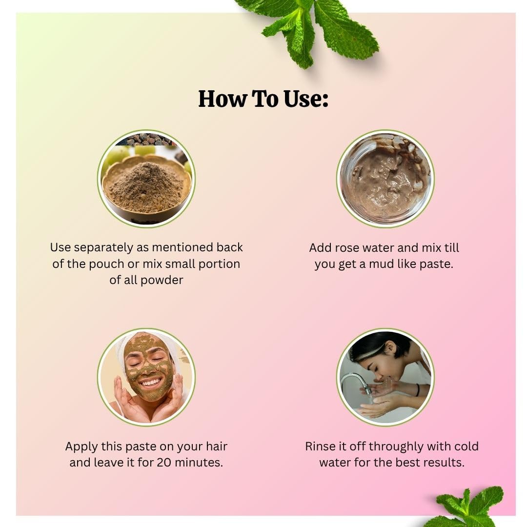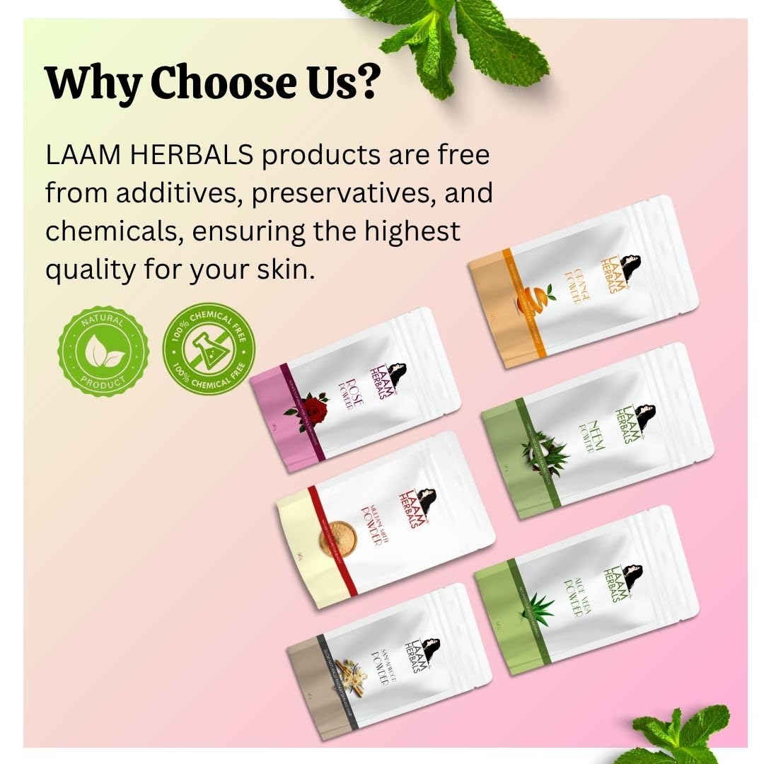 Laam Rose Petal Orange Peel Multani Mitti Aloe Vera Neem Leaf Sandalwood Powder. These powders are prepared by drying the freshly selected petpeels leaves and woods into shade then these dried petpeels leaves and woods is then passed through a heat machine which completely dries them further by sucking the remaining moisture in them. At last it is grounded to powder form through the triple-shift process which makes it a lump-free powder that is easy to apply over Hair. After grinding the powder are packed in a clean environment to ensure the proper hygiene of the product. To produce a high qualtiy of product Nothing is added or taken away from these powders.