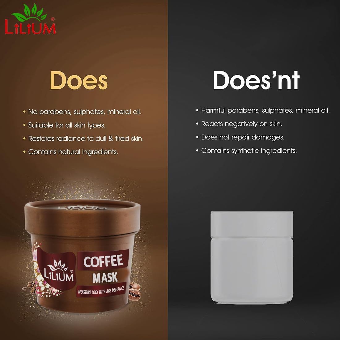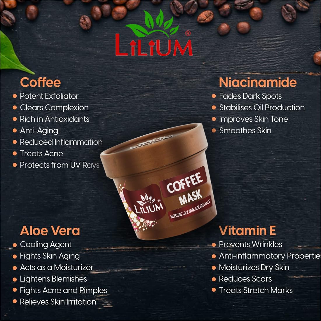 Lilium Coffee Face Mask 100g Moisture Lock With Age Defiance Extra Glow & Fair Complexion Oily & Dry Skin Women & Men All Skin Type Paraben & Sulfate Free
