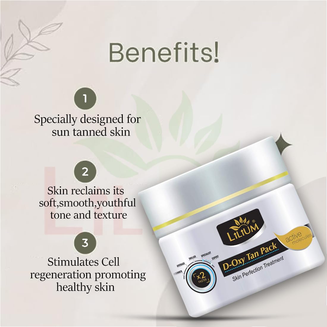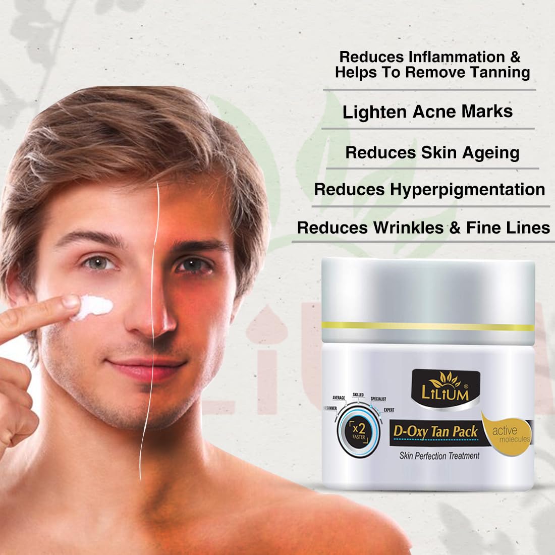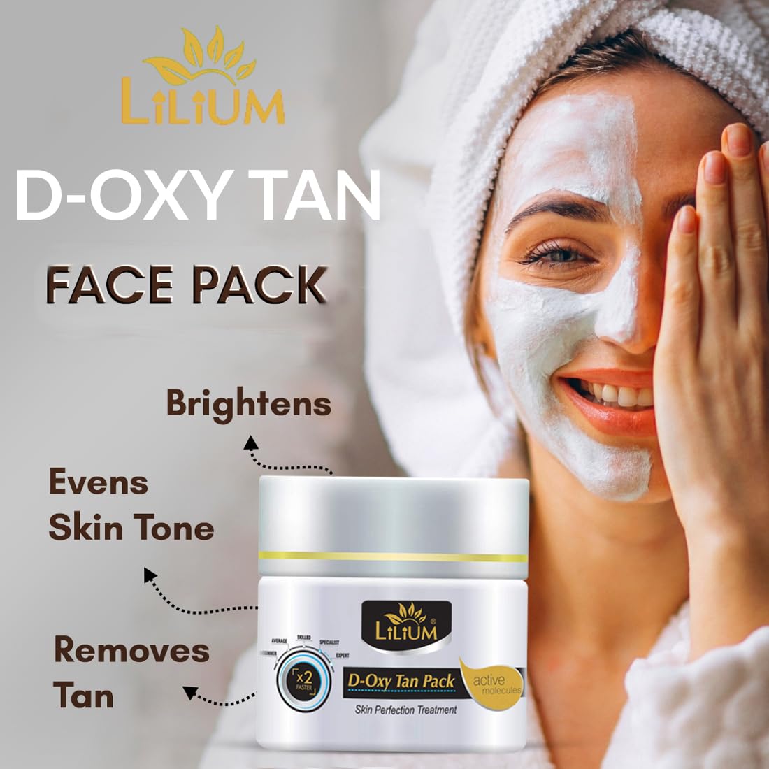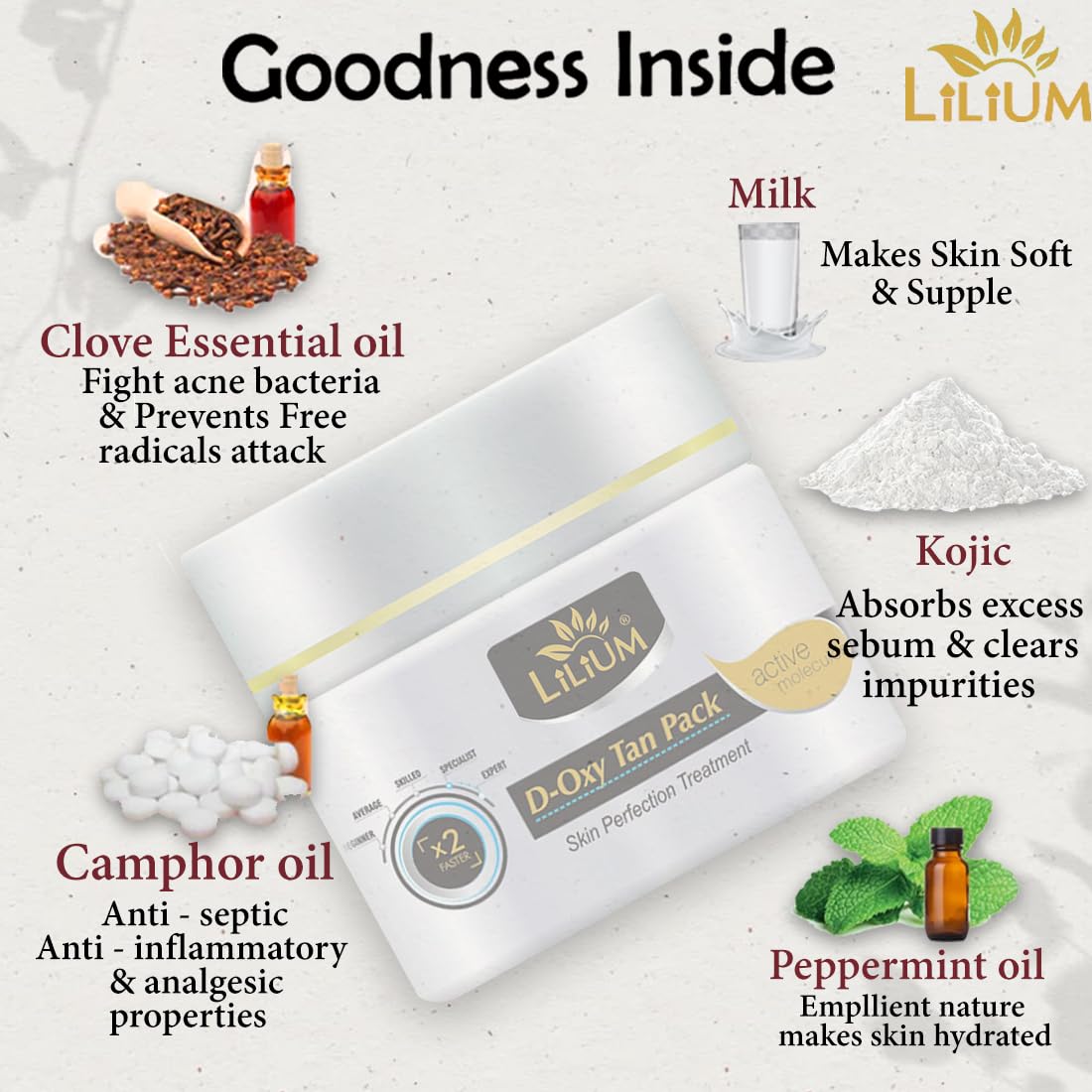 Lilium D Oxy Tan Face Pack | De Tanning Removal Cream with Kojic & Milk | Sun Damage Protection | Dermatologically Tested Peroxide Free & 100% Vegan | Men & Women | Hydrating Mask (250 gm (Pack of 1))