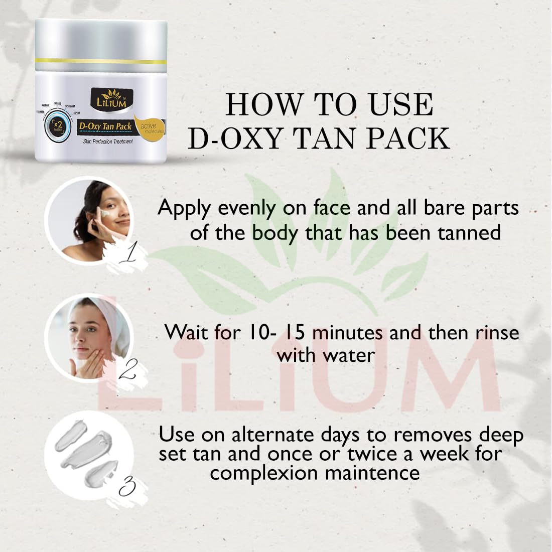 Lilium D Oxy Tan Face Pack | Tan Removal Cream with Kojic & Milk | Sun Damage Protection | Dermatologically Tested Peroxide Free & 100% Vegan | Men & Women | Hydrating Mask (40 gm (Pack of 1))