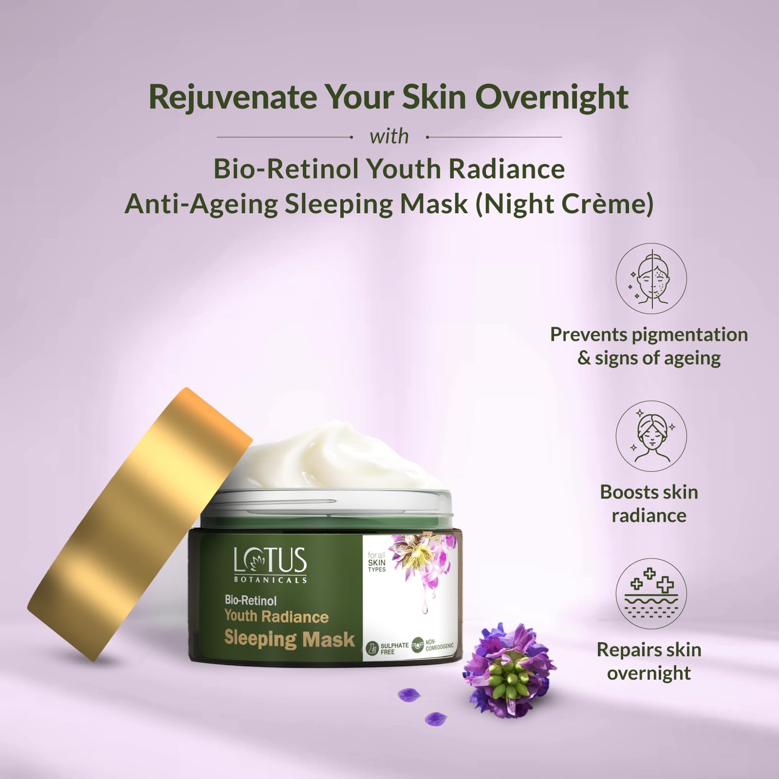 Lotus Botanicals Bio Retinol Youth Radiance Sleeping Mask | Reduces Fights Fine Lines & Nourishes Skin | Preservative Free | For All Skin Types | 50g
