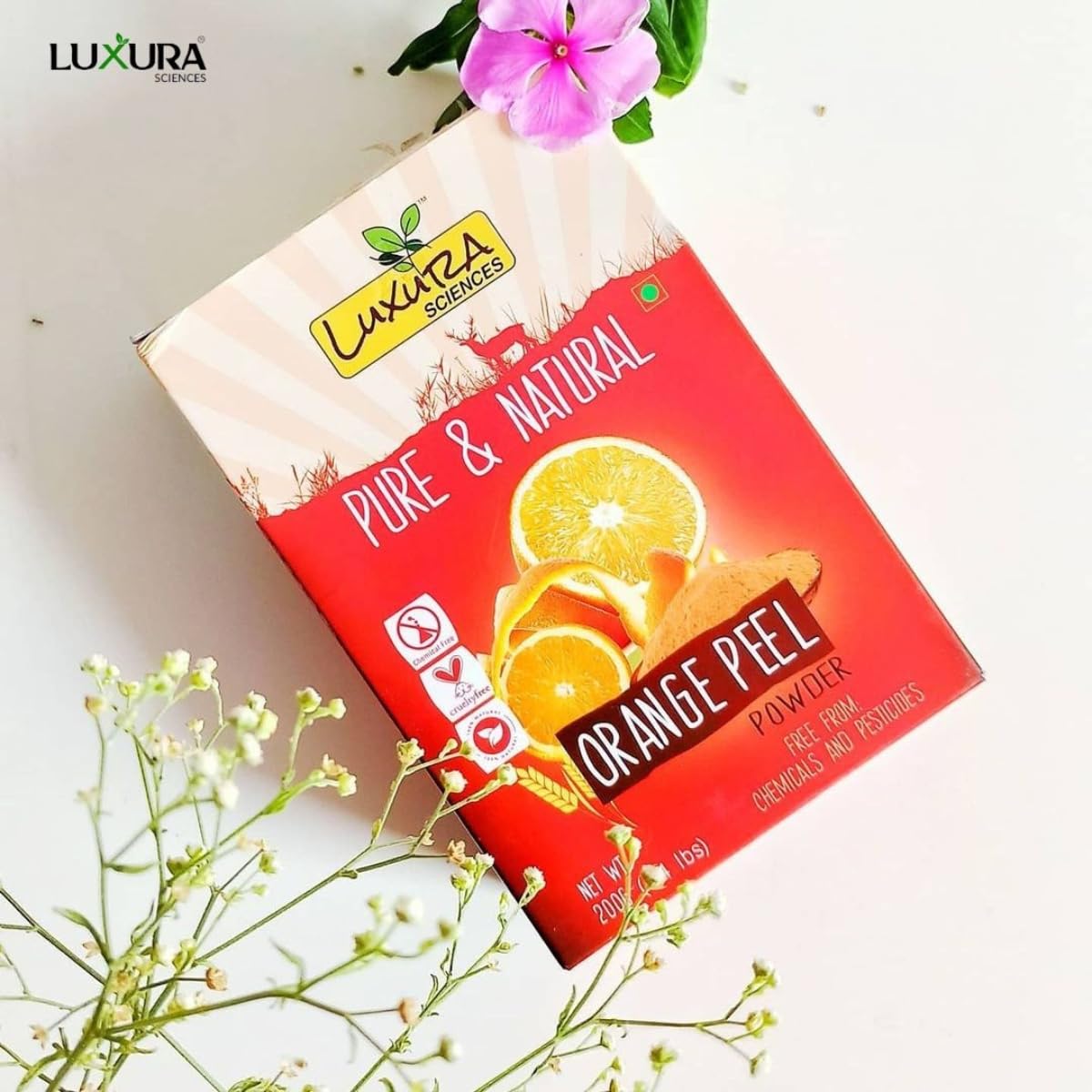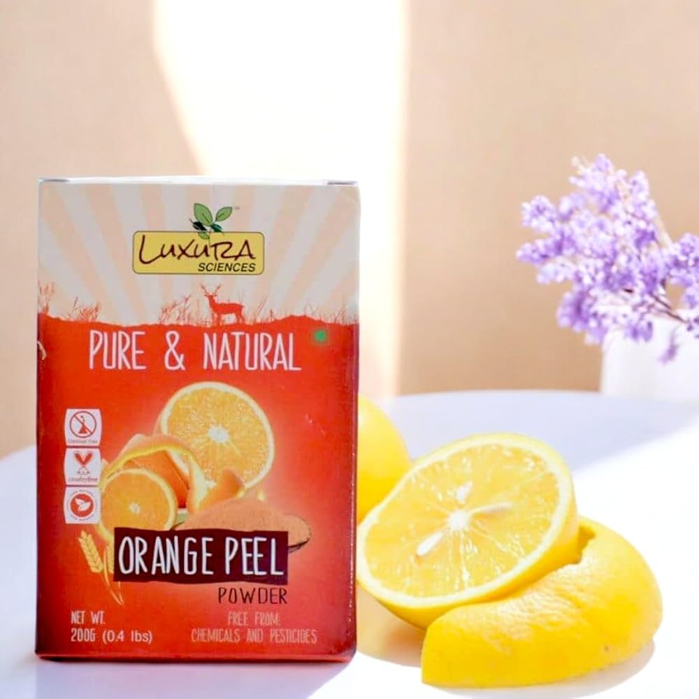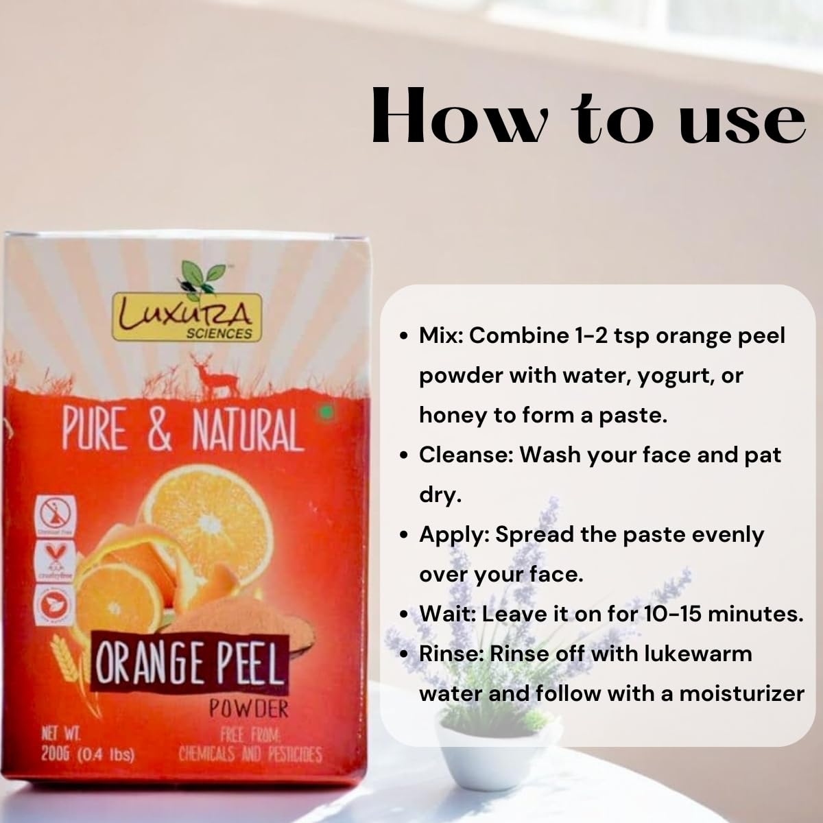Exfoliation: The natural exfoliating properties of orange peel powder gently slough away dead skin cells unclog pores and reveal smoother softer skin underneath. It's improves skin texture and tone for a more youthful appearance