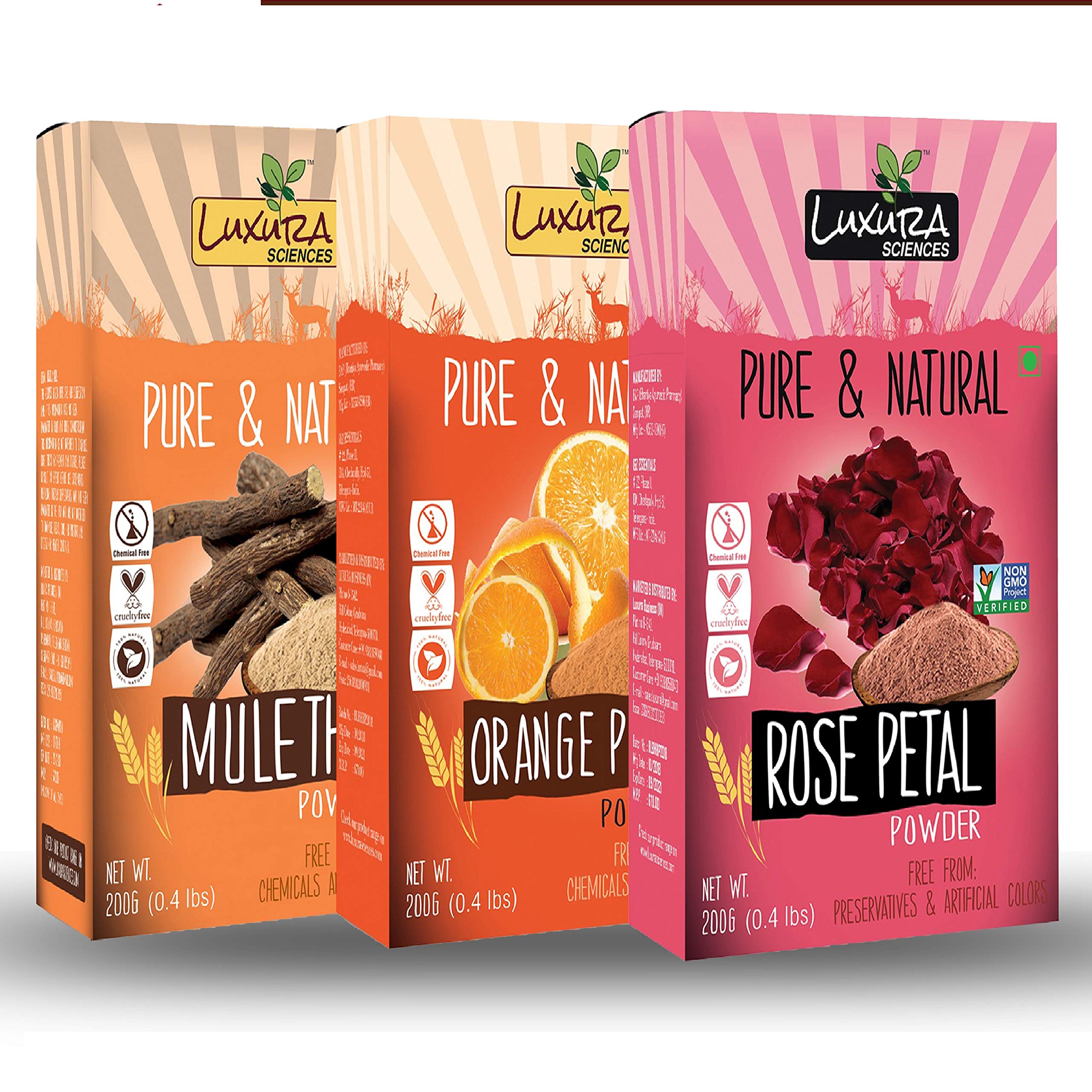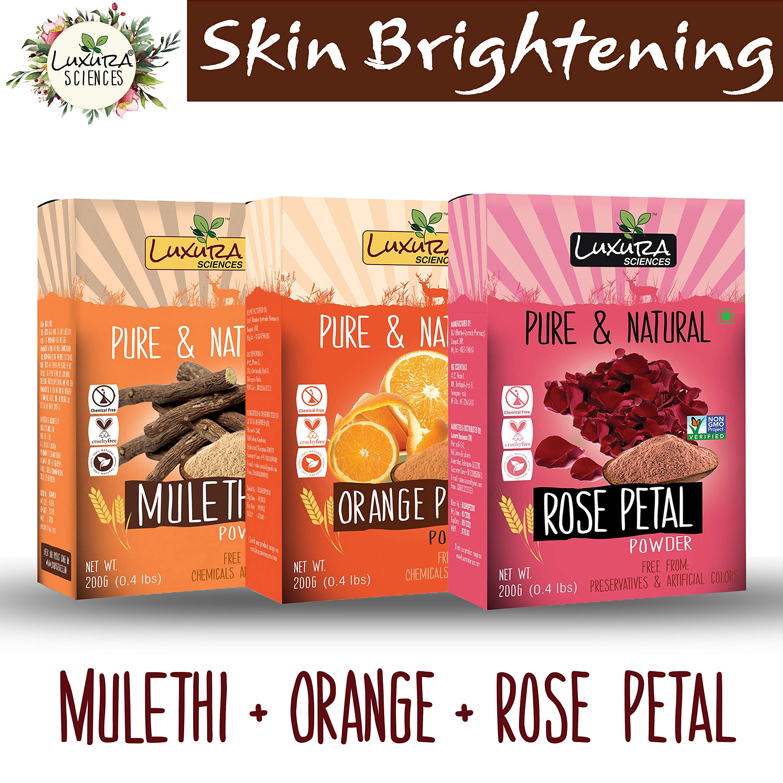 Luxura Sciences Natural Skin Care Set 200 Grams * 3 Pcs (Skin Brightening Set (Mulethi +Orange Peel + Rose))