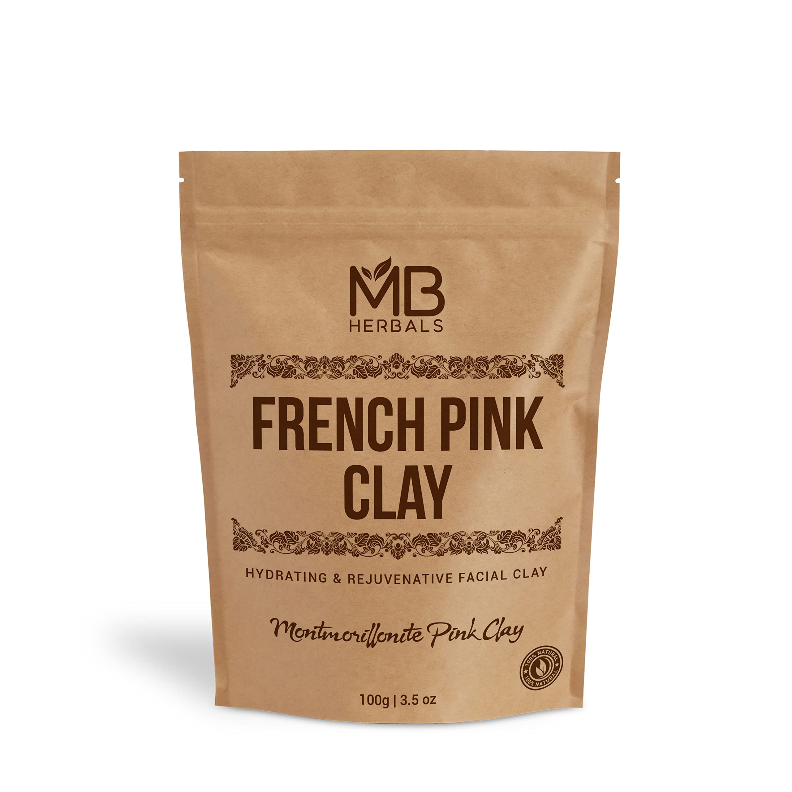 • MB Herbals French Pink Clay is 100% pure untreated clay with a beautiful light Pink Colour and Soft Texture. It is highly absorbent and has potent properties of pulling out dirt and excess oil from the skin.