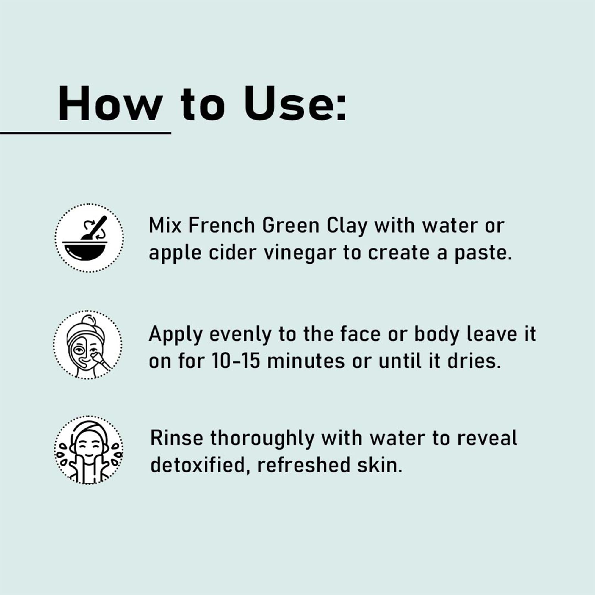 French Green Clay by mi nature (100g) Discover the rejuvenating power of French Green Clay with mi nature's pure and natural 100g offering. Known for its exceptional cleansing and detoxifying properties this clay is sourced from mineral-rich deposits providing your skin with a natural clarity. Features: Rich in Minerals: Contains essential minerals like iron calcium magnesium and potassium to revitalize your skin. Detoxifying: Draws out impurities and toxins purifying your skin. Exfoliating: Gently removes dead skin cells promoting a smoother texture of skin. Balancing: Helps regulate oil production making it suitable for both oily and dry skin types. How to Use: Facial Masks: Apply to the face leave for 10-15 minutes and rinse off to achieve a deep cleansing and refreshing effect. Why Choose mi nature's French Green Clay? mi nature's French Green Clay Powder is crafted with purity in mind free from chemicals and additives. Our commitment to natural ingredients ensures that you receive the full benefits of traditional skincare wisdom with modern quality and effectiveness.