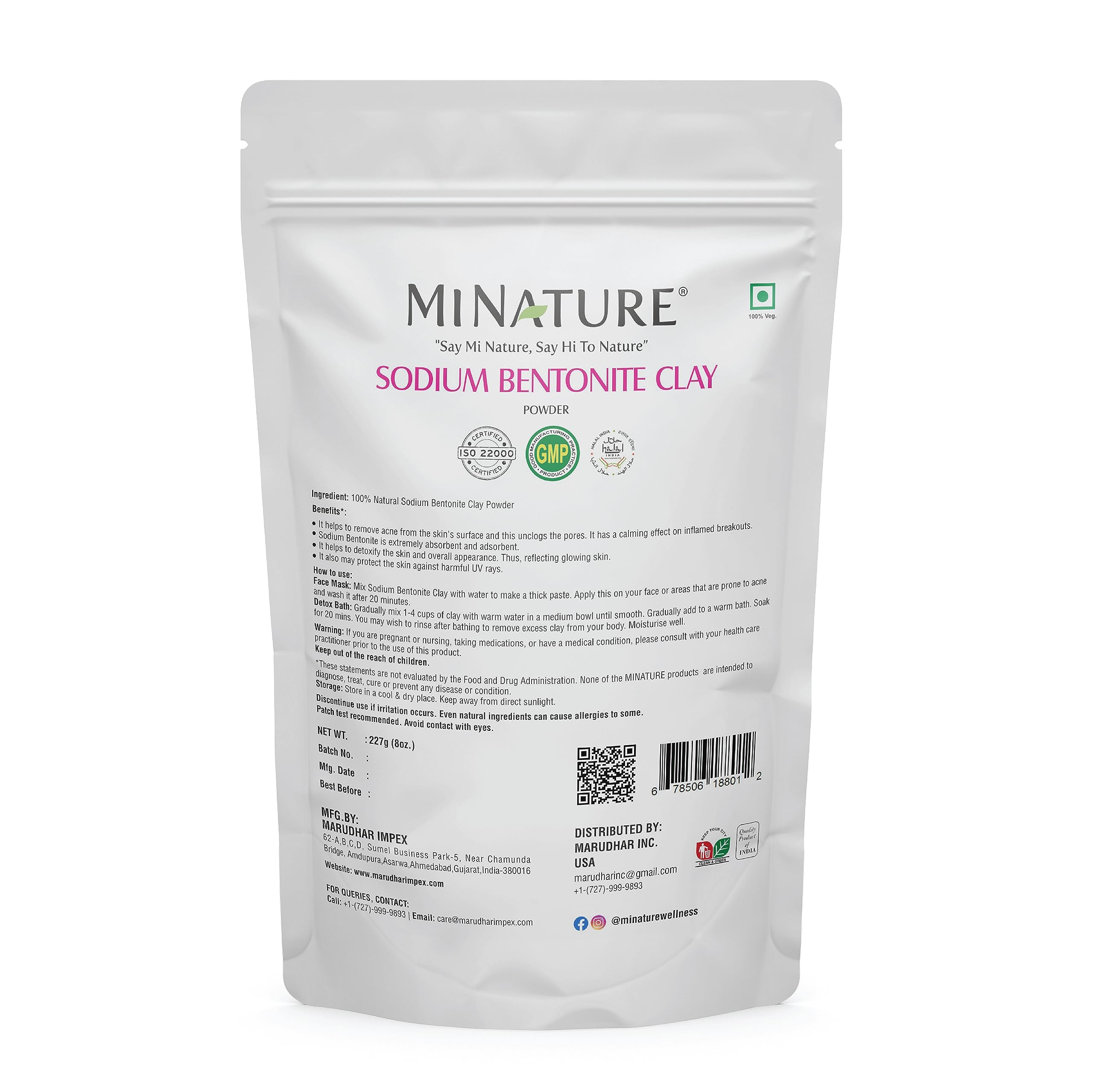 mi nature Sodium Bentonite Clay Powder | For Skin Detoxifying Deep Pore cleansing & Face Mask Body Mask Detox Bath| Pure & Natural Mask Powder For All Skin Types & Unisex| 227g(8oz)