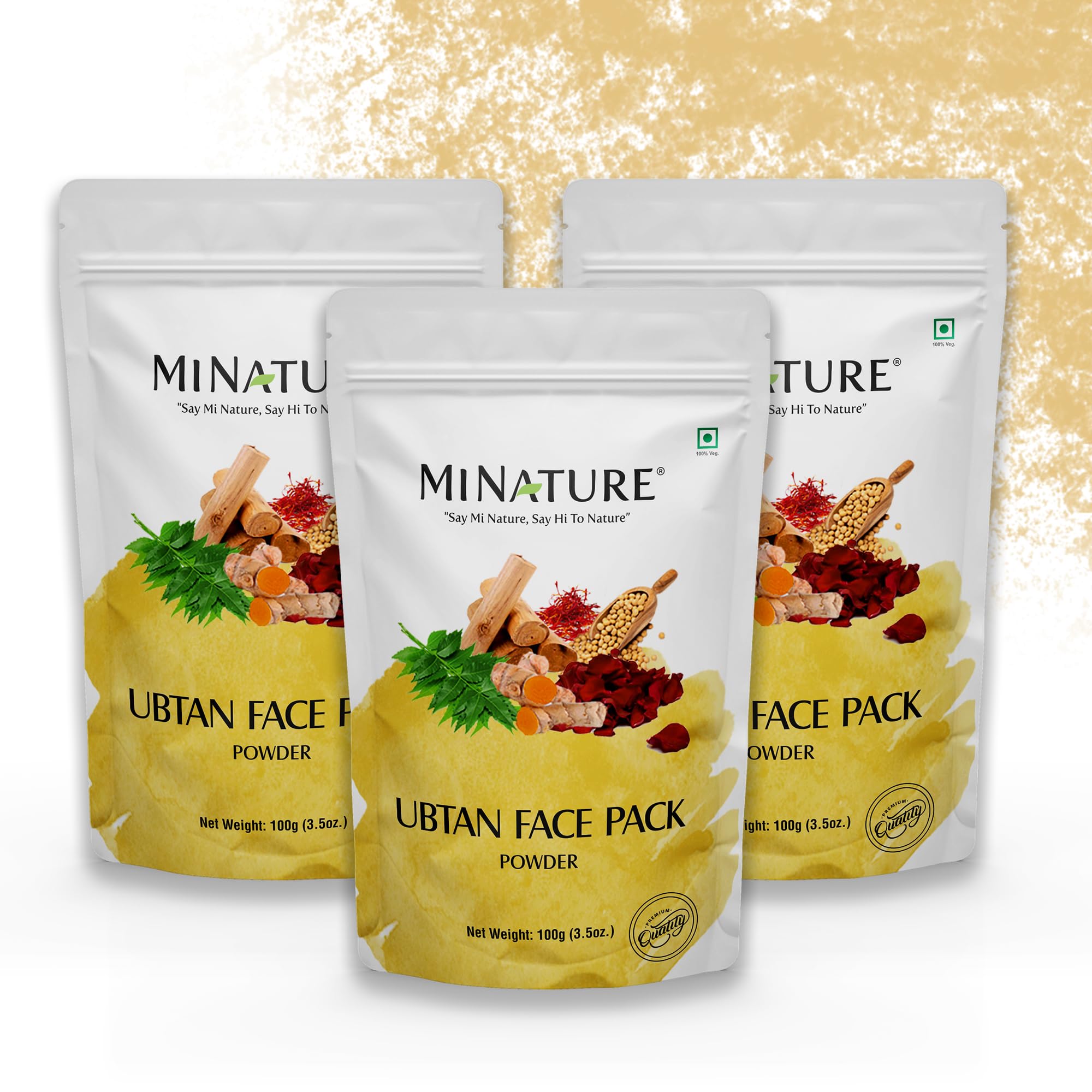 mi nature Ubtan Face and Body Pack | Turmeric Barley Chickpeas Neem sandalwood Mogra flower Saffron and Rose Petal | Remove Acne | Pure & Natural Traditional skincare |1 Stop Solution|100g (Pack of 3)