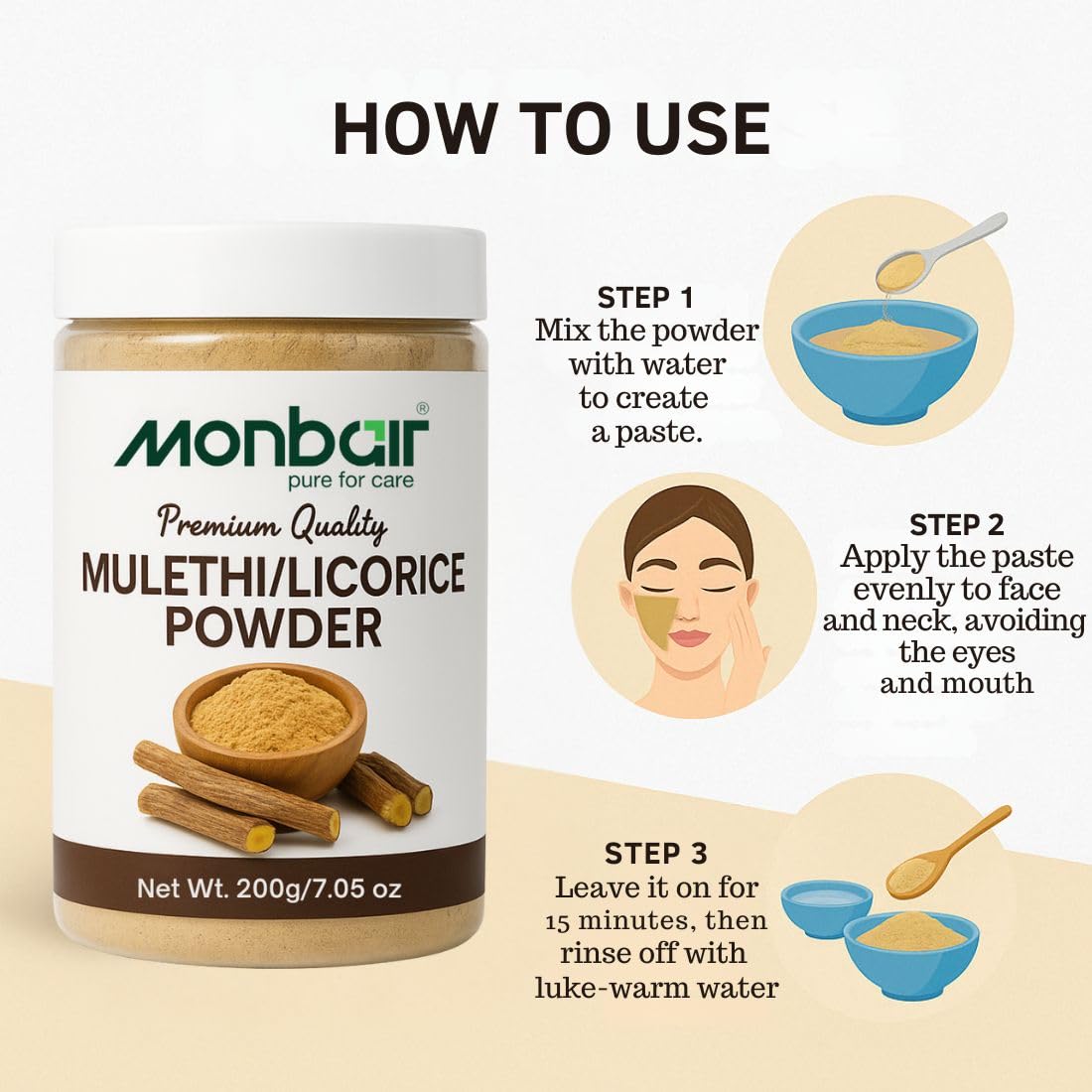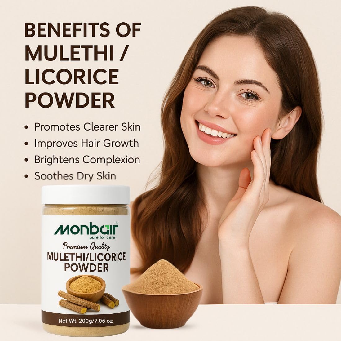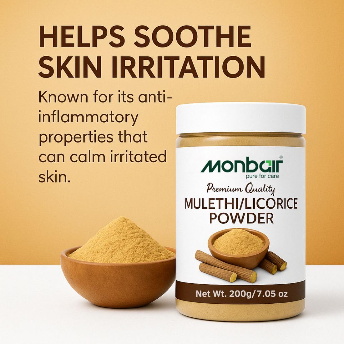 Monbair Mulethi Powder For Face Hair (200 Grams) Skin And Body | Edible | Licorice Powder For Skin Care