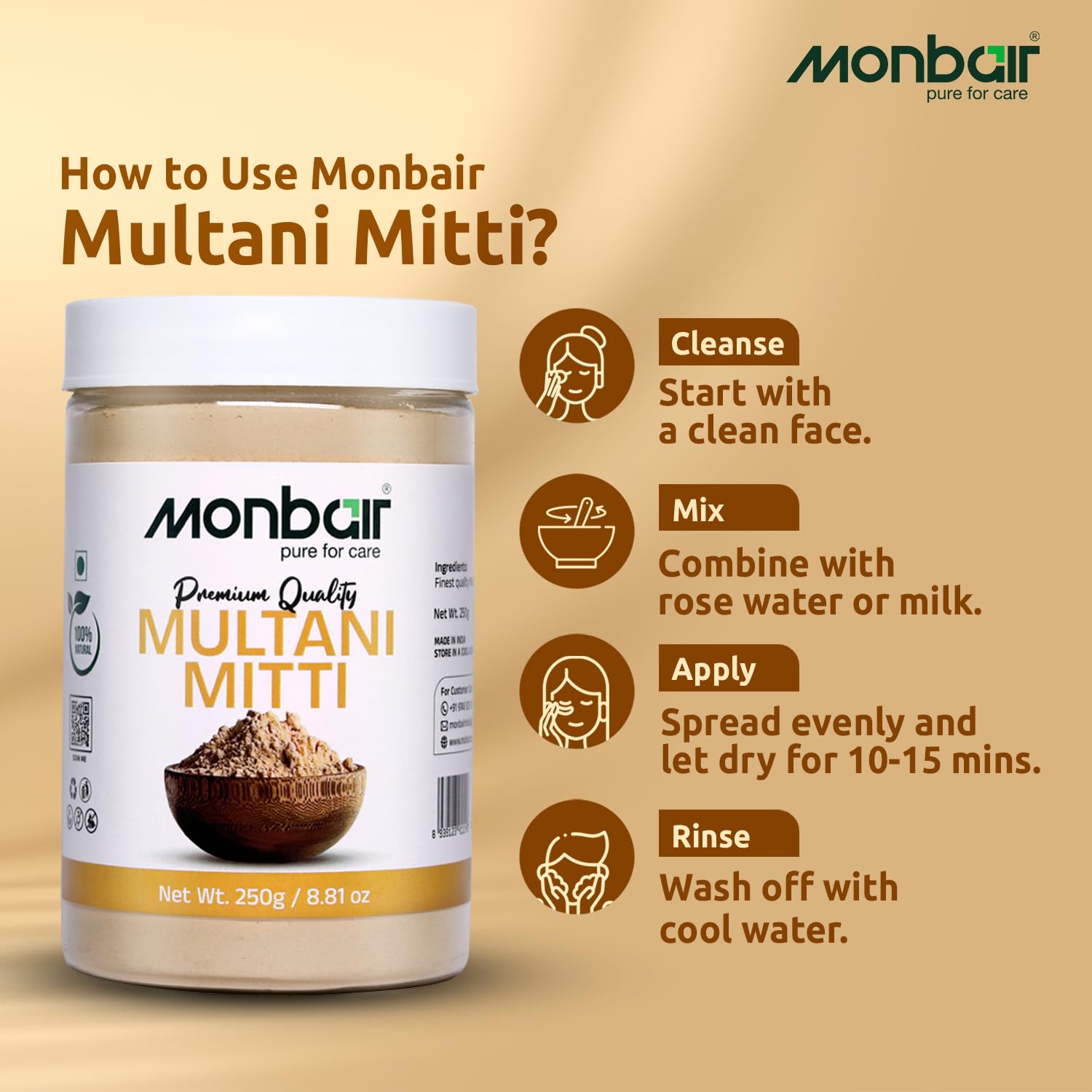 • Monbair Multani Mitti Face Pack contains All Natural Ingredients with amazing skin-protecting properties.