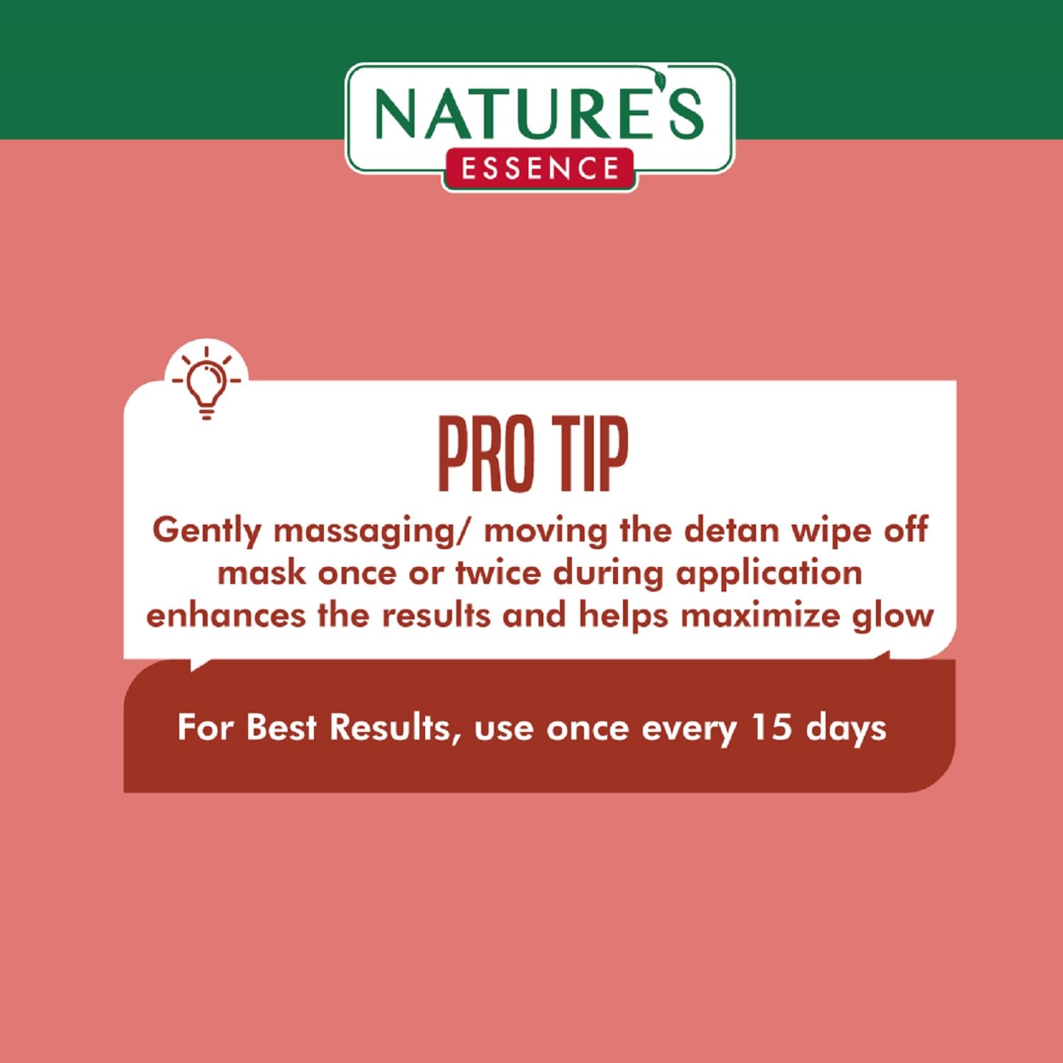 Say goodbye to sun damage with Nature's Essence De-Tan Therapy Wipe-Off Mask â your go-to de tan face pack for removing tan brightening skin and restoring a radiant glow. Whether you need a tanning removal cream detan face pack or a multi-purpose d tan cream this 500â¯gm formula is packed with skin-loving ingredients like aloe vera and papaya extract.The lightweight texture works as a detan cream for tan removal and gently exfoliates the skin making it the best tan removal face pack for daily exposure to sun and pollution. Great for both men and women this de tan cream doubles up as a body tan removal cream and can be used on arms neck and back as well.