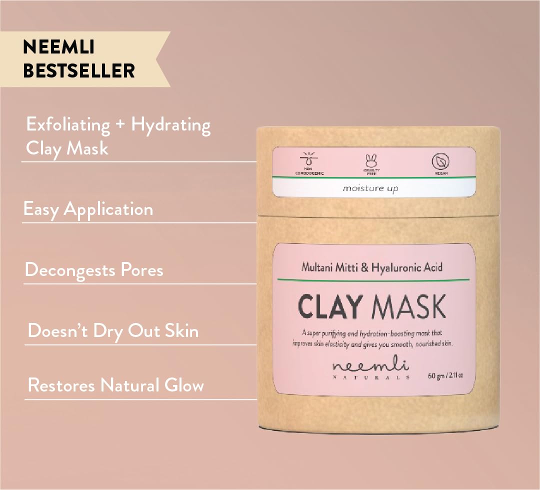 Neemli Naturals Multani Mitti & Hyaluronic Acid Clay Mask Hydrates, Nourishes And Softens Skin Face Mask For Glowing Skin - 60G (Pack Of 1)