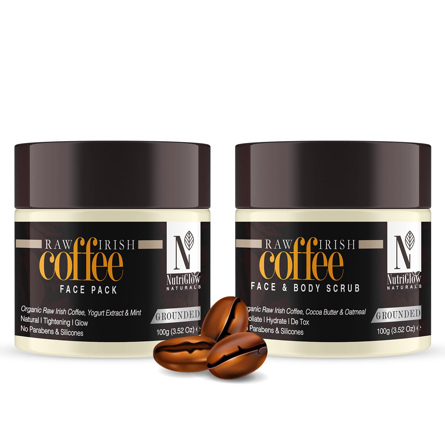 NutriGlow NATURAL'S Coffee Face Pack (100gm) & Coffee Face & Body Scrub (100gm) for Deep Exfoliation - Combo Pack of 2