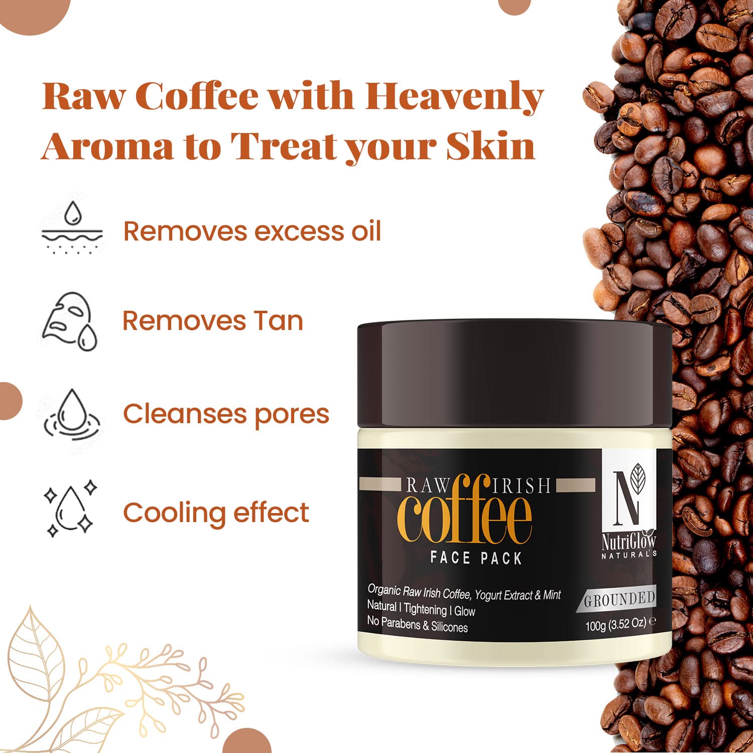 • The NutriGlow Raw Irish Coffee face Pack contains ingredients that give your skin a firm and tight texture. They decrease sagging and puffiness under the eyes.