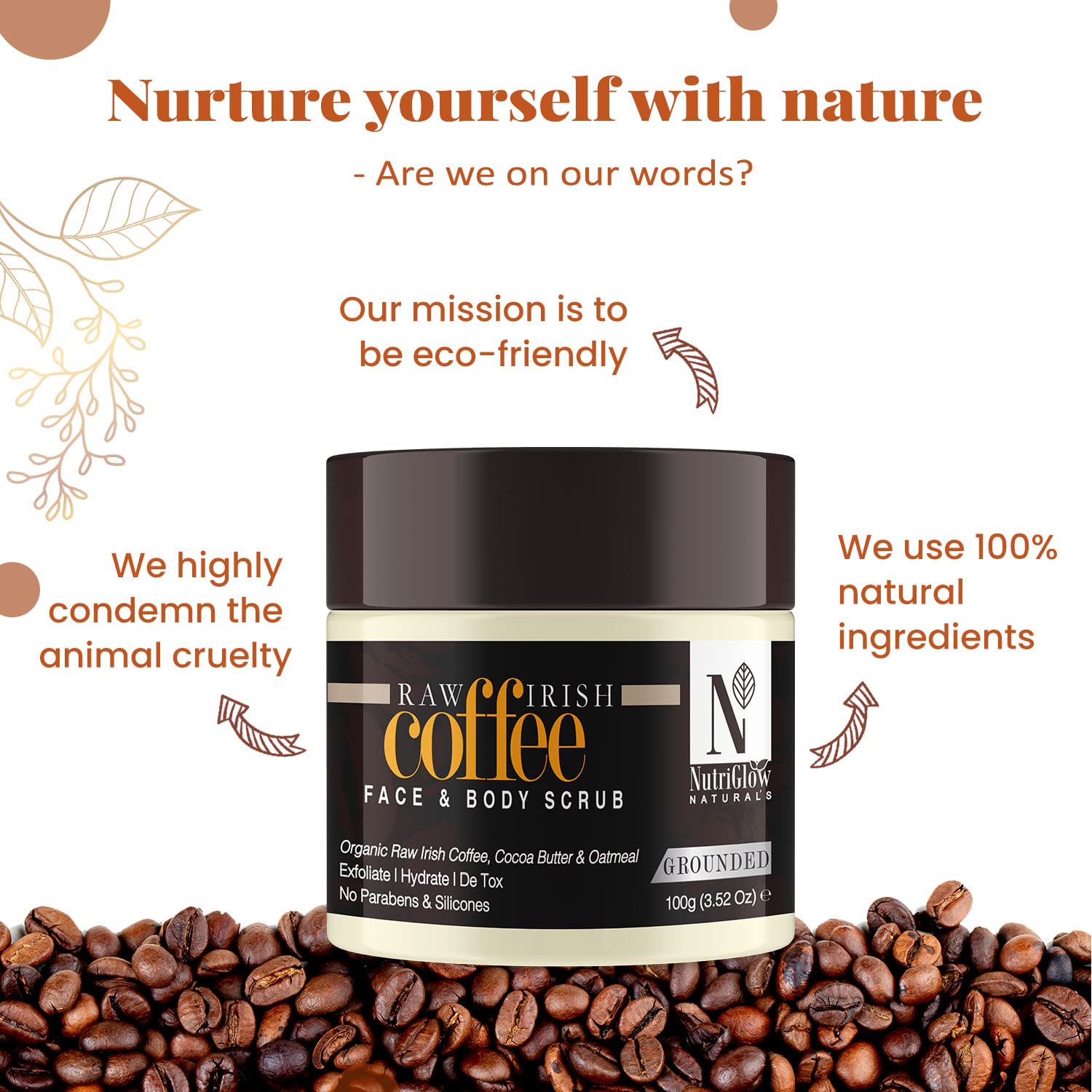 Coffee goodness for deeply cleansed skin! This combo skincare kit has a coffee face pack and scrub that improves your skin texture and brightens it. The NutriGlow Raw Irish Coffee face Pack contains ingredients that give your skin a firm and tight texture. They decrease sagging and puffiness under the eyes. Coffee aloe vera mint and lemon all work together to tighten the pores and maintain an optimal amount of moisture in the skin. It leaves the skin smooth and clear acne and other skin issues like swellings redness etc. Among all the skin routines we often miss out on exfoliating. Exfoliating is essential for glowing skin as it helps it renew itself bringing out new cells and removing the dead ones. It helps in acne oil build-up and rough skin. We wish to give you the best! So we bring you a sulphate-free and silicone-free product.