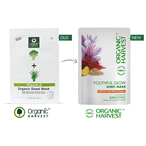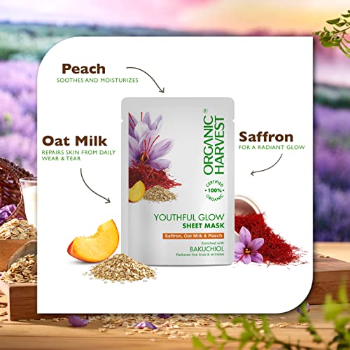 Organic Harvest Youthful Glow Sheet Mask: Saffron, Oat Milk and Peach - 20gm - Vitamin-A