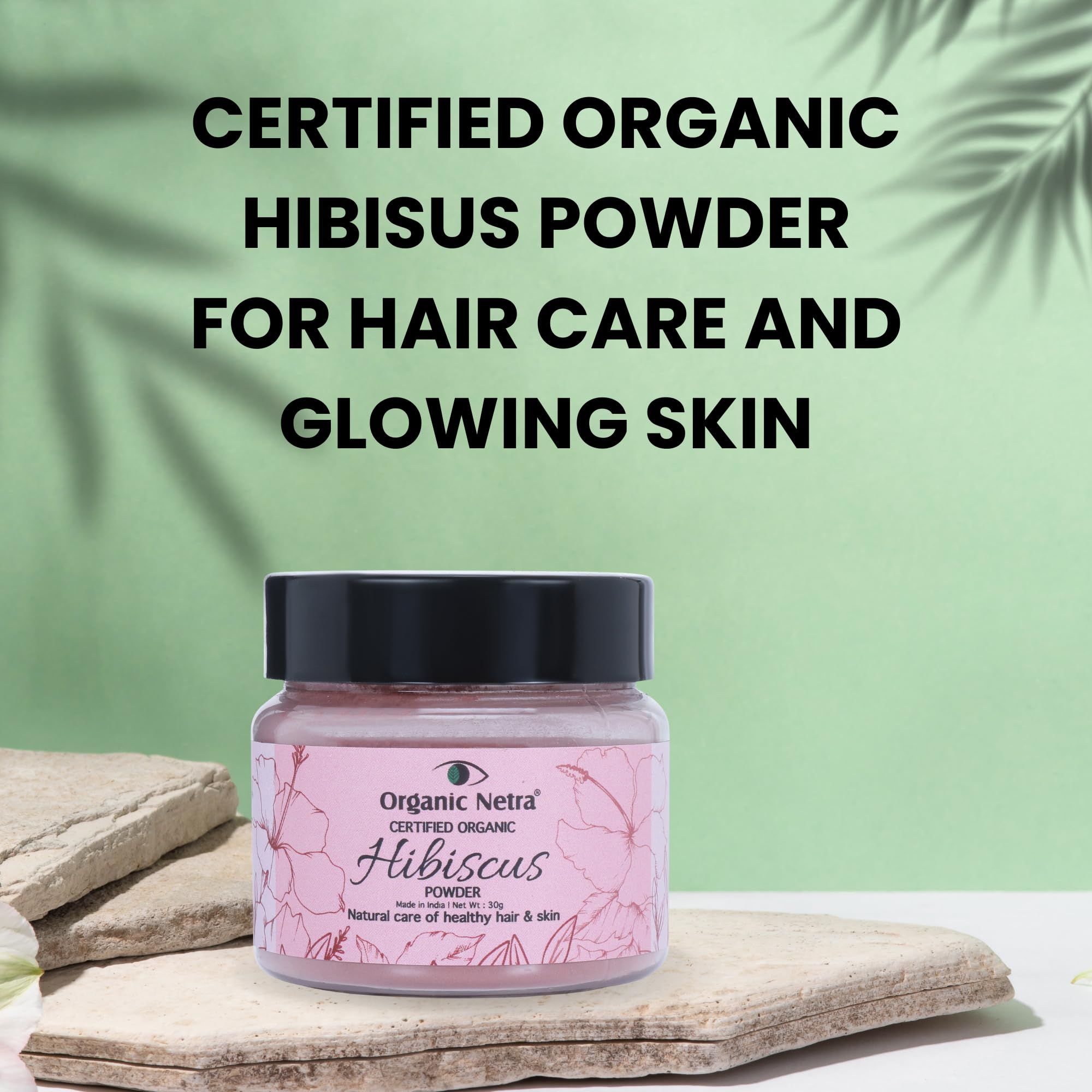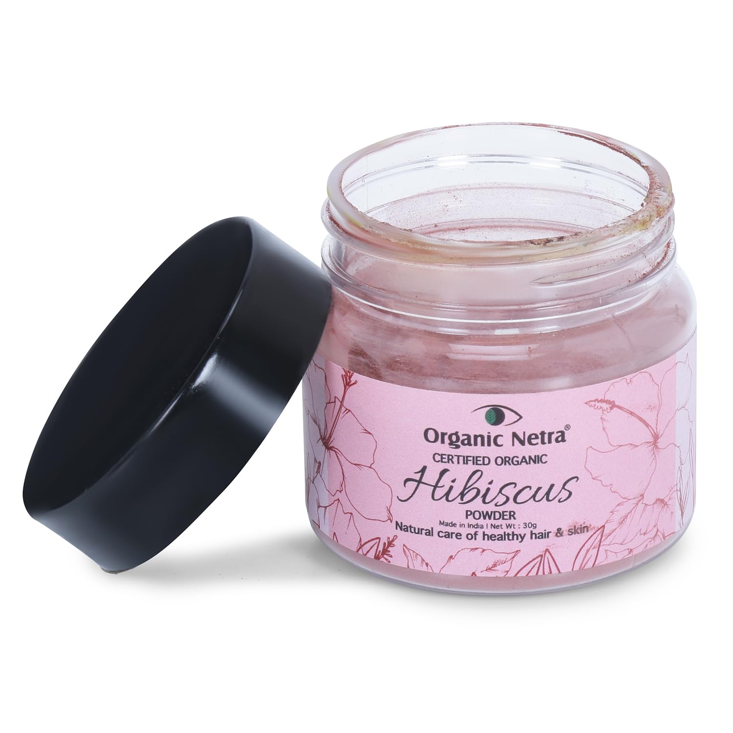 Organic Netra Hibiscus Powder is a 100% pure and a certified organic product. It only has crushed shade-dried petals of hibiscus (Hibiscus rosa-sinensis) flowers grown organically in select Indian farms. Being totally devoid of chemicals preservatives or fragrances it is ideal for treating most of the common skin and hair related issues like premature skin ageing premature greying dryness hair damage acne and more.