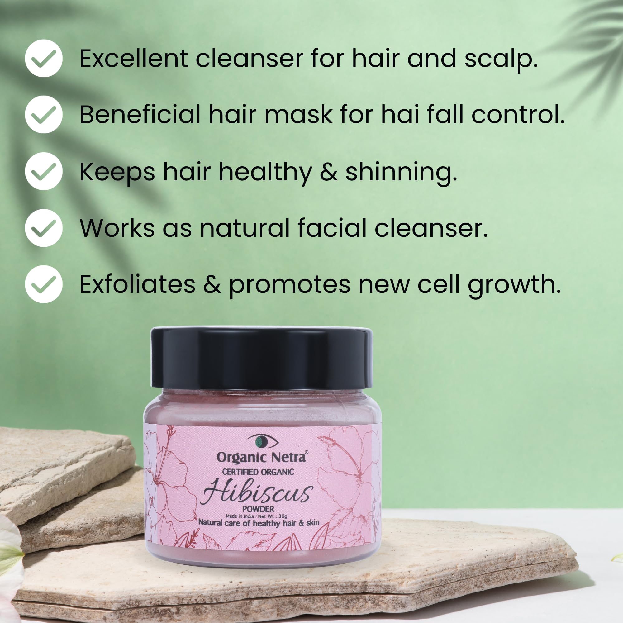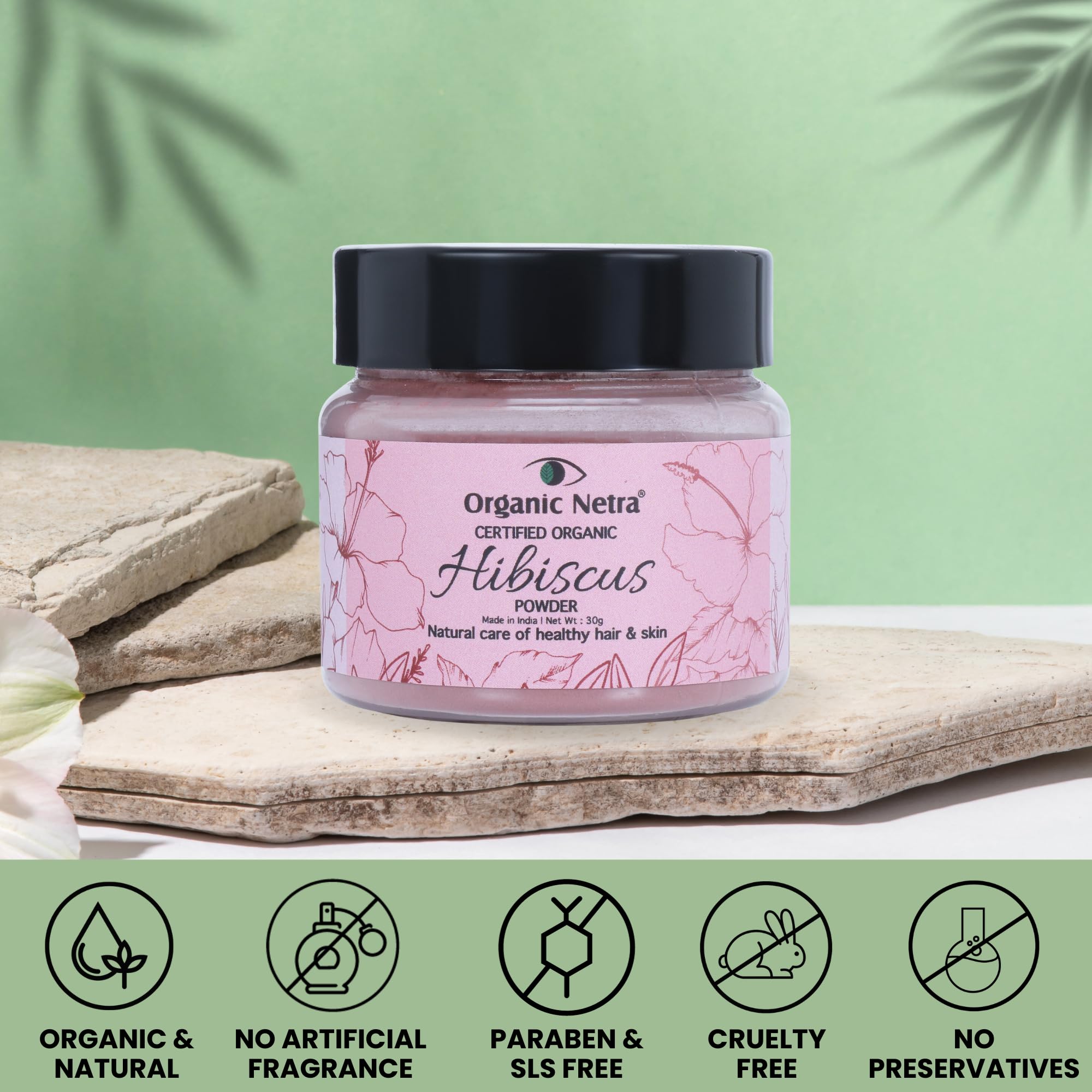 Organic Netra Hibiscus Flower Powder for Face Pack and Hair MaskSun Dried Gudhal FlowerRich in Vitamin-c Cleanse Pores Reduces Fine Lines & WrinklesTreats Dandruff & Hairfall- 30g (Pack of 1)