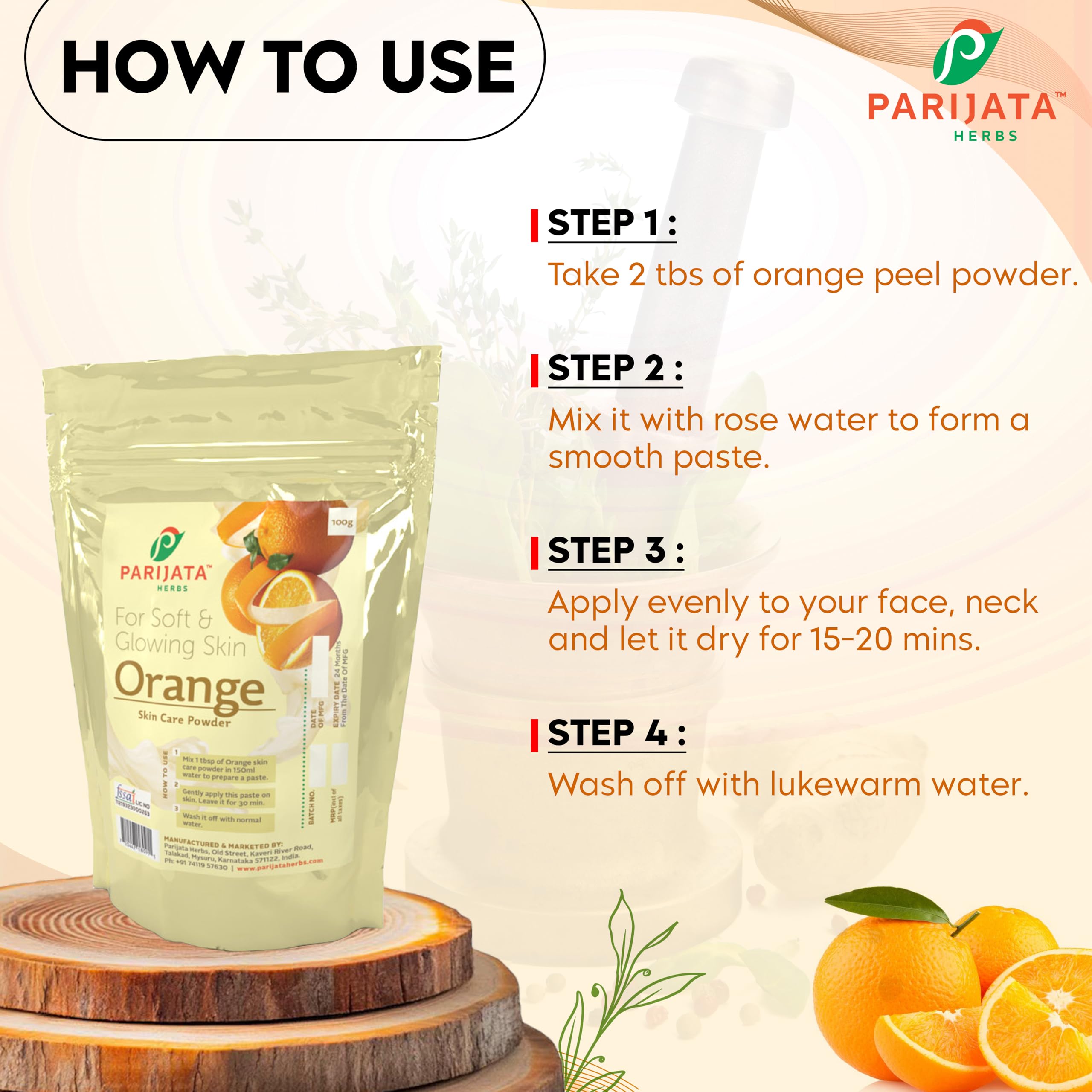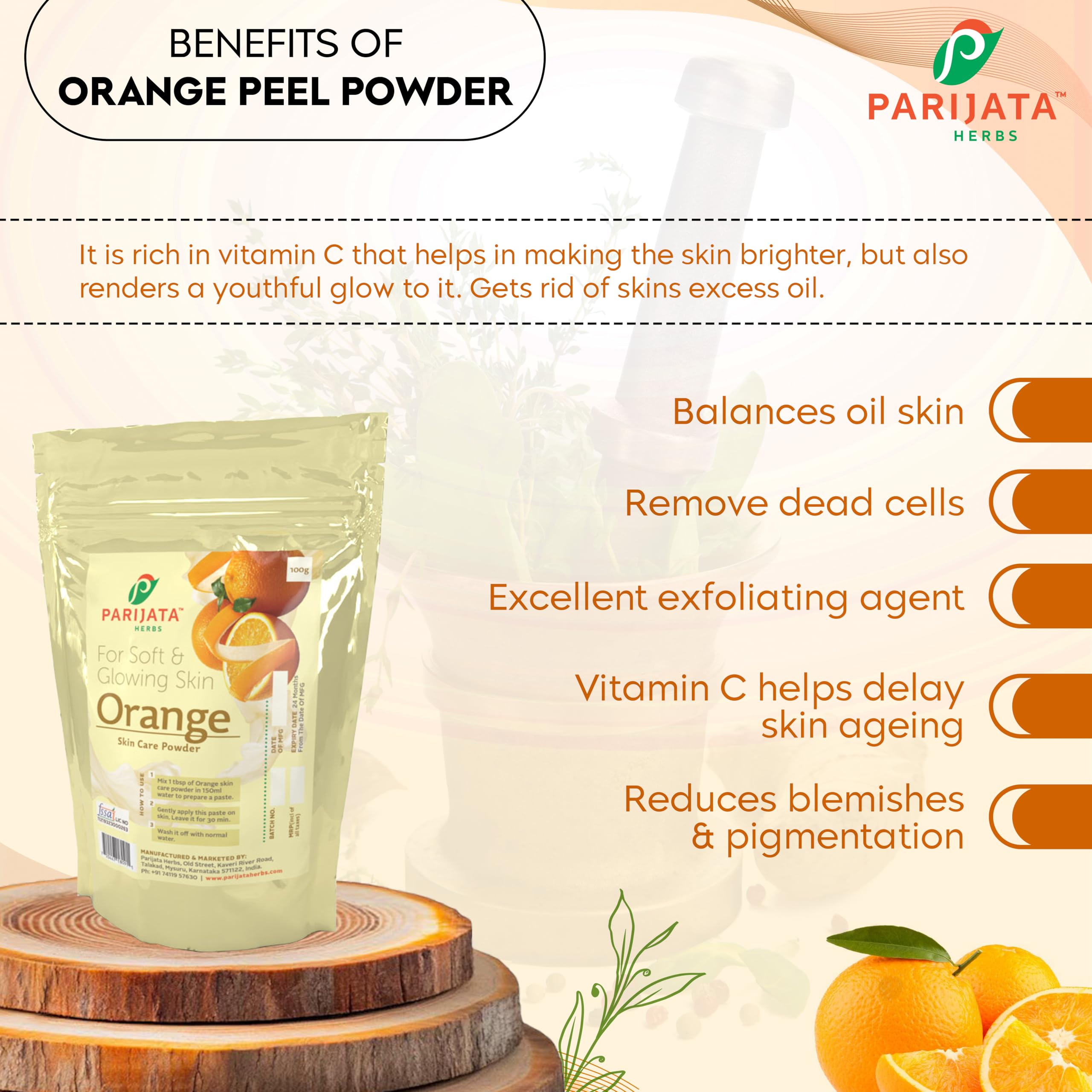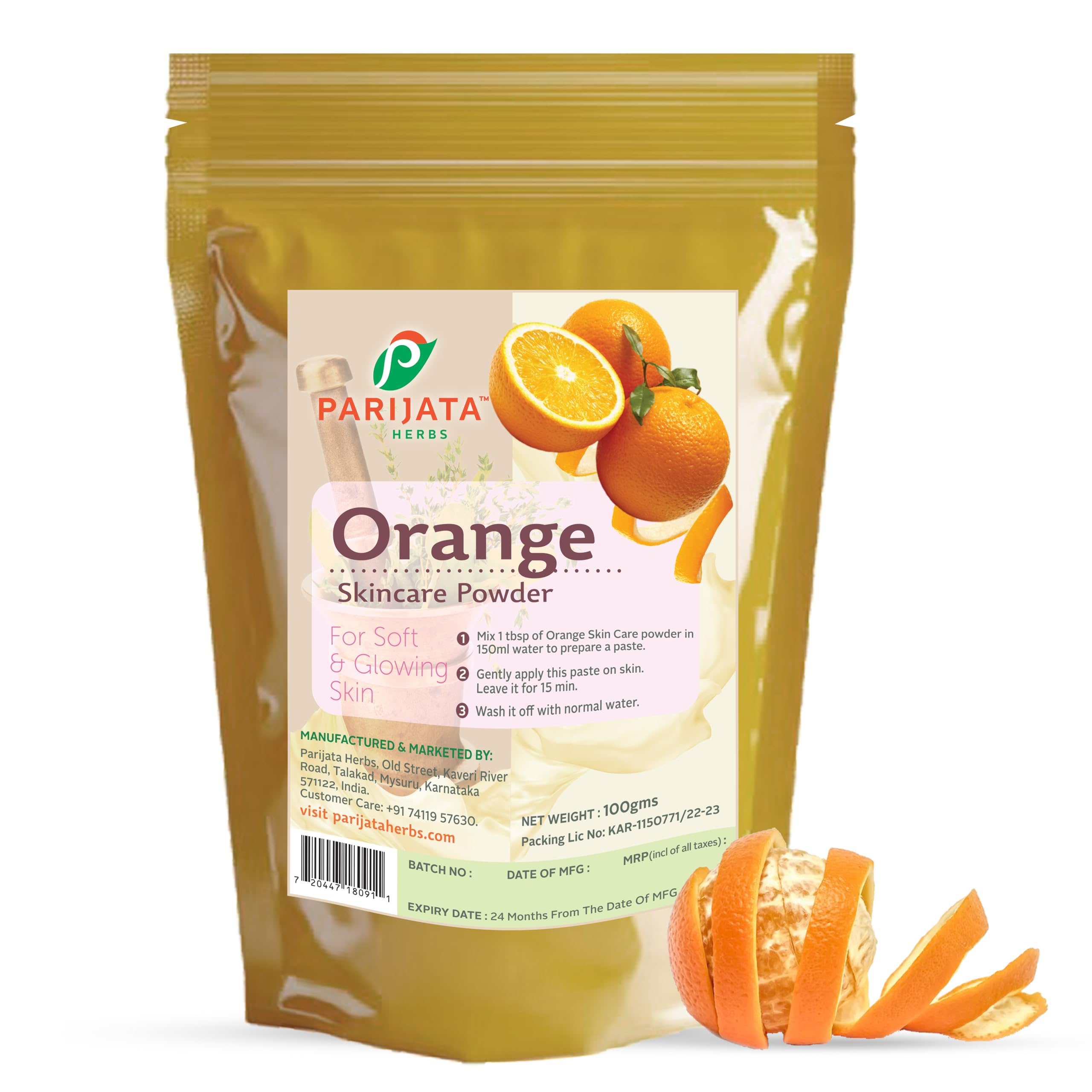 Parijata Herbs Orange peel powder 100 gm | Face Pack with Vitamin C & Antioxidants. Cruelty-Free Vegan Formula for Skin - 100g