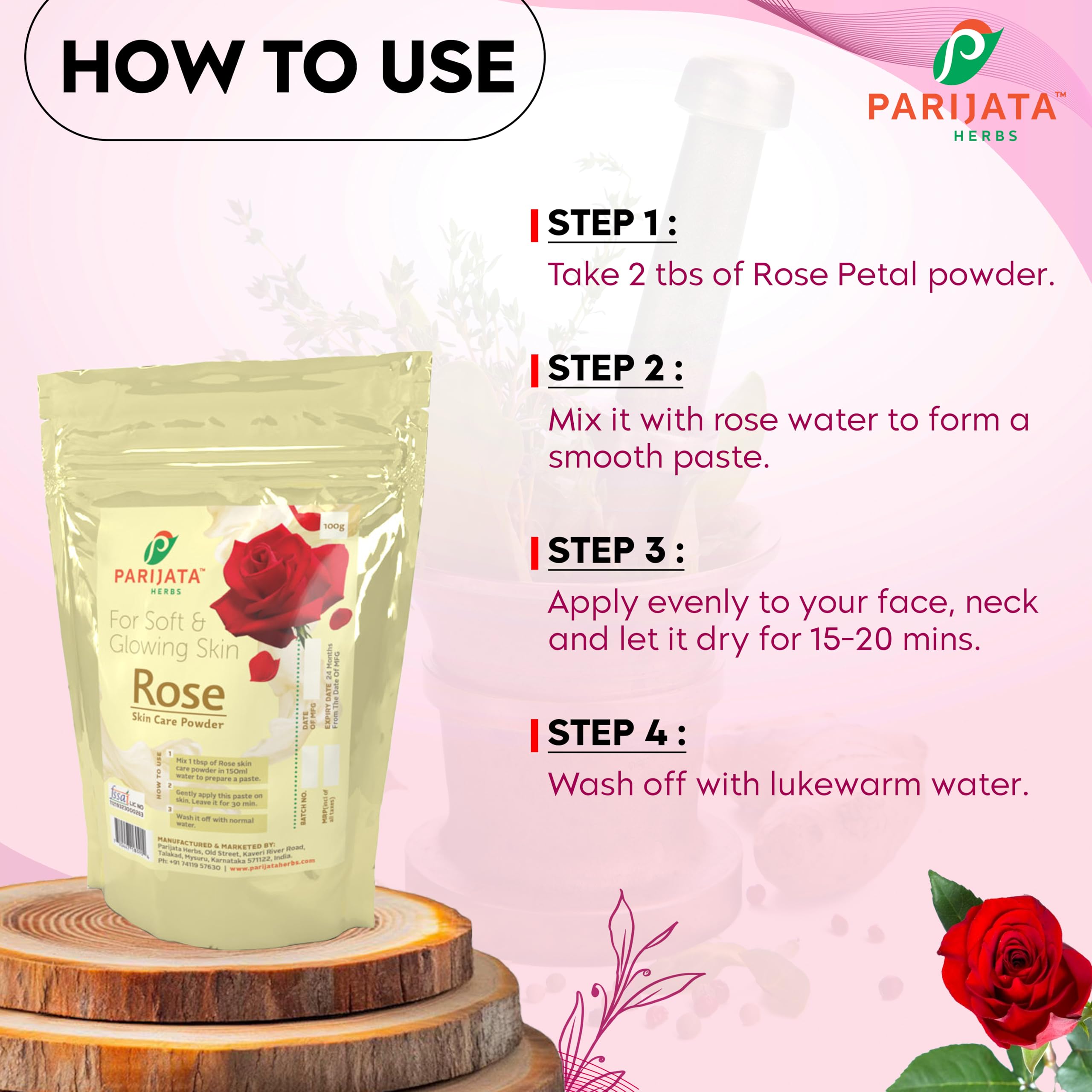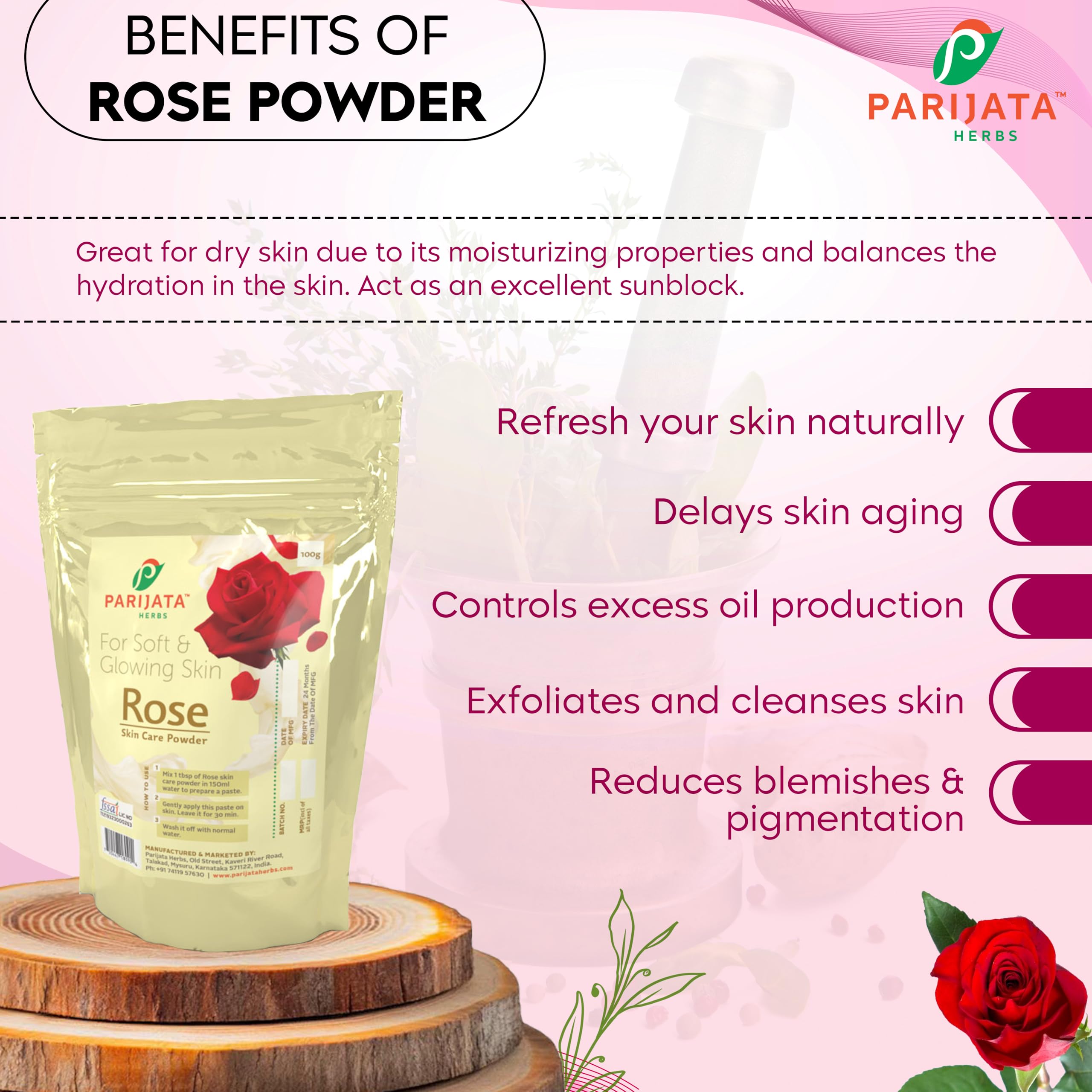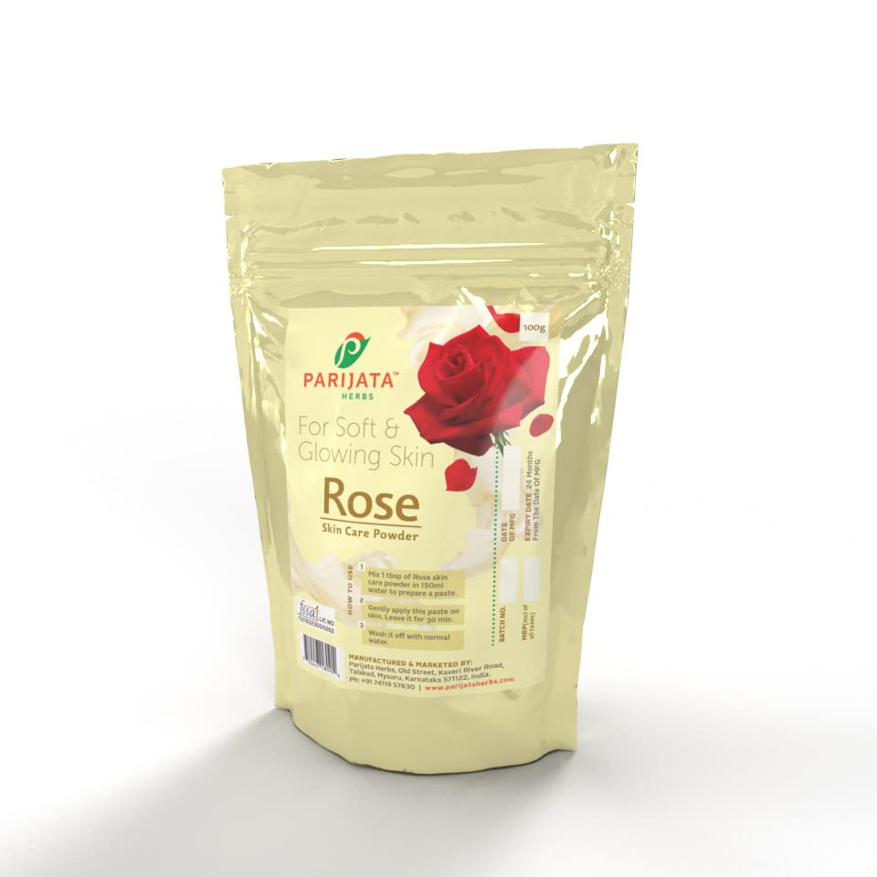 Parijata Herbs Pure & Natural Double Filtered Rose Petal Powder For Skin Face Pack Mask for Fairness Tanning & Glowing Skin 100gm