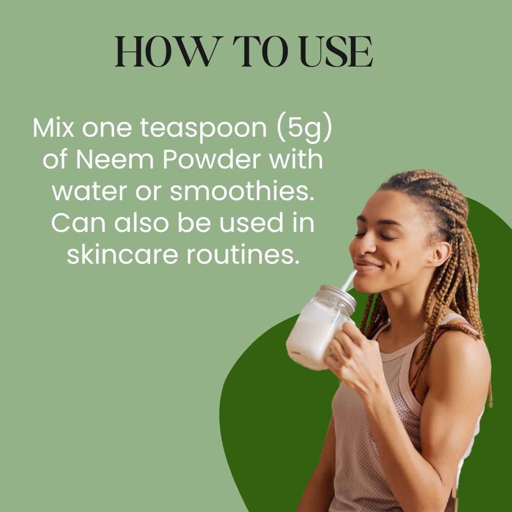 Pure Nutrition Organic Neem Leaf Powder (Azadirachta Indica) for Face Pack Healhy Skin & Hair | Boosts Immunity & Digestion | 100% Pure Free from Additives | Sun-dried | USDA Organic Certified | Edible Quality - 227g