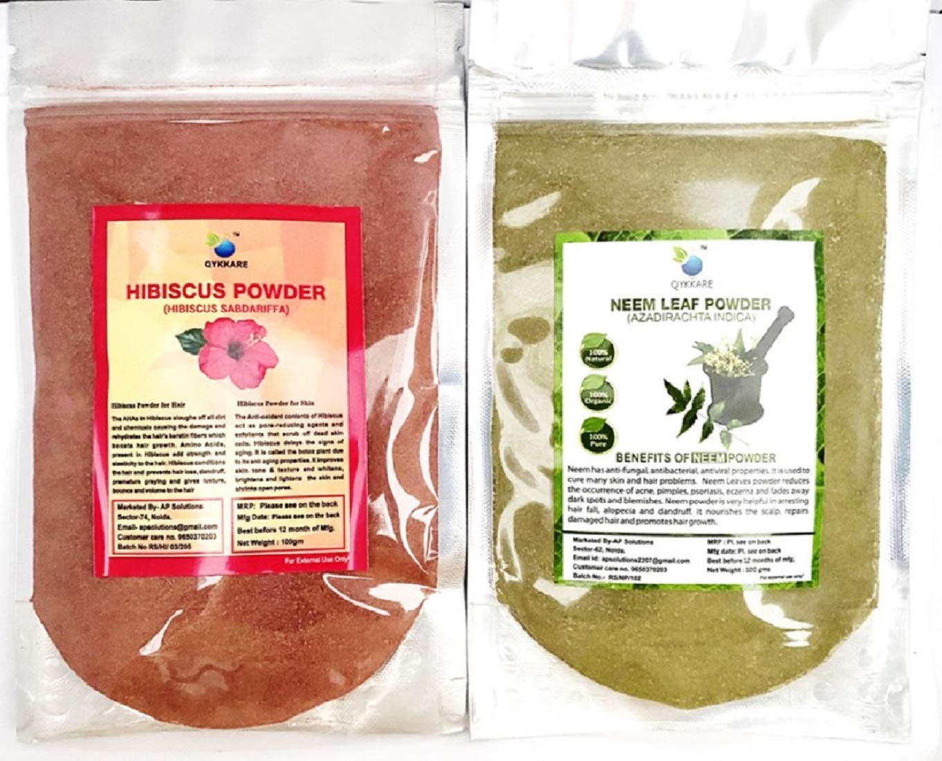 QYKKARE Hibiscus and Neem Leaf Powder Combo Pack (100 Gram X 2)