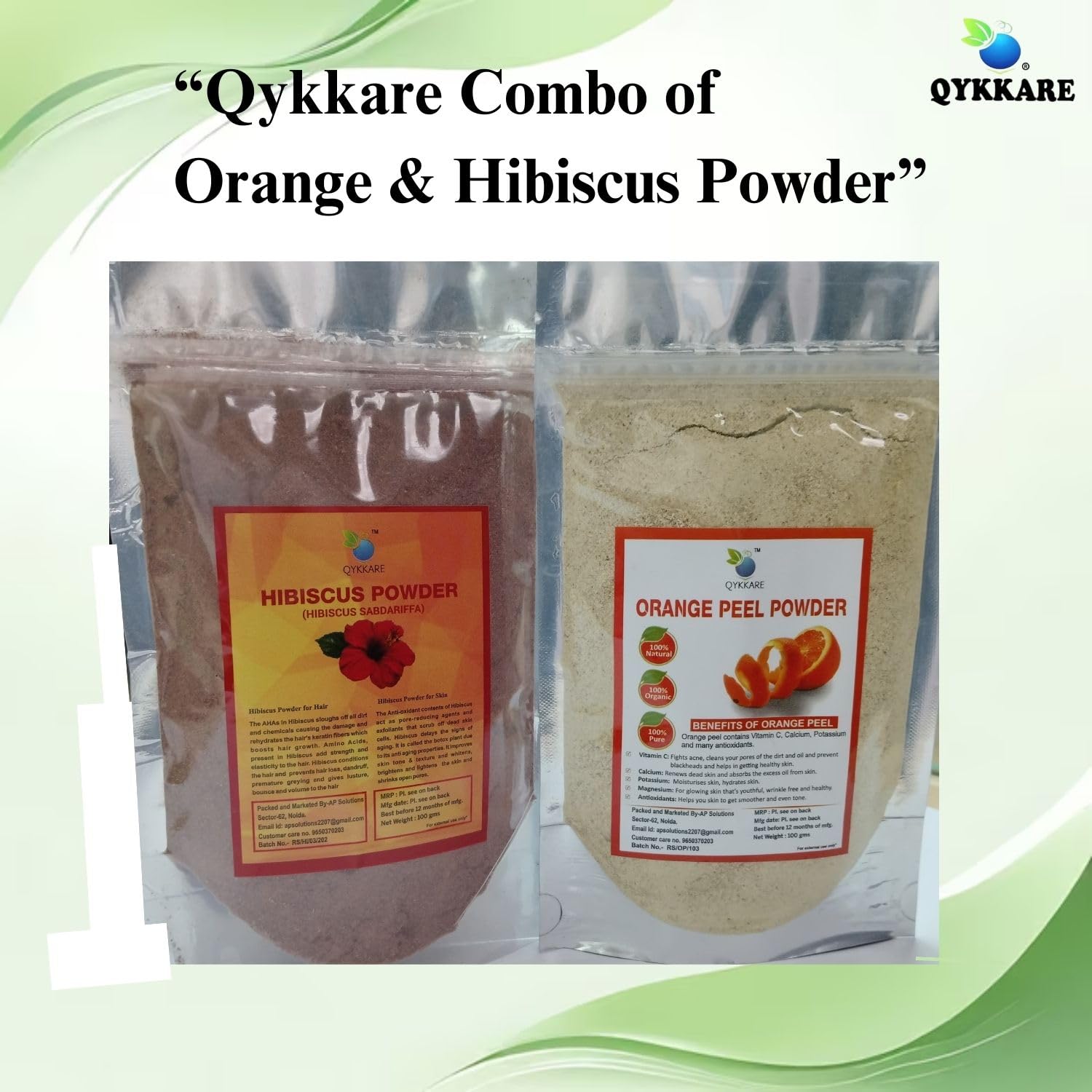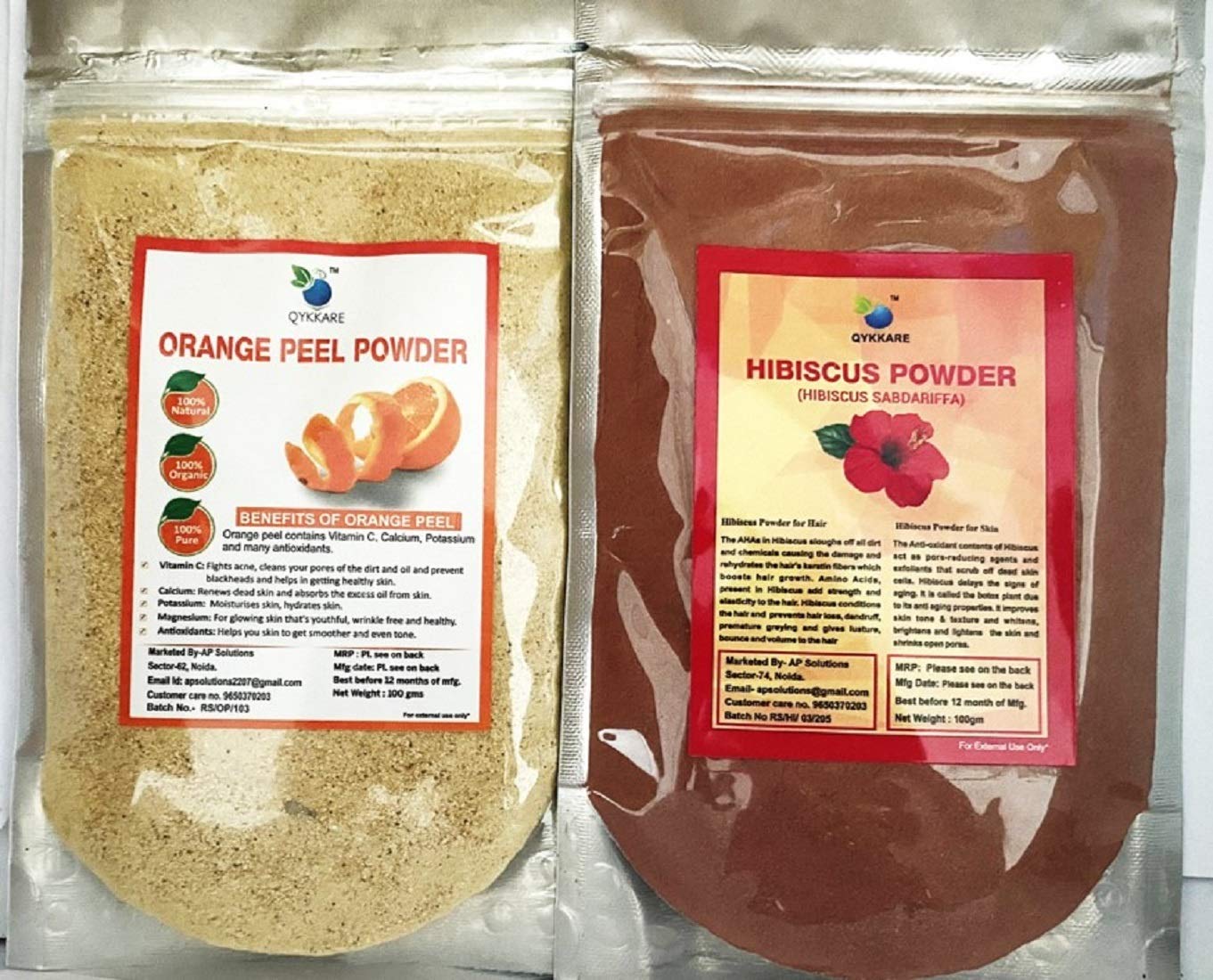QYKKARE Hibiscus and Orange Peel Powder Combo Pack (100 gm X 2)