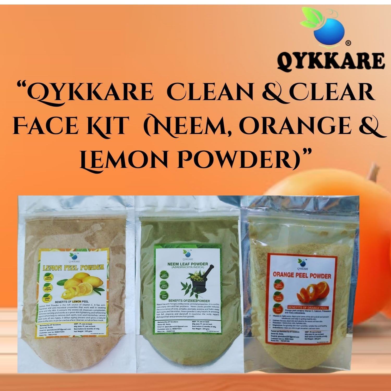 QYKKARE Premium Clean & Clear Skin Powder Combo of 3 for Acne Prone face and Skin 300 Grams Pure and natural